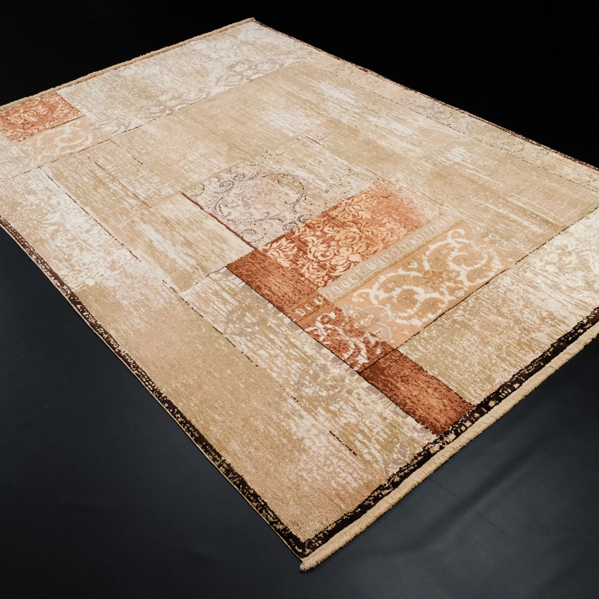 Handwoven Beige Vintage Patterned Silk Wool Rug