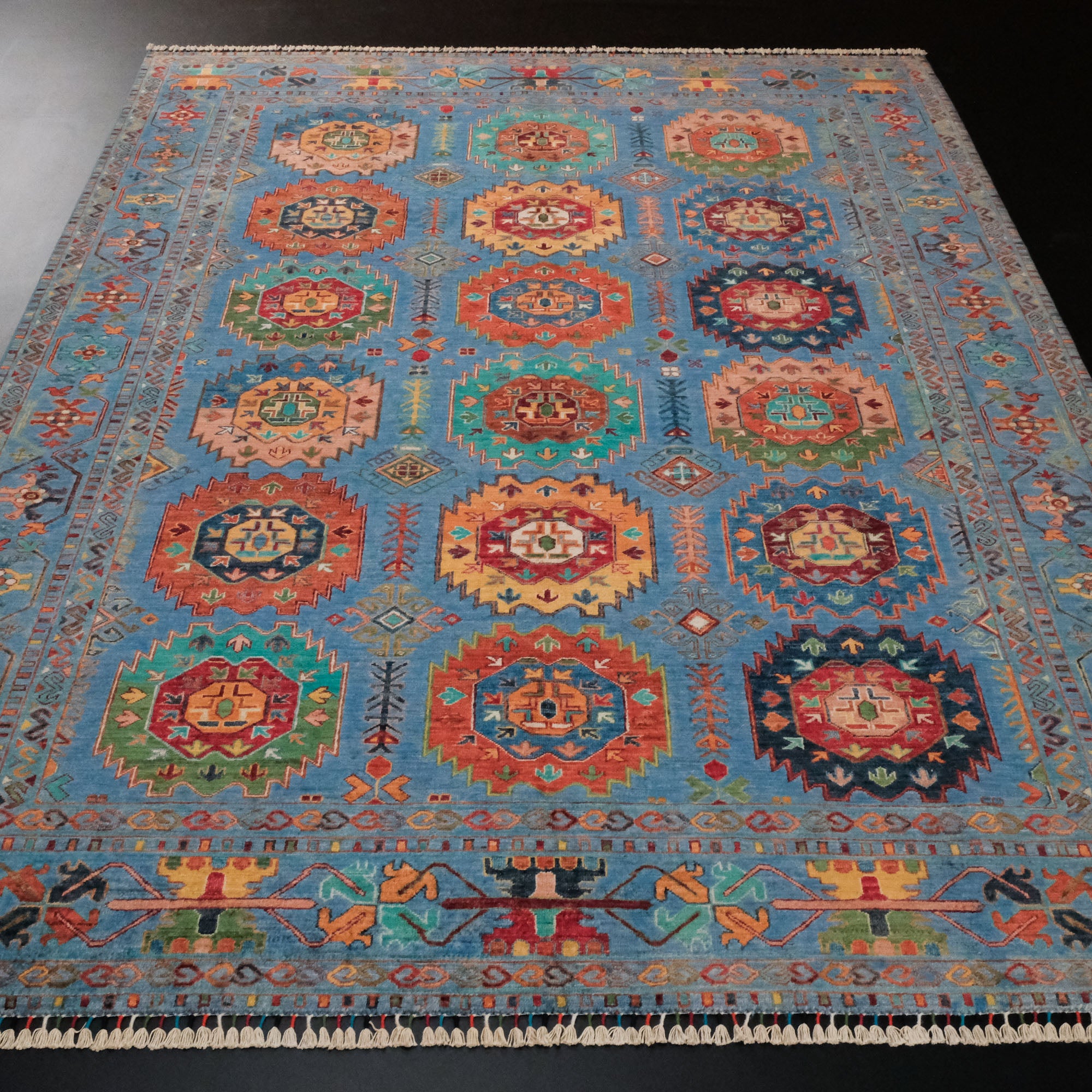 Hand Woven Wool Karabakh Patterned Blue Carpet