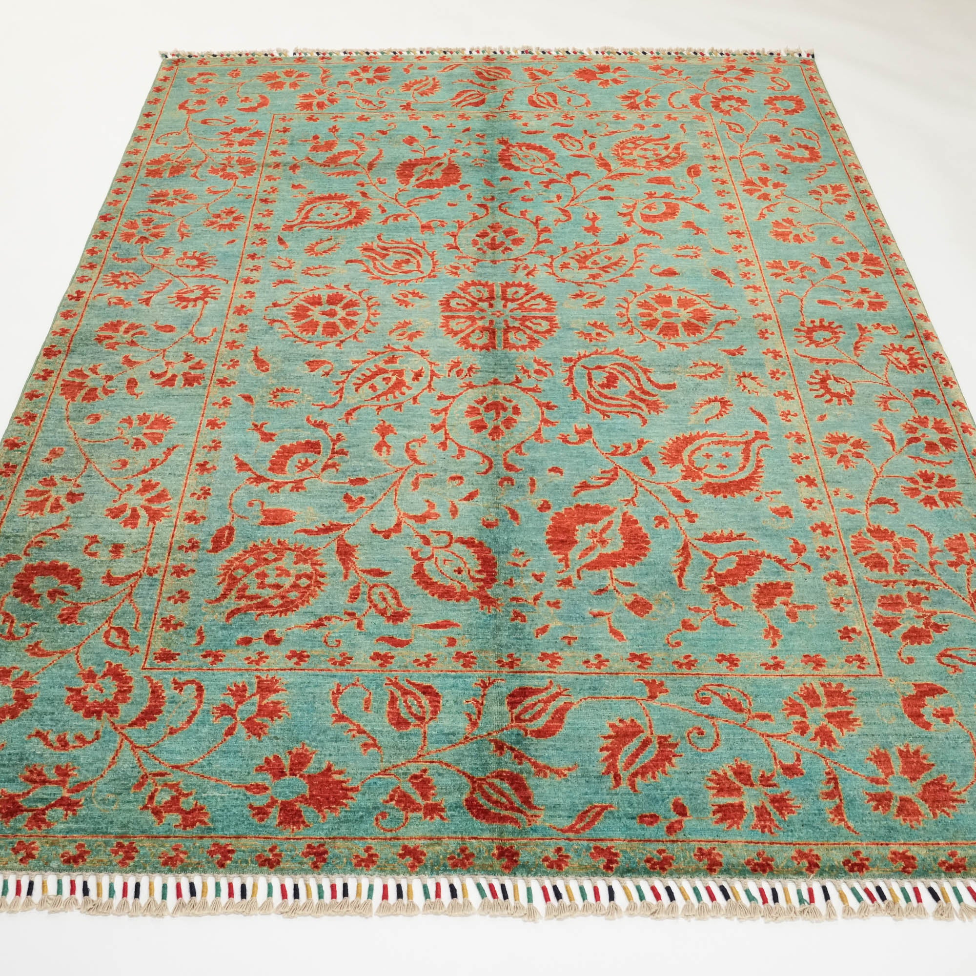 Şahzade Series Handwoven Turquoise Uşak Pattern Wool Rug
