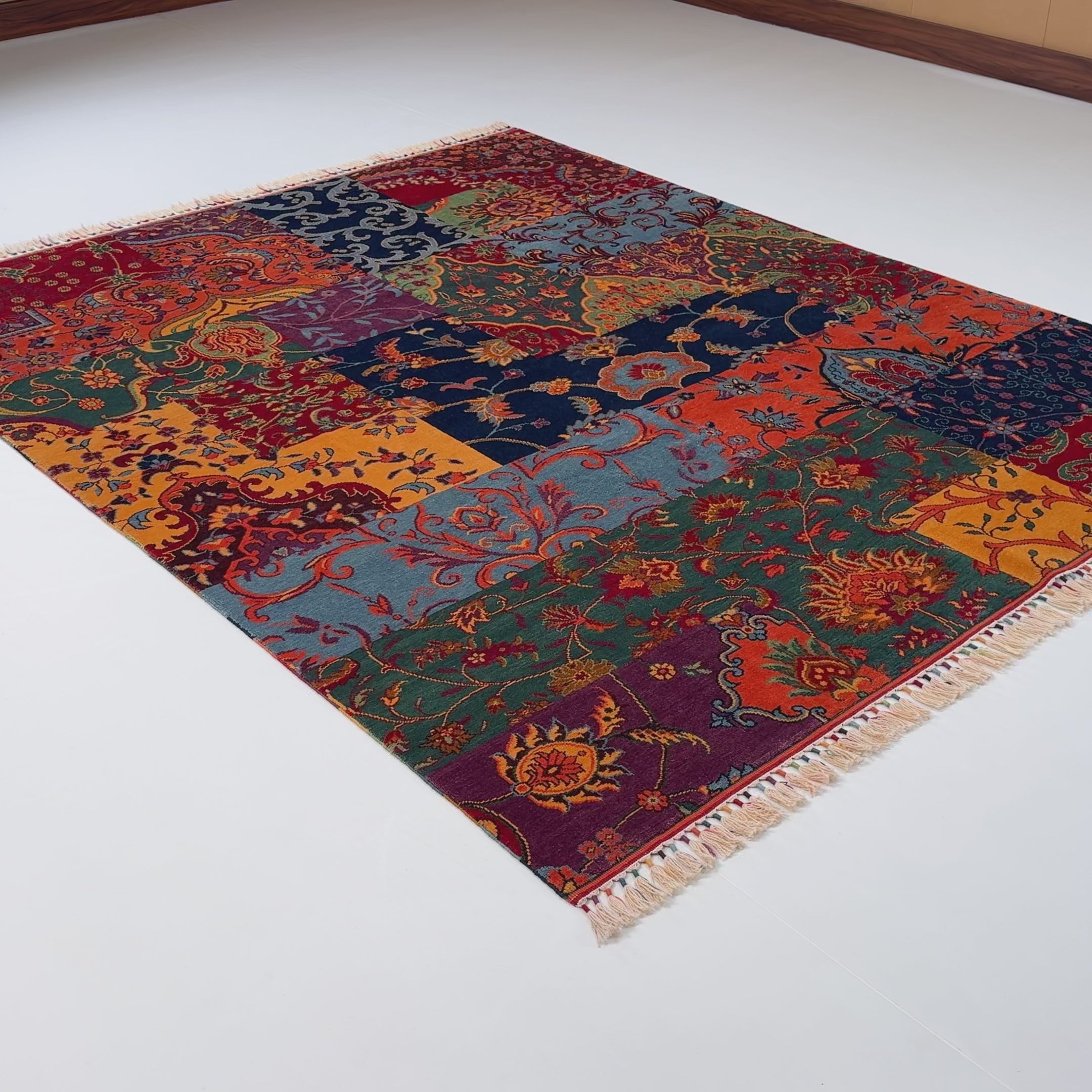 Anadolu Şal Serisi El Dokuma Patchwork Desenli Rengarenk Yün Rug