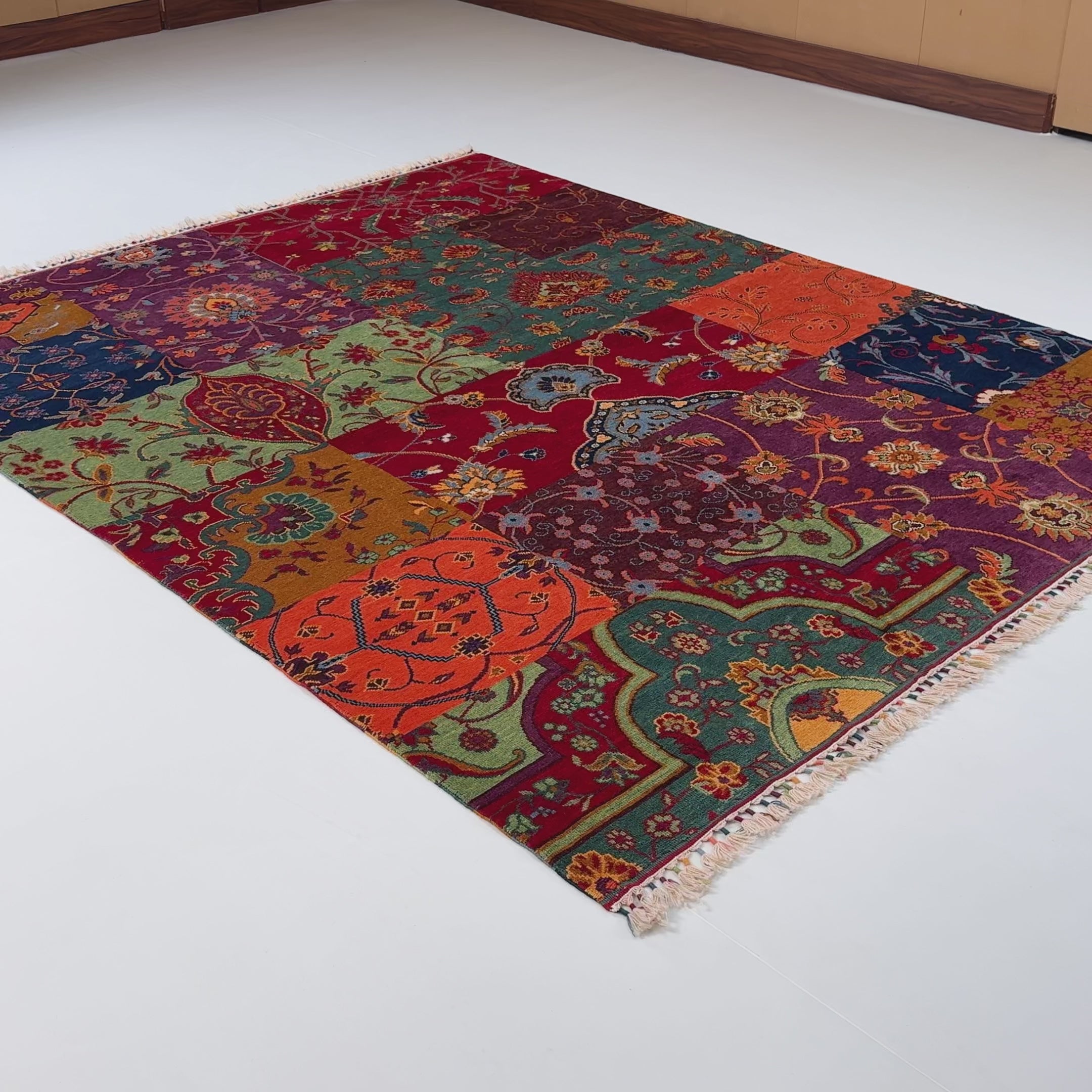 Anadolu Şal Series Handwoven Patchwork Pattern Wool Colorful Rug