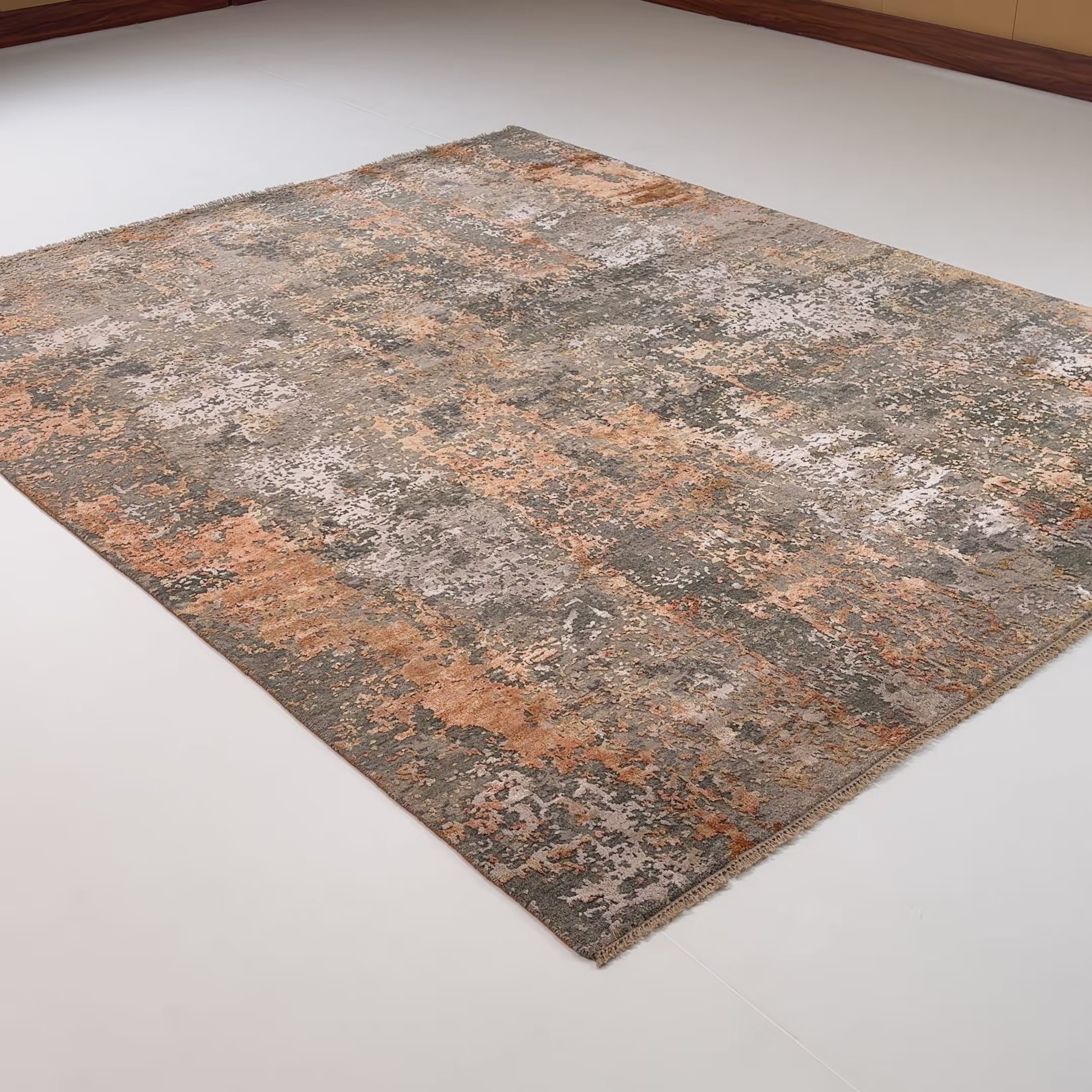 Aren Series Handwoven Abstract Patterned Gray Silk Rug