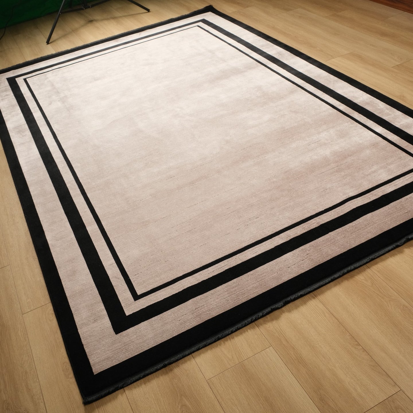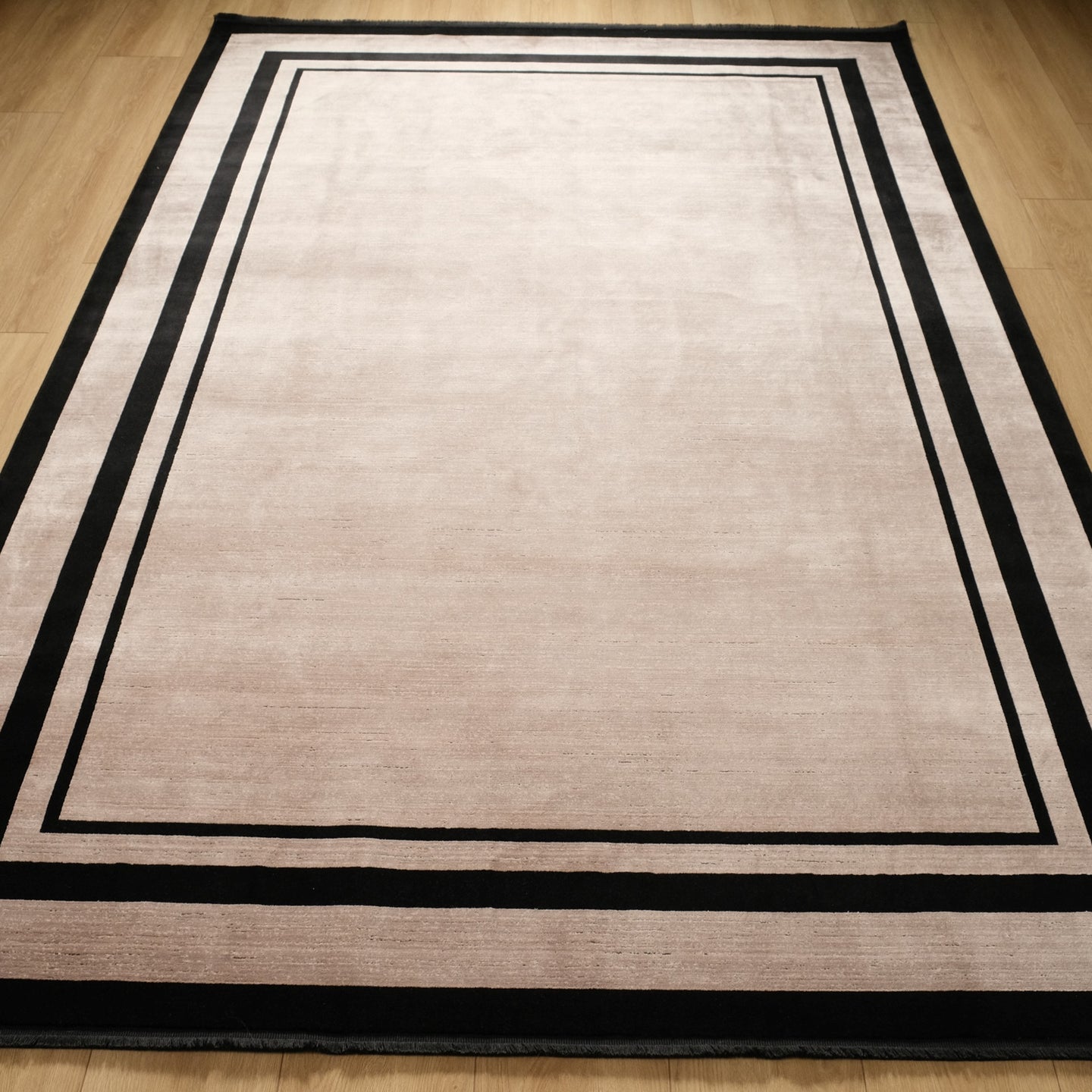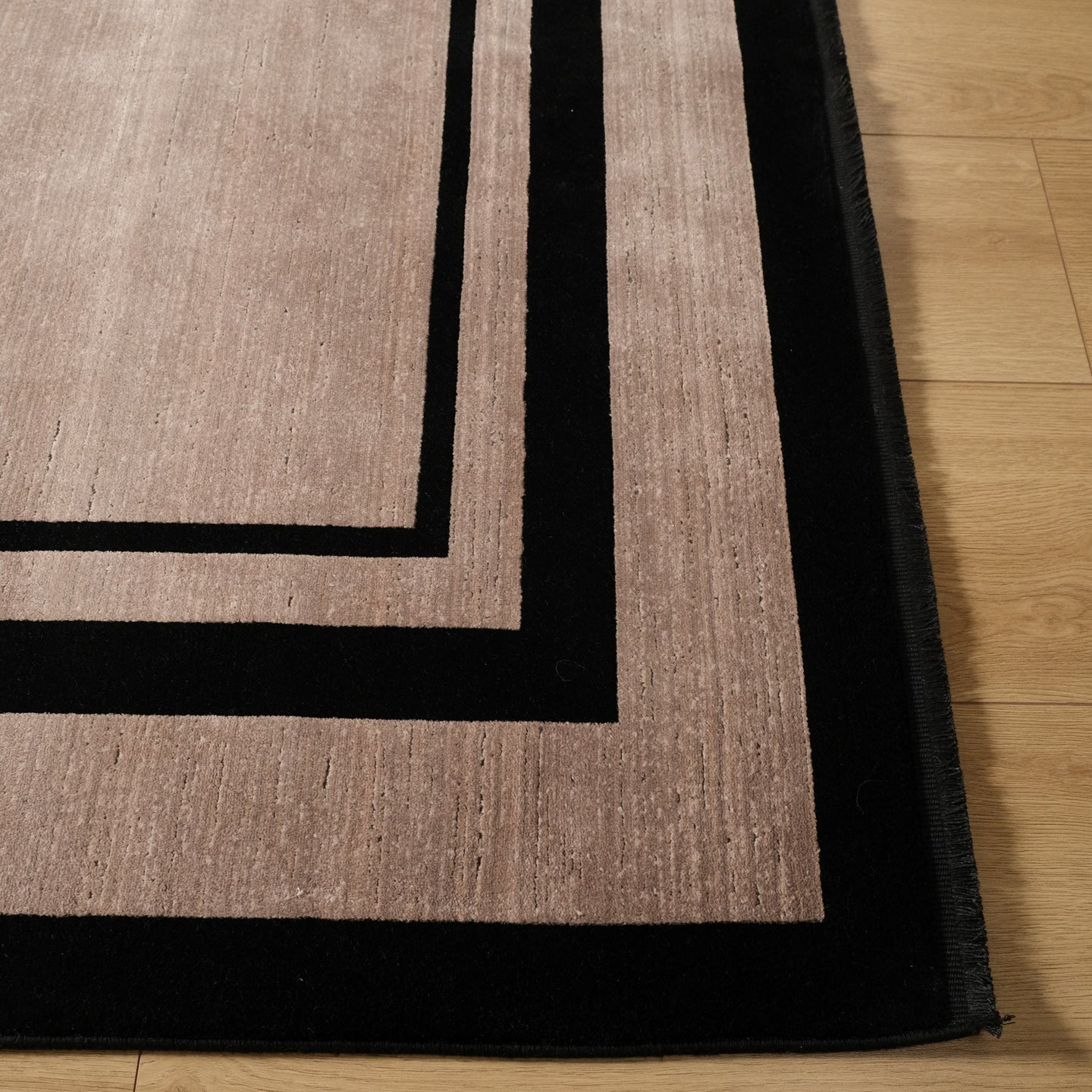 Lugano Series Machine Woven Frame Patterned Gray Black Rug