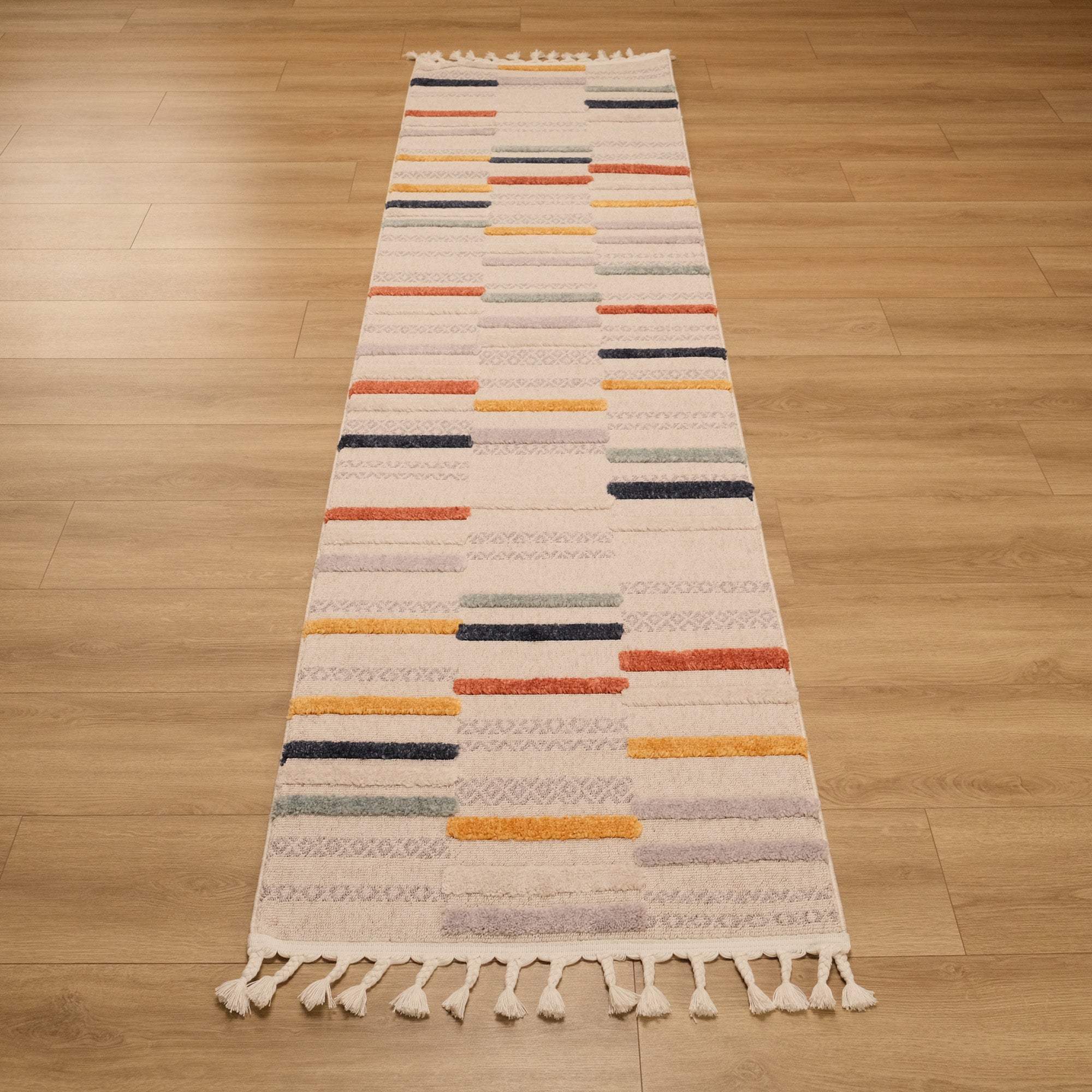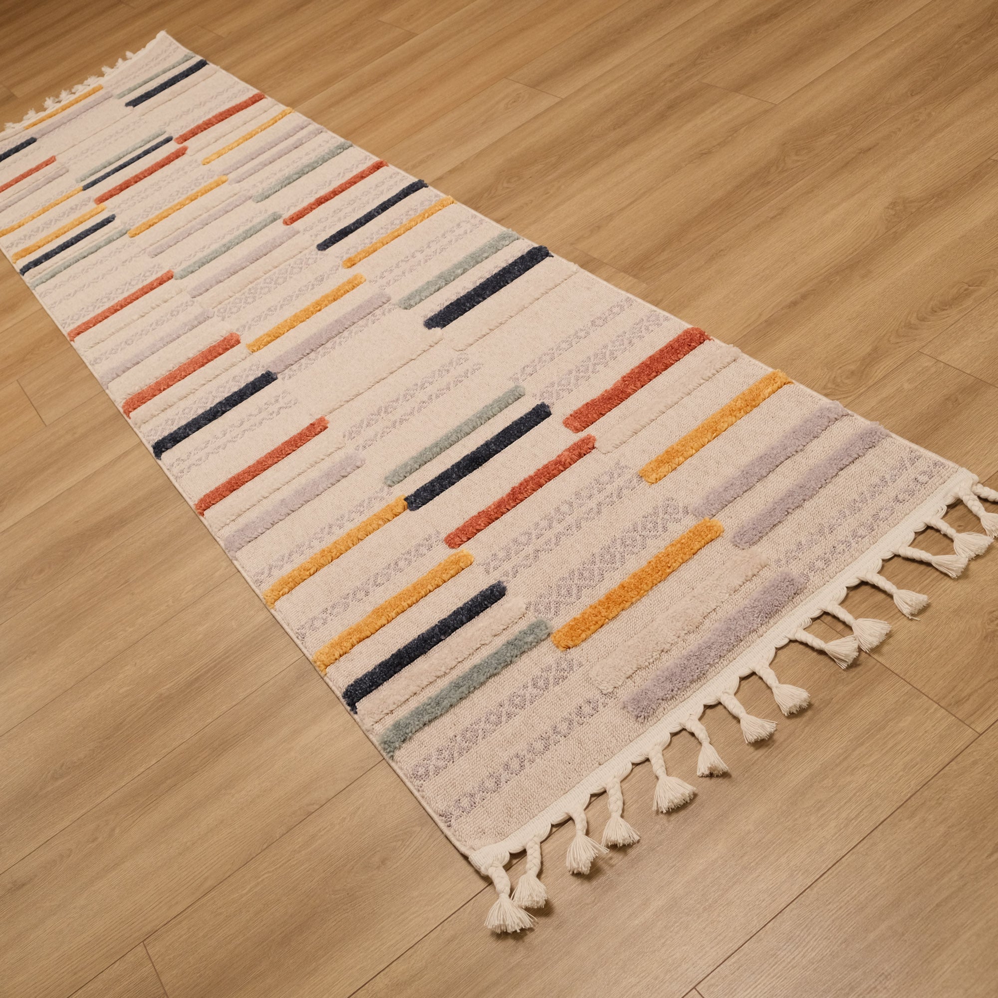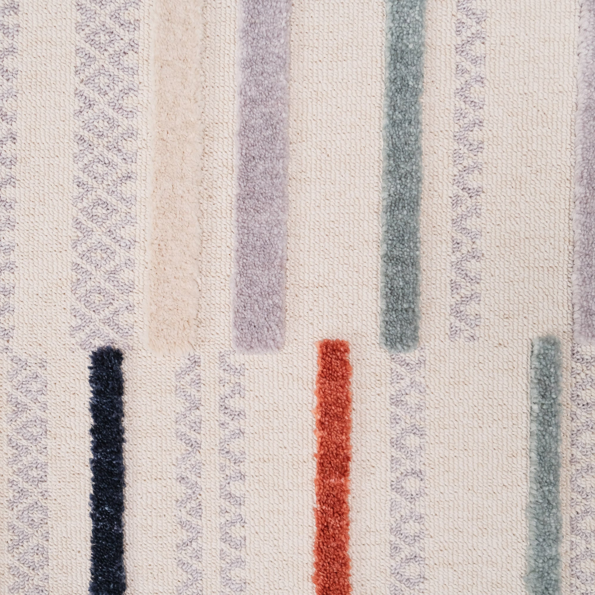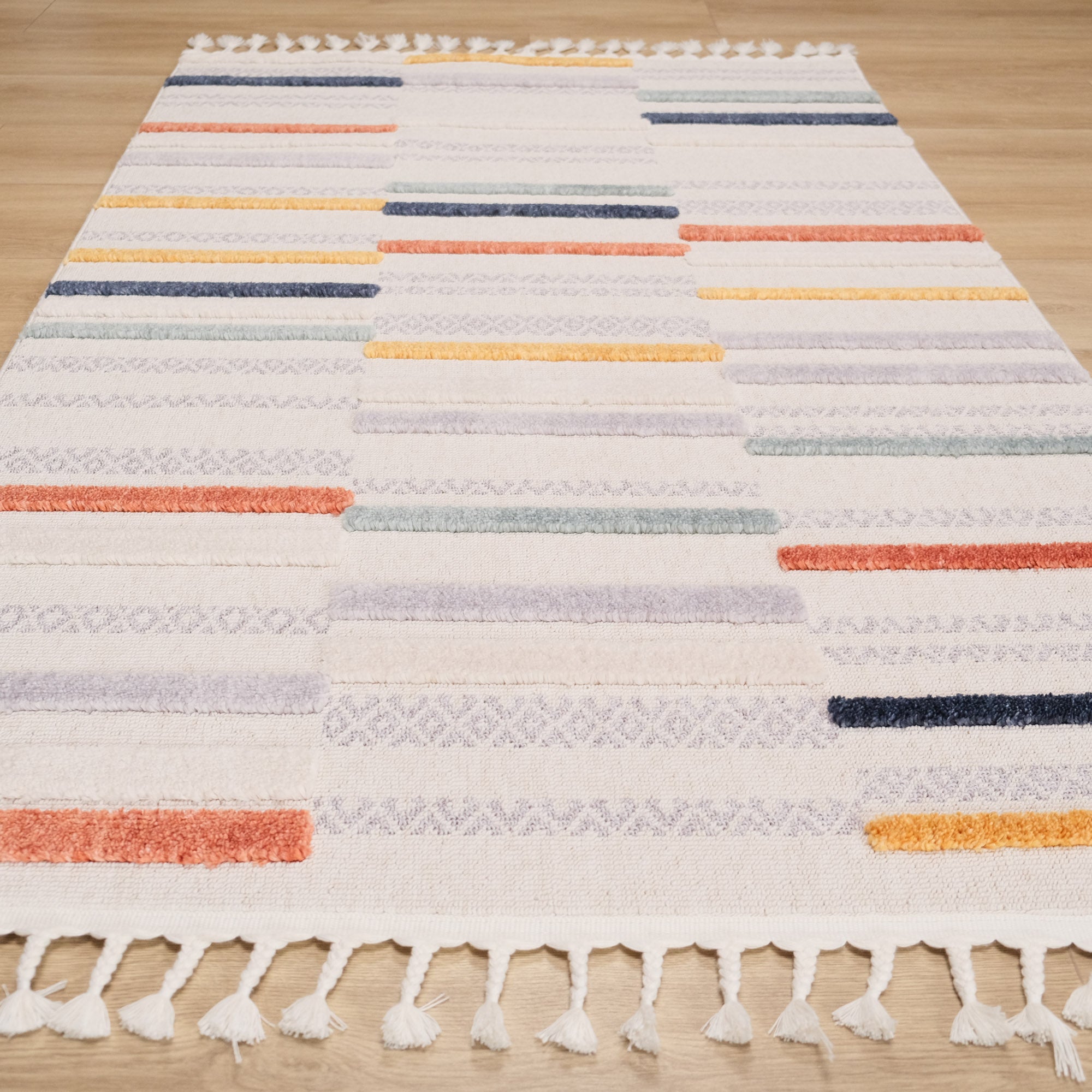 Those looking for an embossed rug love Terazzo; it is perfect for those who want to feel the place it touches with its high-low texture! You can easily choose from Terazzos that have both colorful and soft colors to find the beauty that suits your decoration. With minimal modern Scandinavian patterns that do not tire the eyes, the Terazzo collection is one of the first choices for those who closely follow trends. Terazzo is very suitable for living spaces, entrance halls, kitchens, and lounges in various sizes, and there is also a special size option; you can contact us for different sizes. For those looking for a rug that is durable, soft, and shiny because it is woven with acrylic yarns!Pattern: Striped