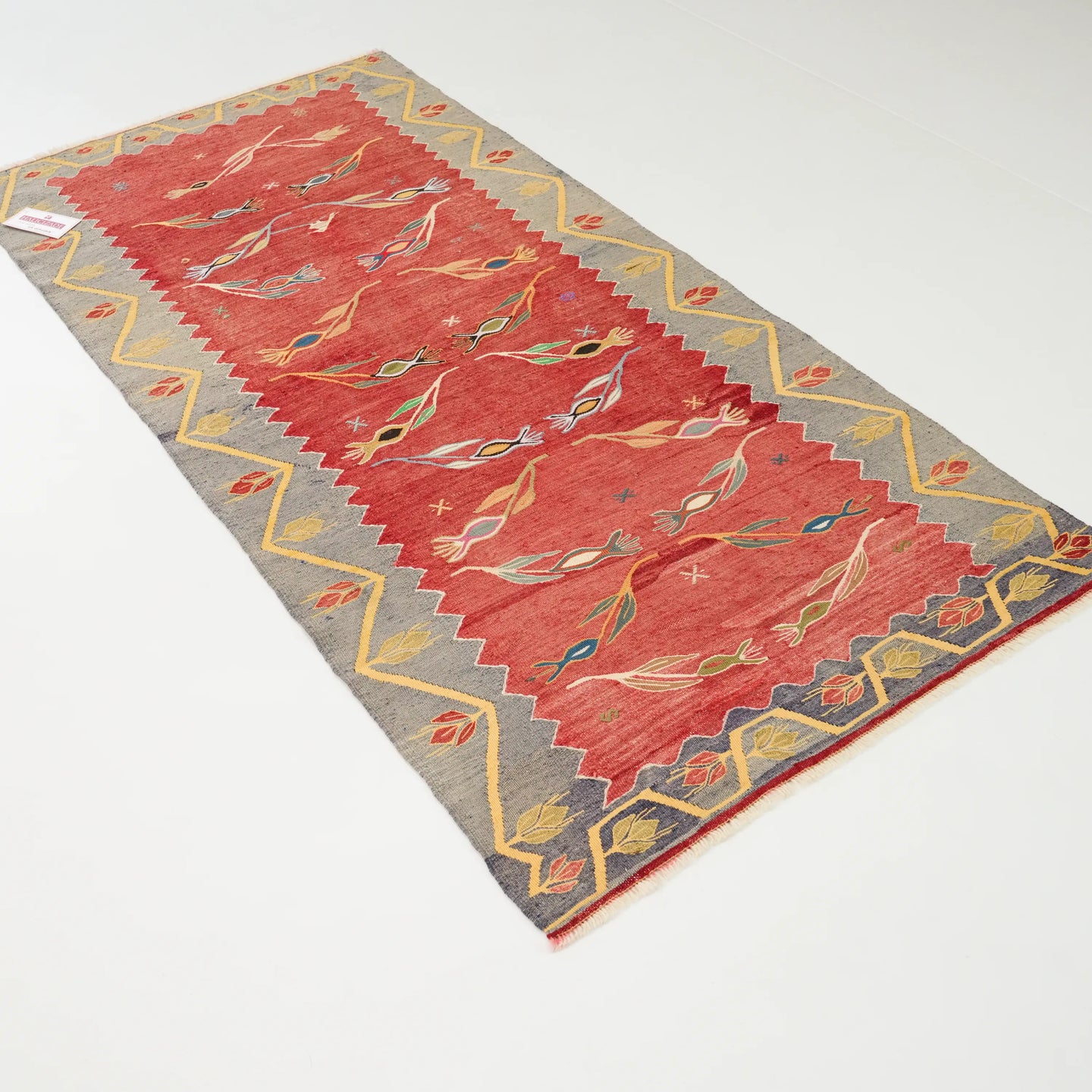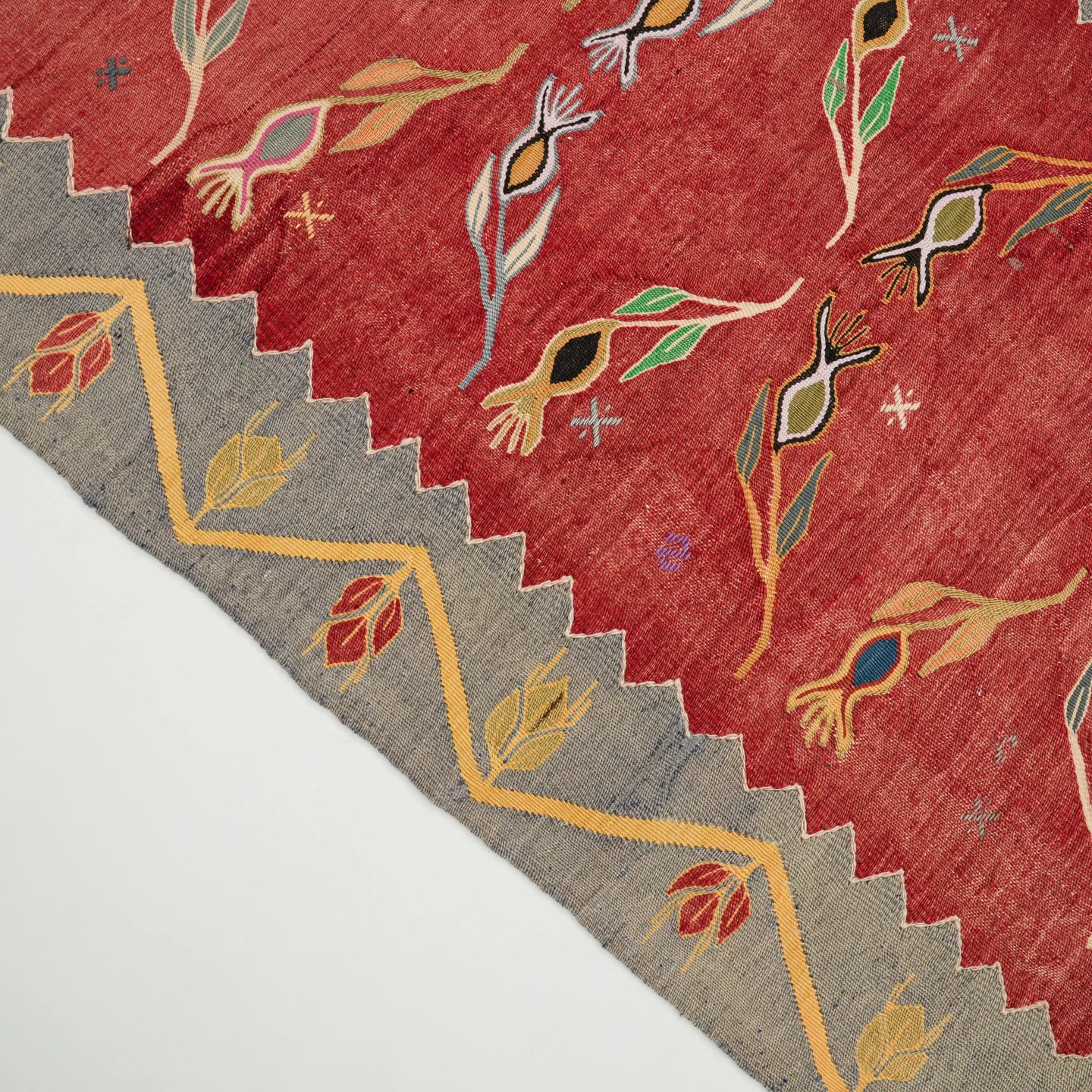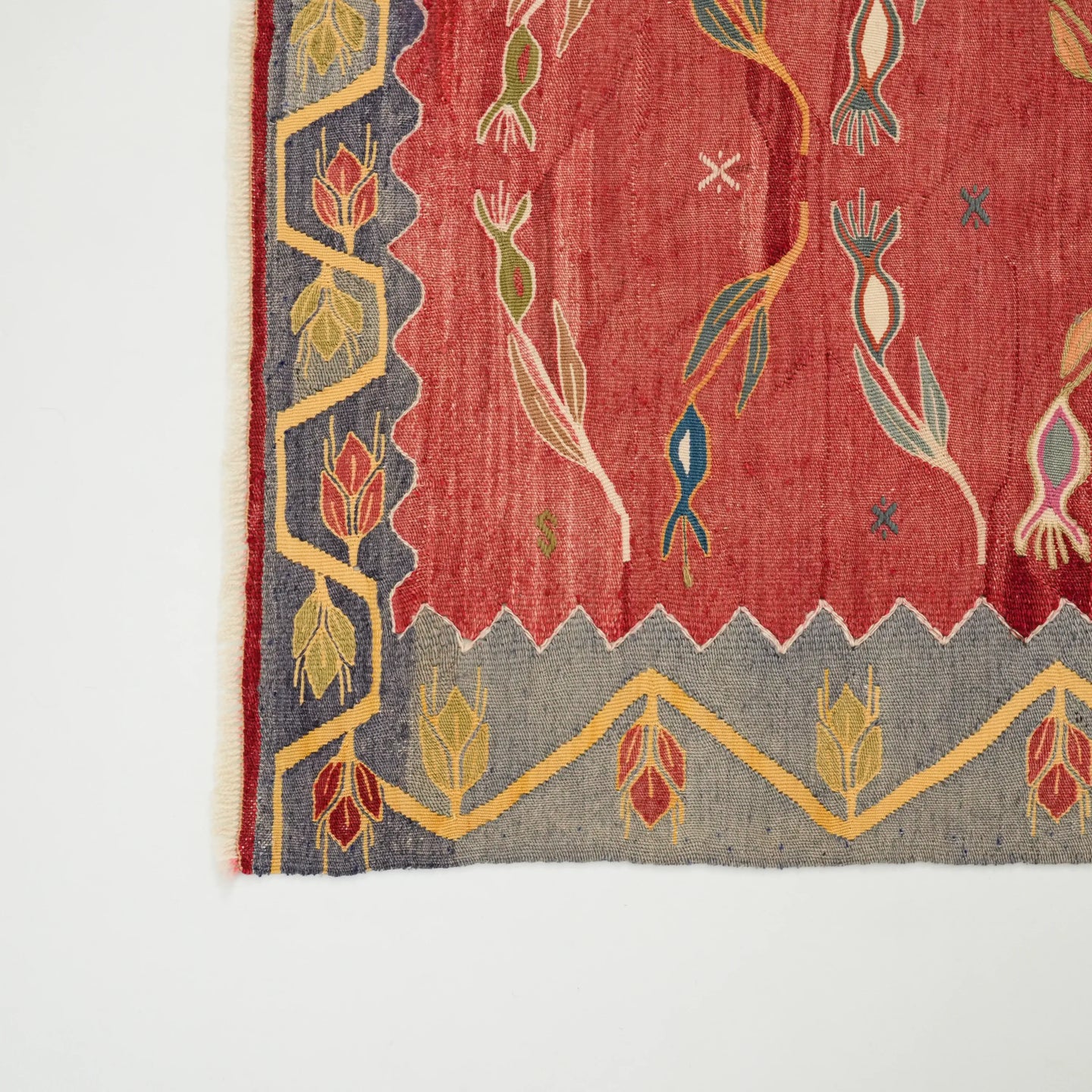 Handwoven Anatolian Patterned Wool 80 Years Uşak Village Kilim