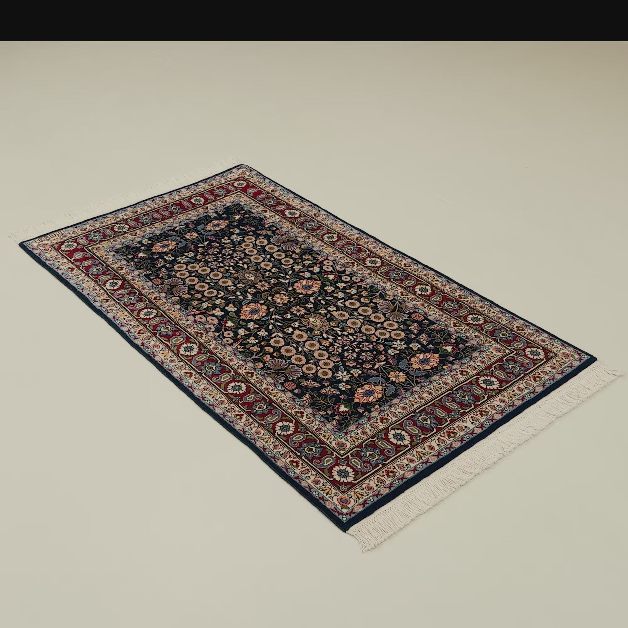 Handwoven Hereke Patterned Navy Wool Rug