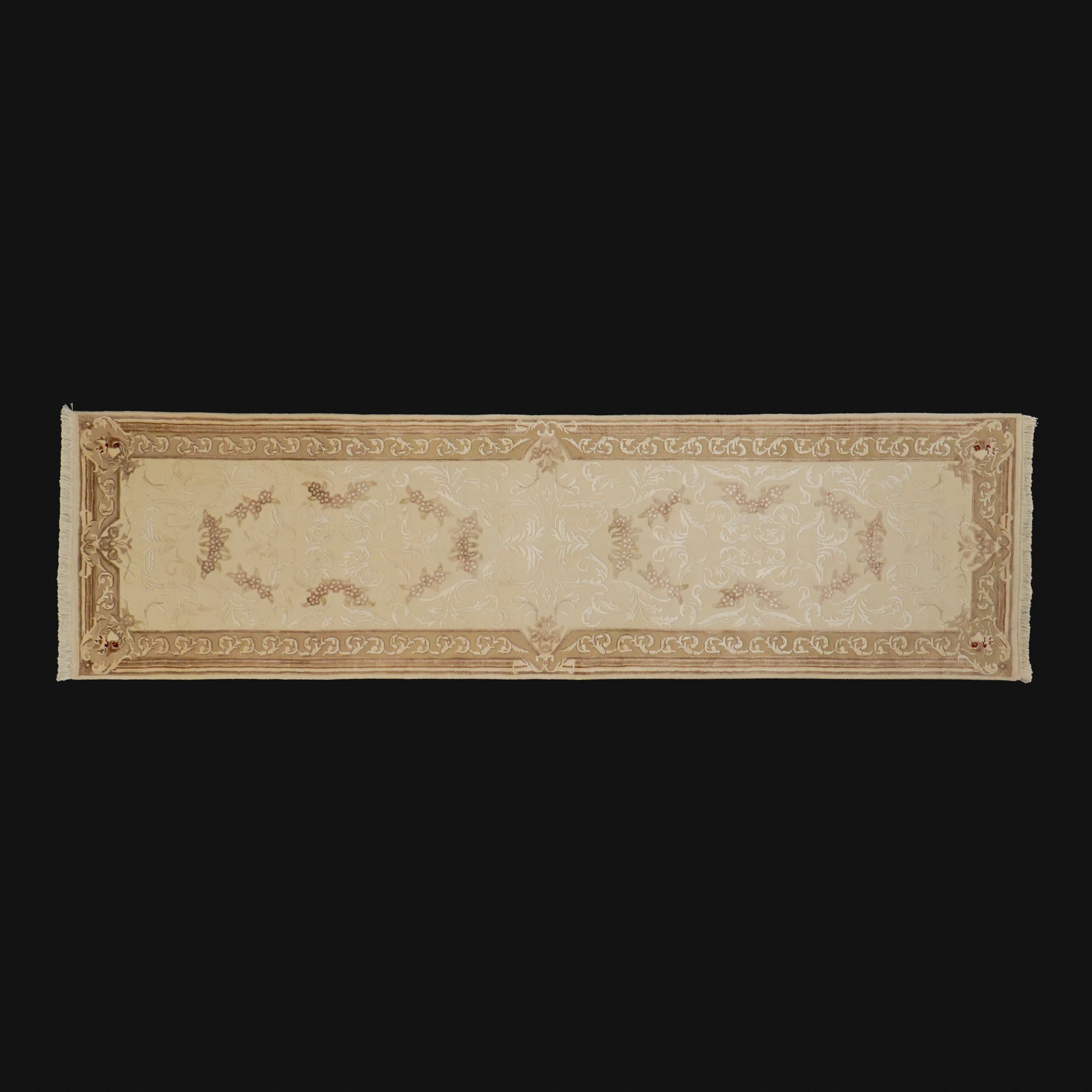 The Handwoven Cream Frame Patterned Wool Rug, measuring 83 x 298 cm, offers an elegant touch to narrow and long spaces. With its stylish, simple, and high-quality structure, it is among the first choices for those seeking calm elegance. This design, completely handmade by skilled artisans in India, emerges as a result of a meticulous production process lasting months. The design uses 100% wool yarns on its surface, with patterns embroidered using viscose yarns that provide a silky shine. Thanks to its cotton skeleton, it ensures durability, while its structure made from natural materials adds tranquility and a sophisticated atmosphere to the spaces where it is used.