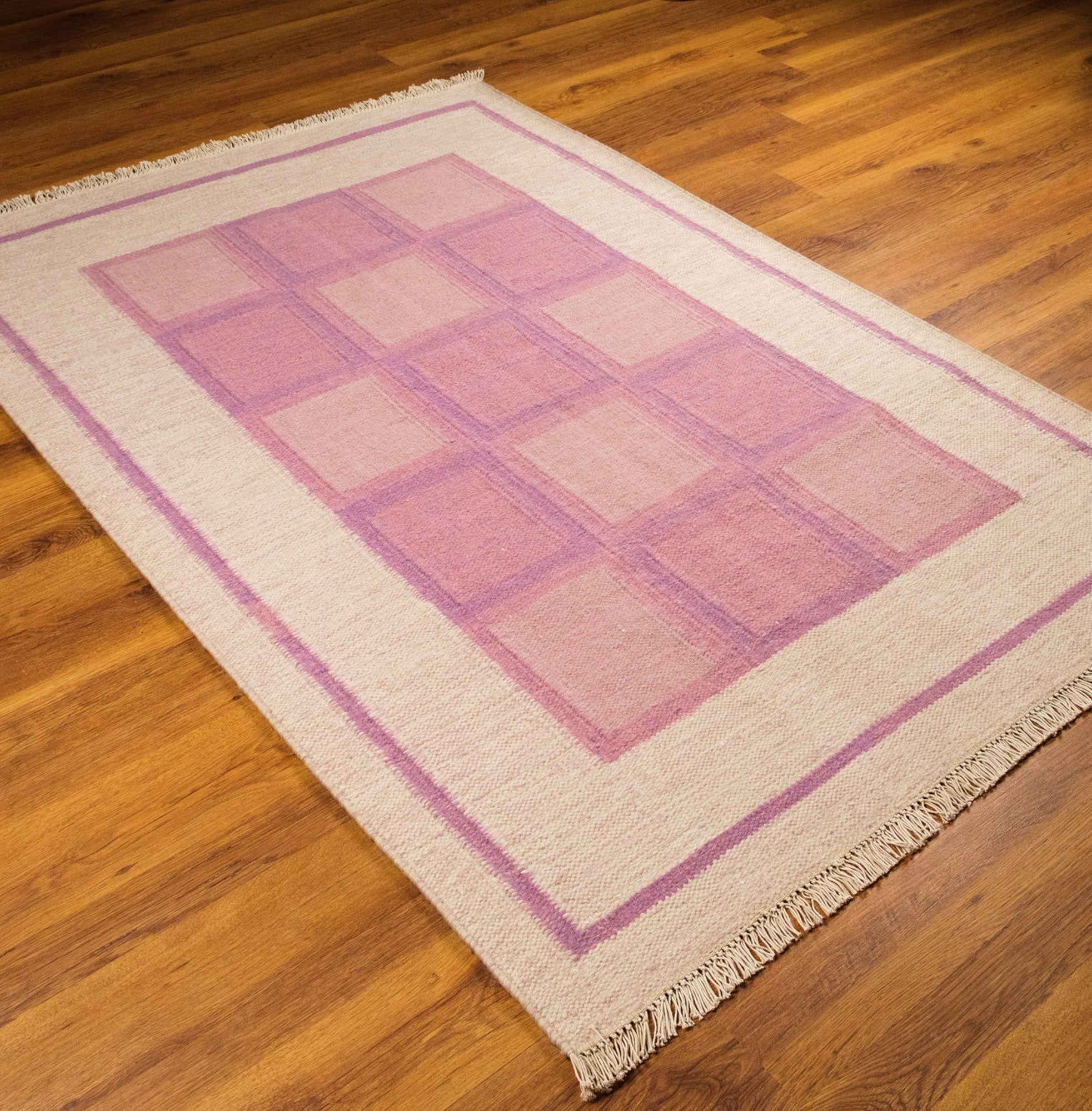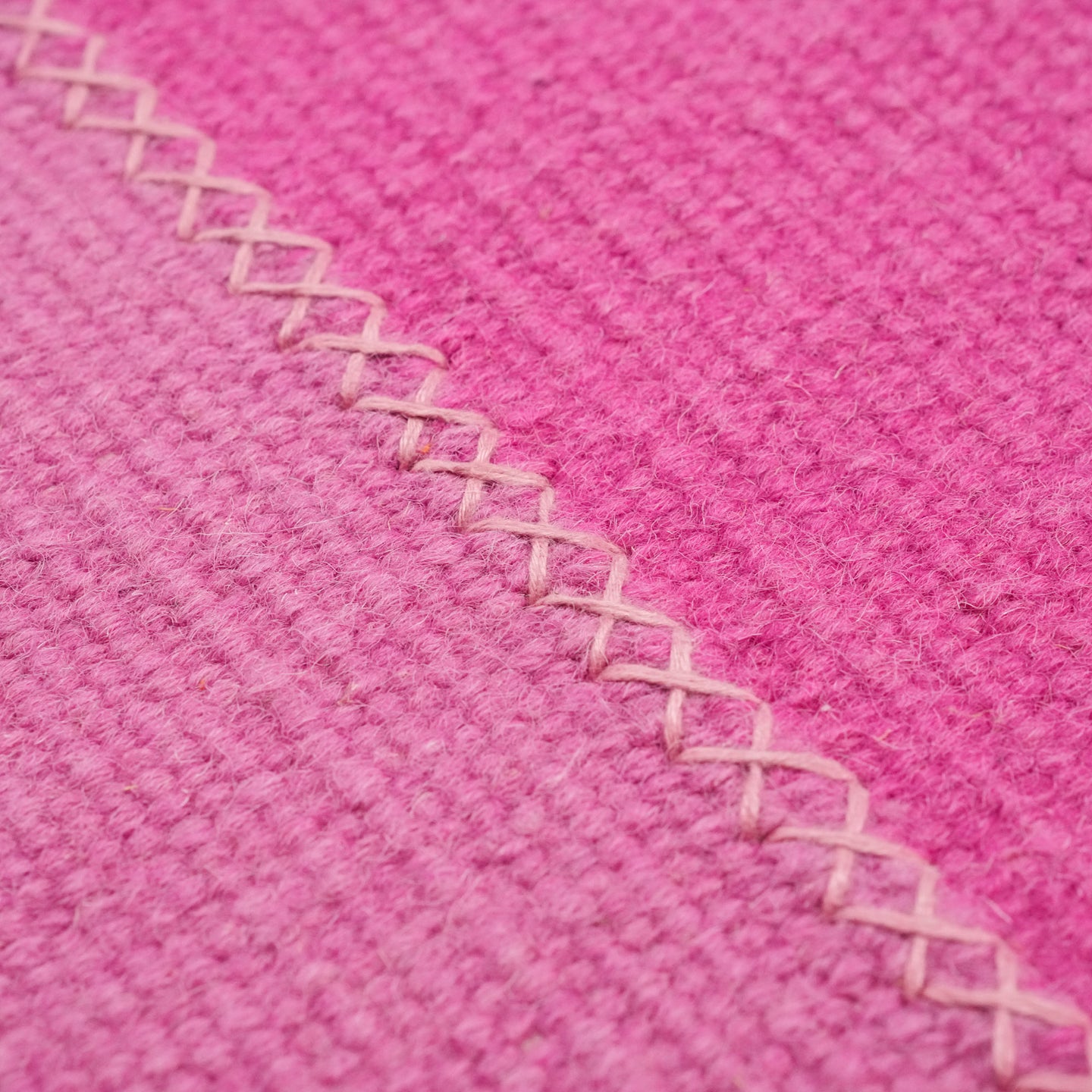 You can add movement to modern decor with the high-energy pink color of the kilim texture produced by hand-weaving wool yarns.