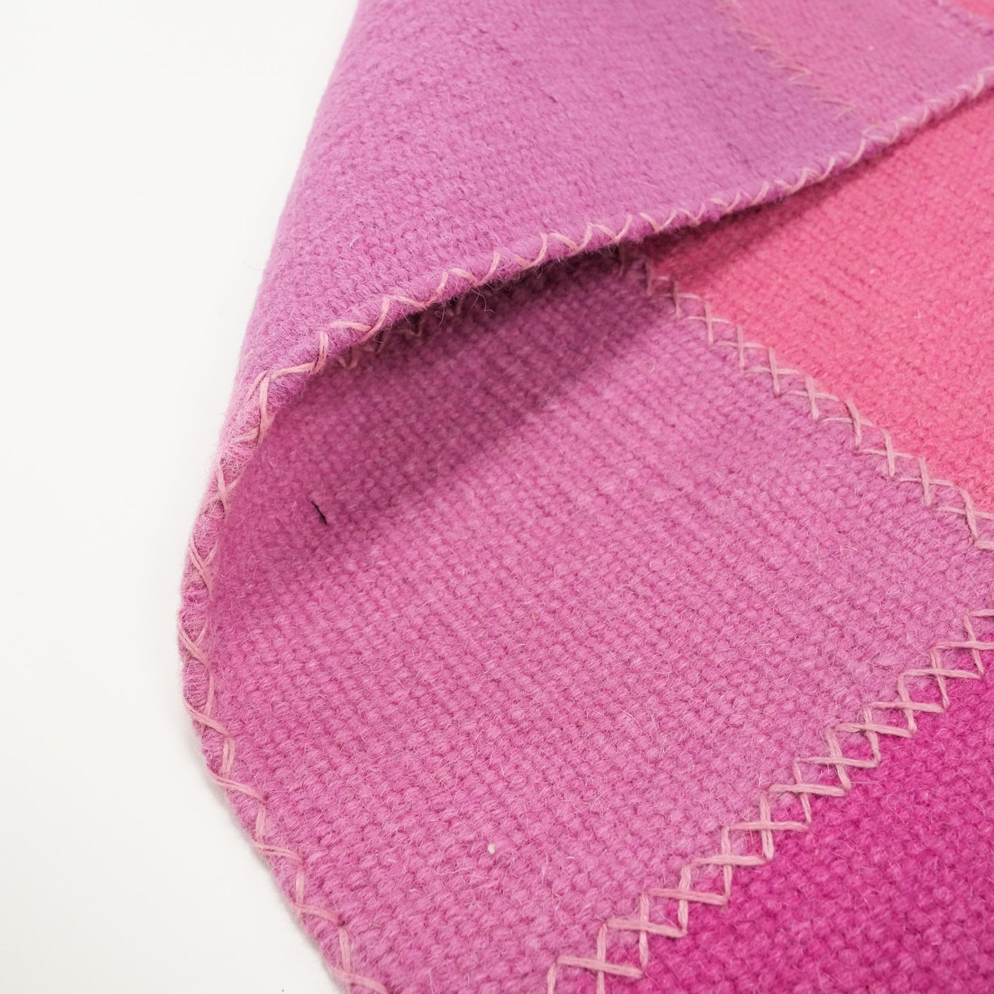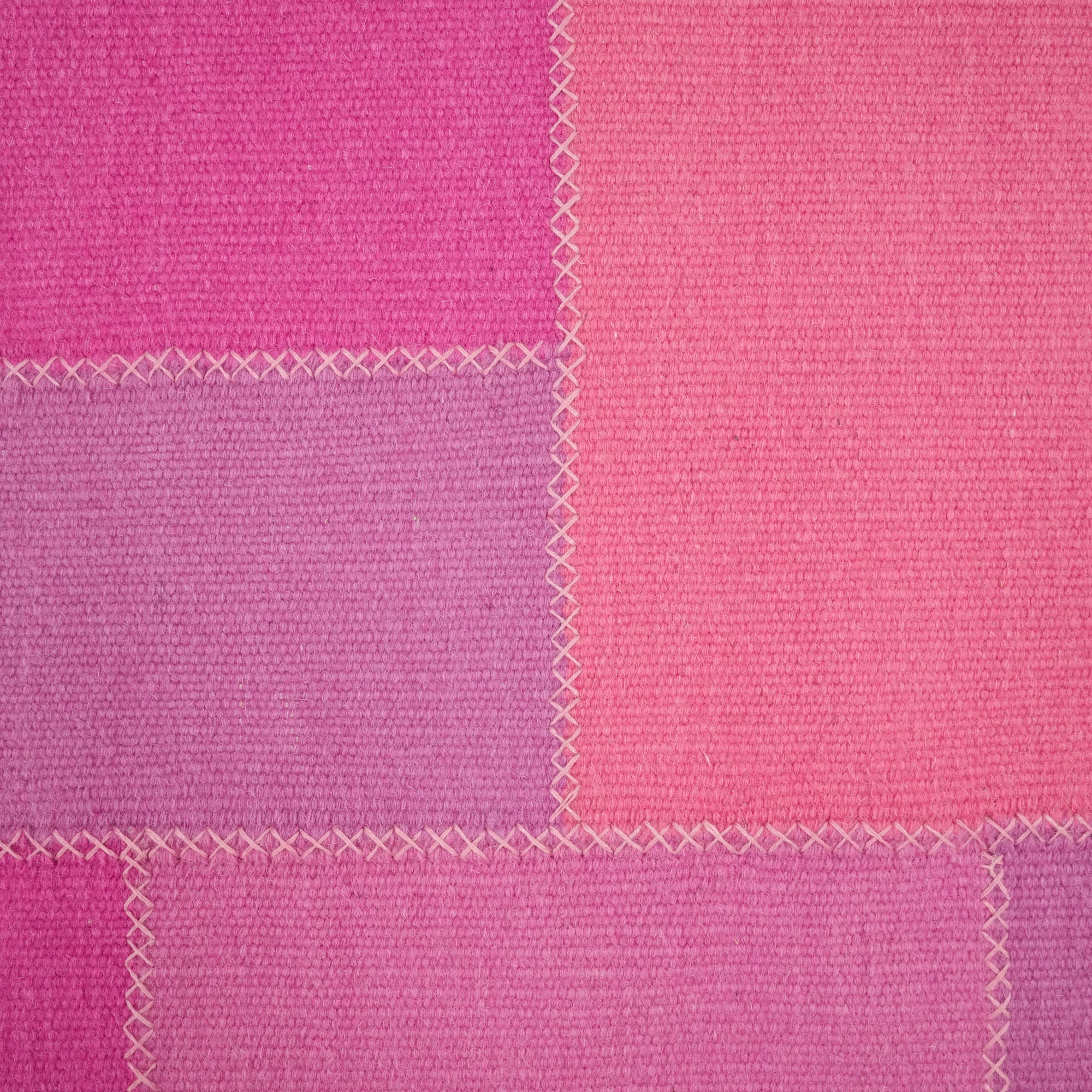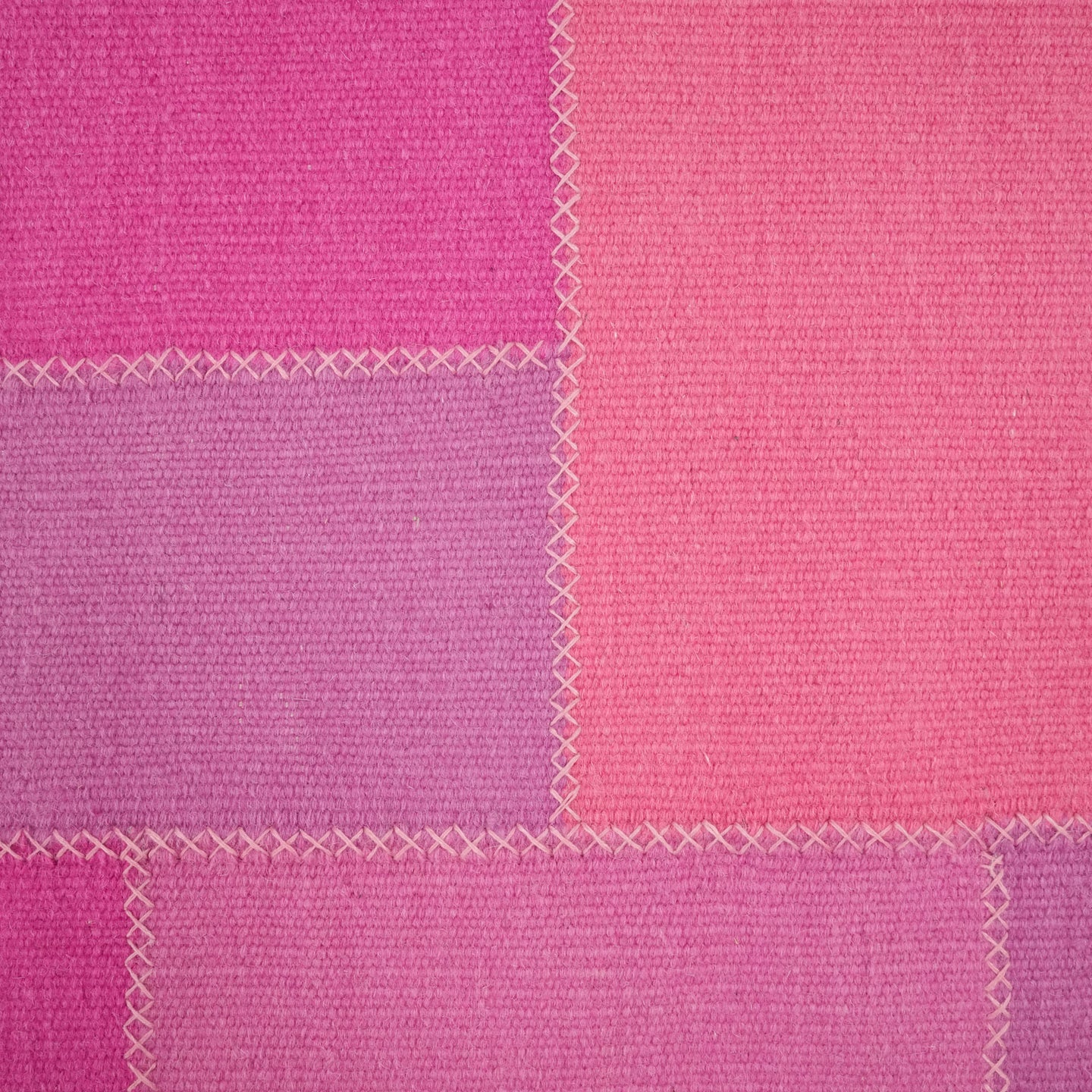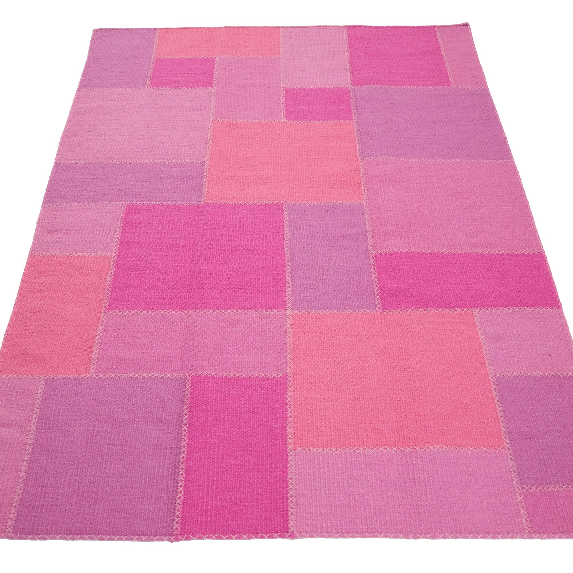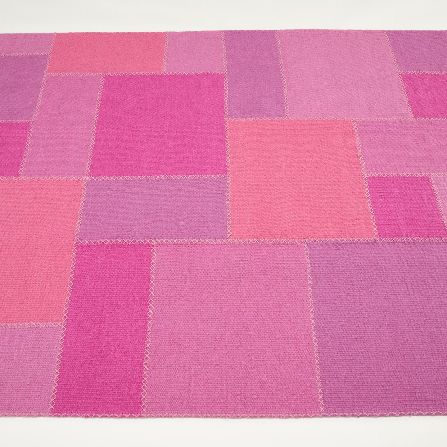 Handwoven Patchwork Patterned Pink Wool Kilim
