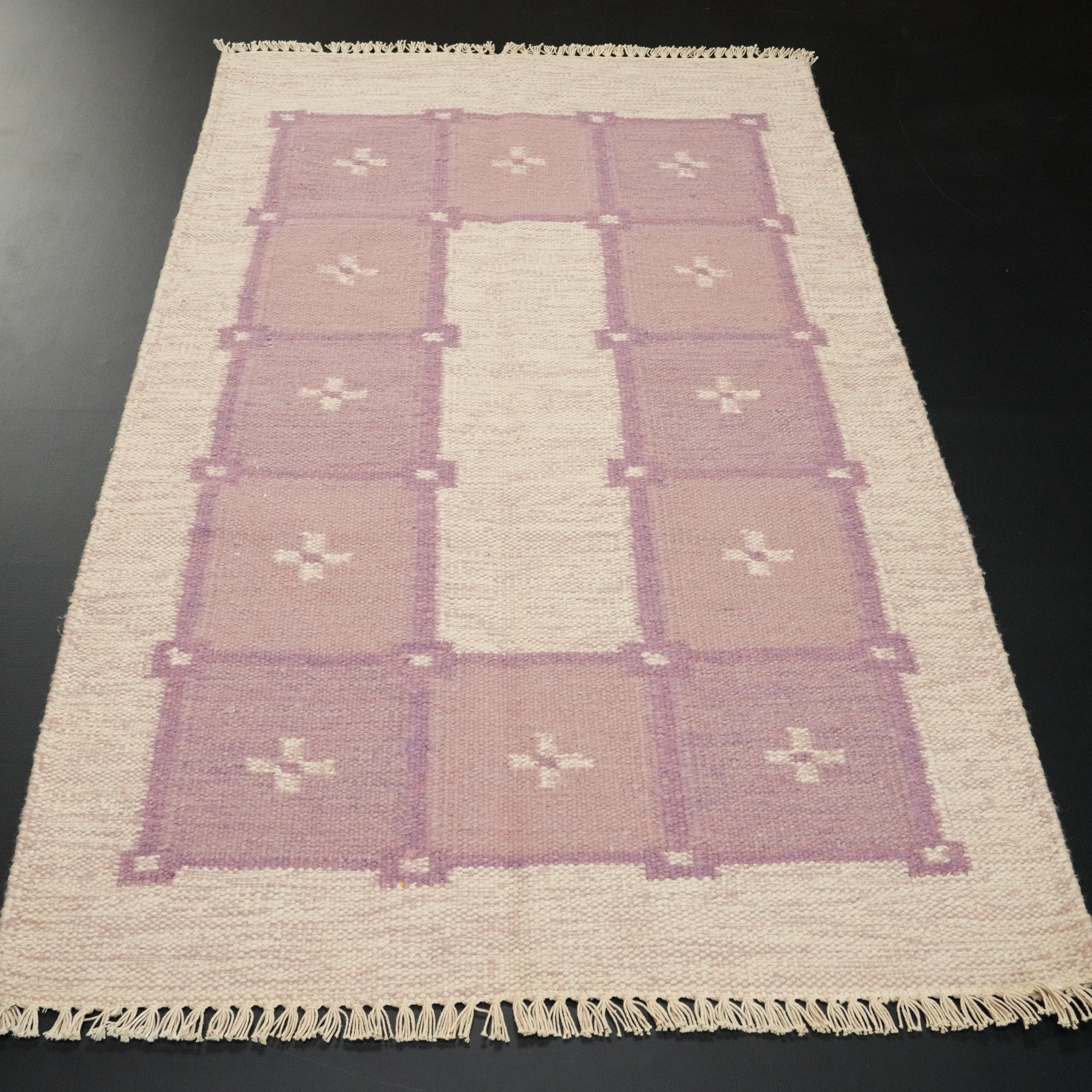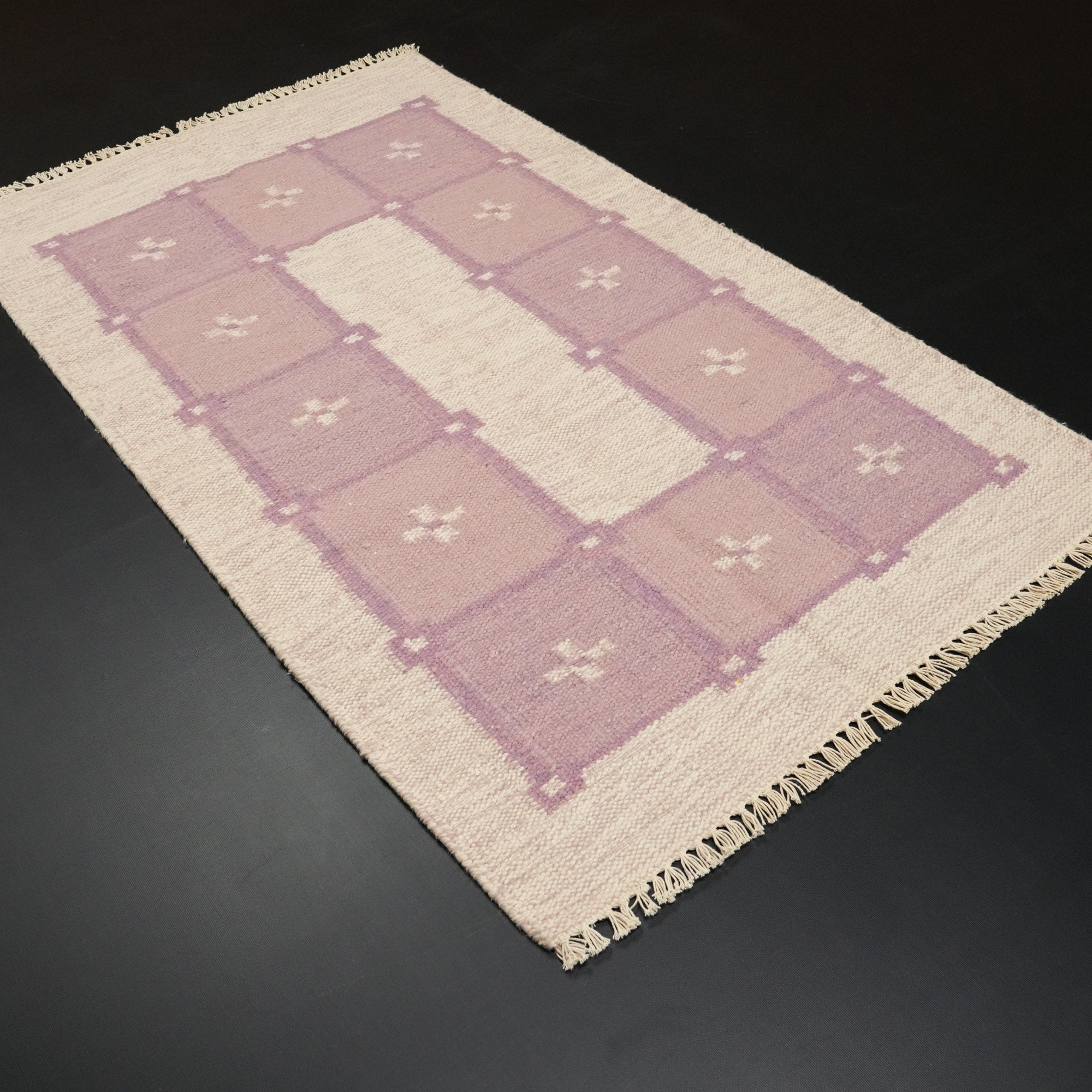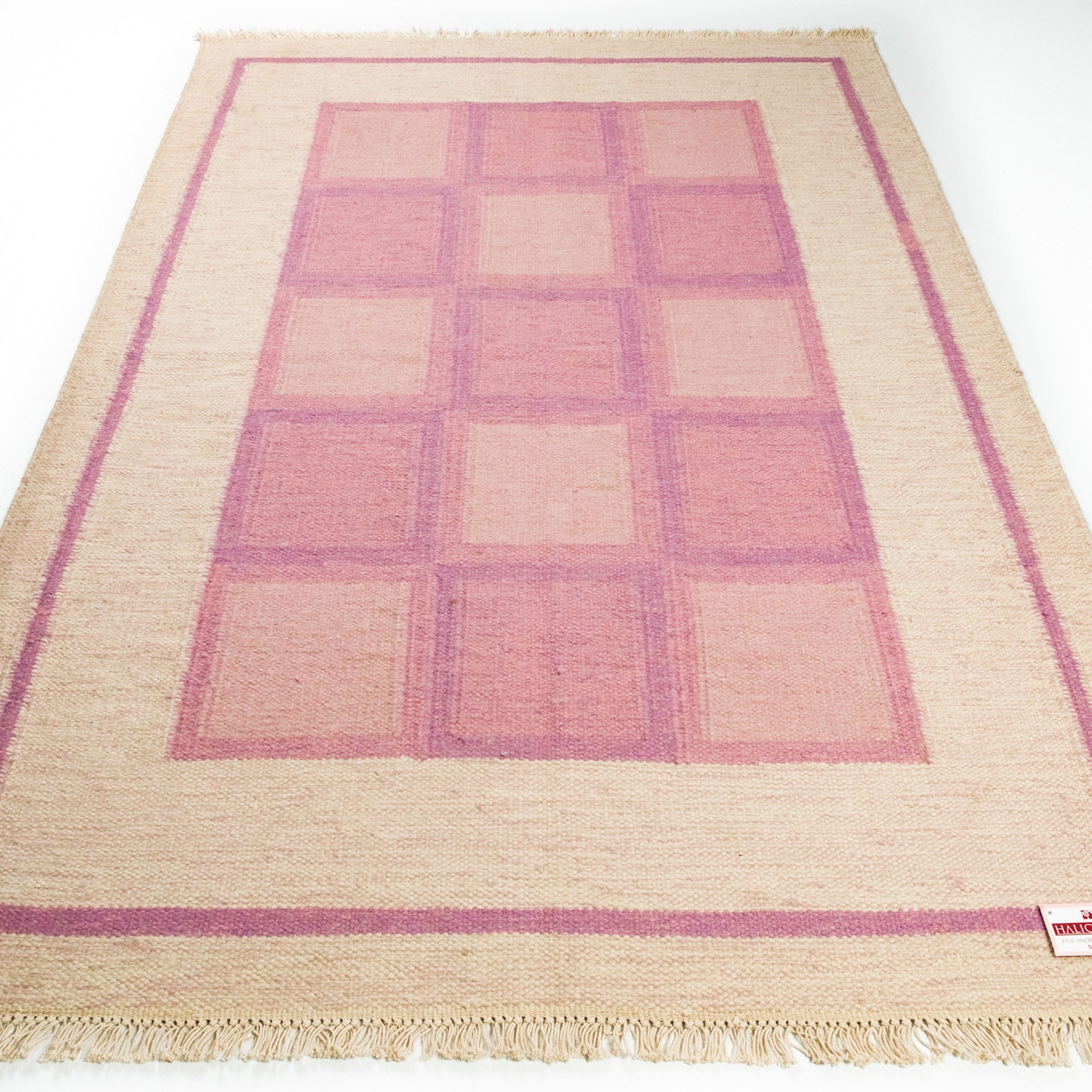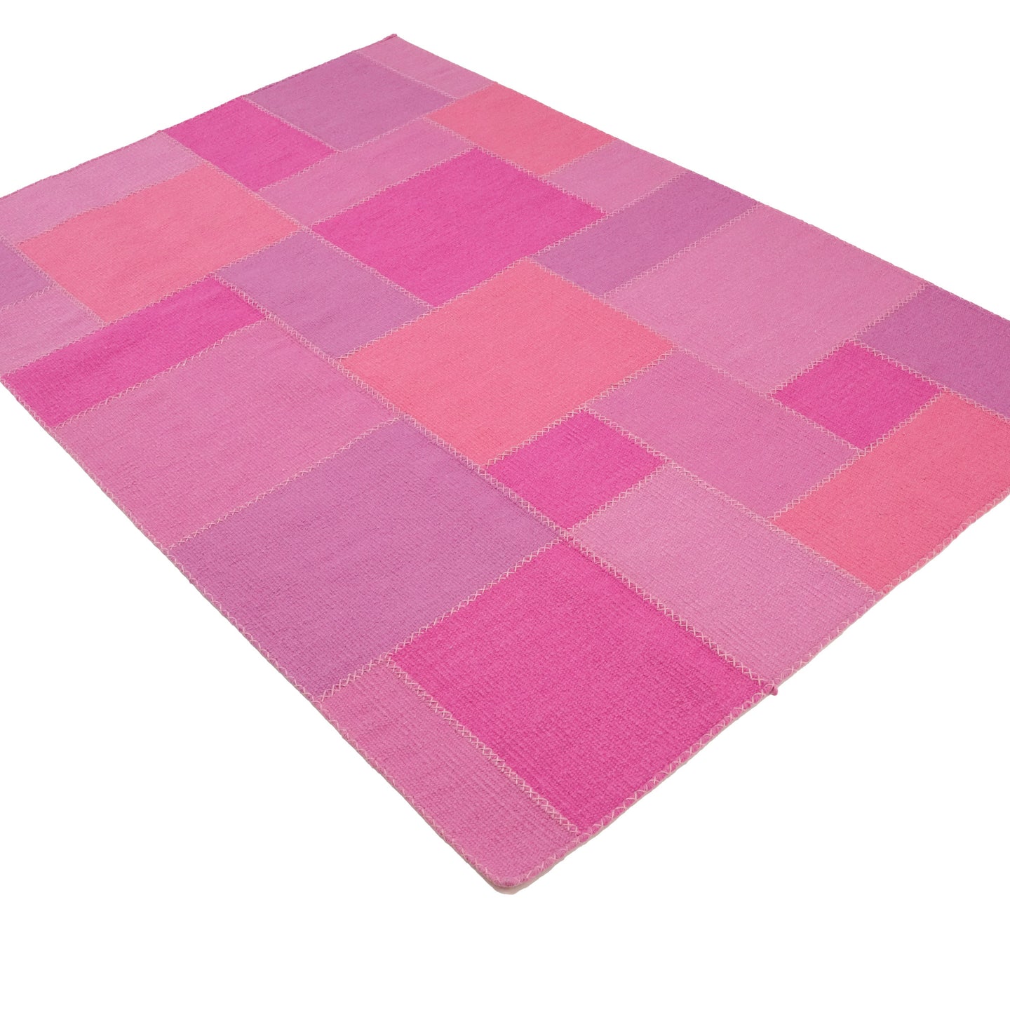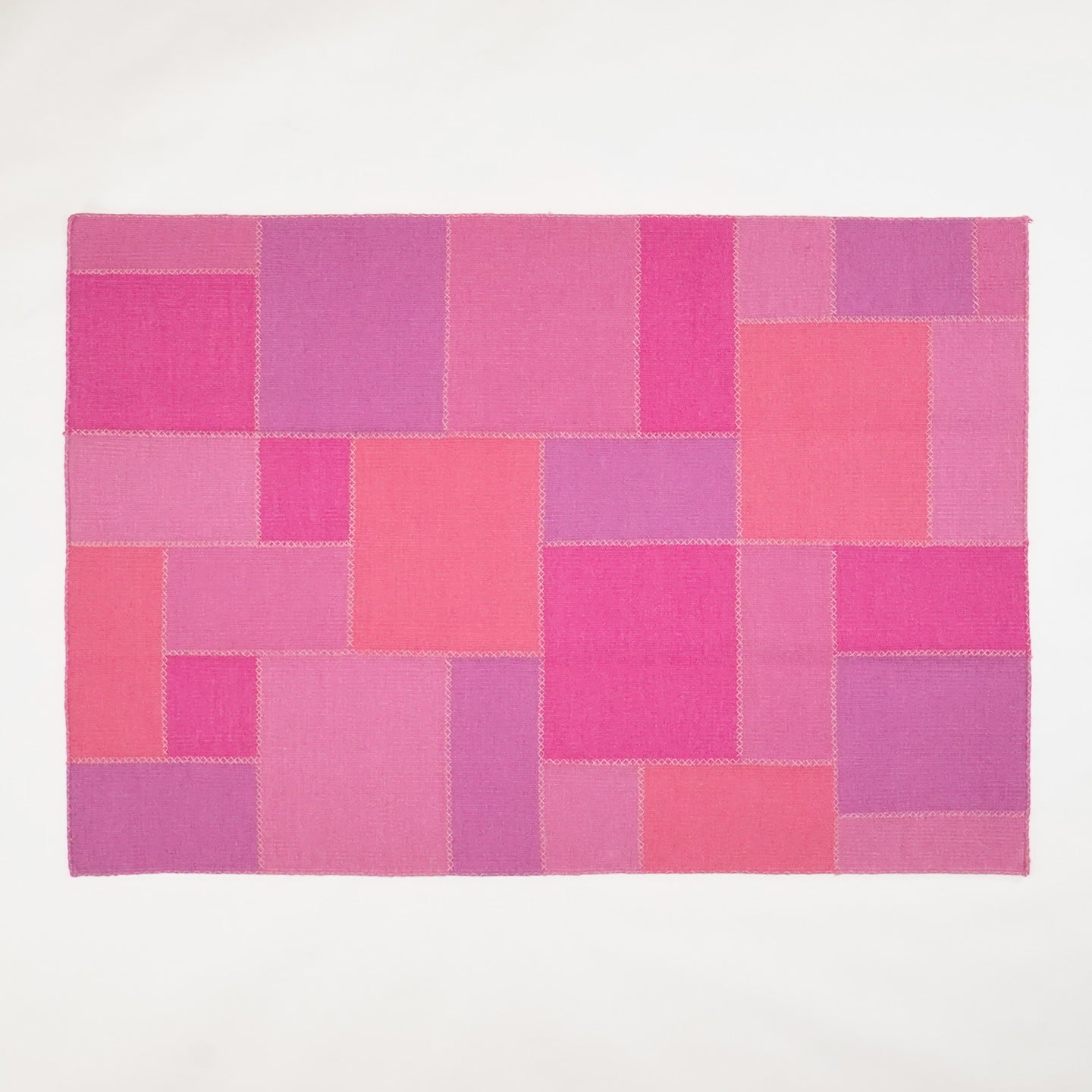 Handwoven Patchwork Patterned Pink Wool Kilim