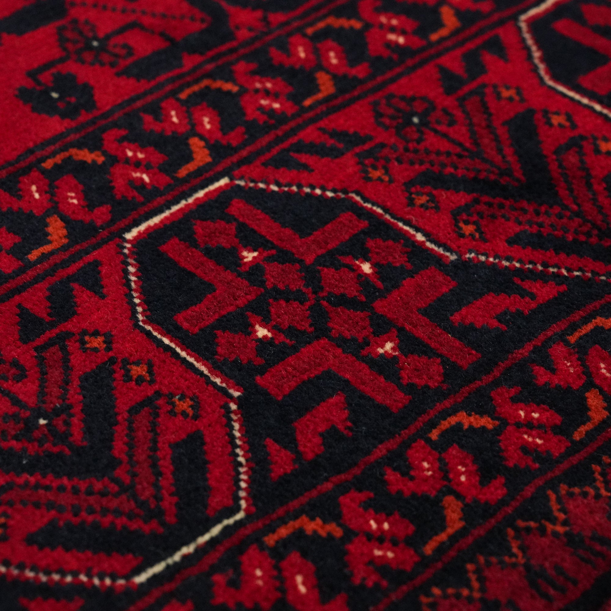The Handwoven Wool Afghan Patterned Burgundy Bilecik Rug, measuring 104 x 150 cm, is a candidate to adorn your homes as one of the most exquisite examples of traditional weaving art! This rug, crafted by Turkmen and Afghan masters in Afghanistan, stands out with its high knot density and craftsmanship quality. Each square meter takes about four weeks to complete.