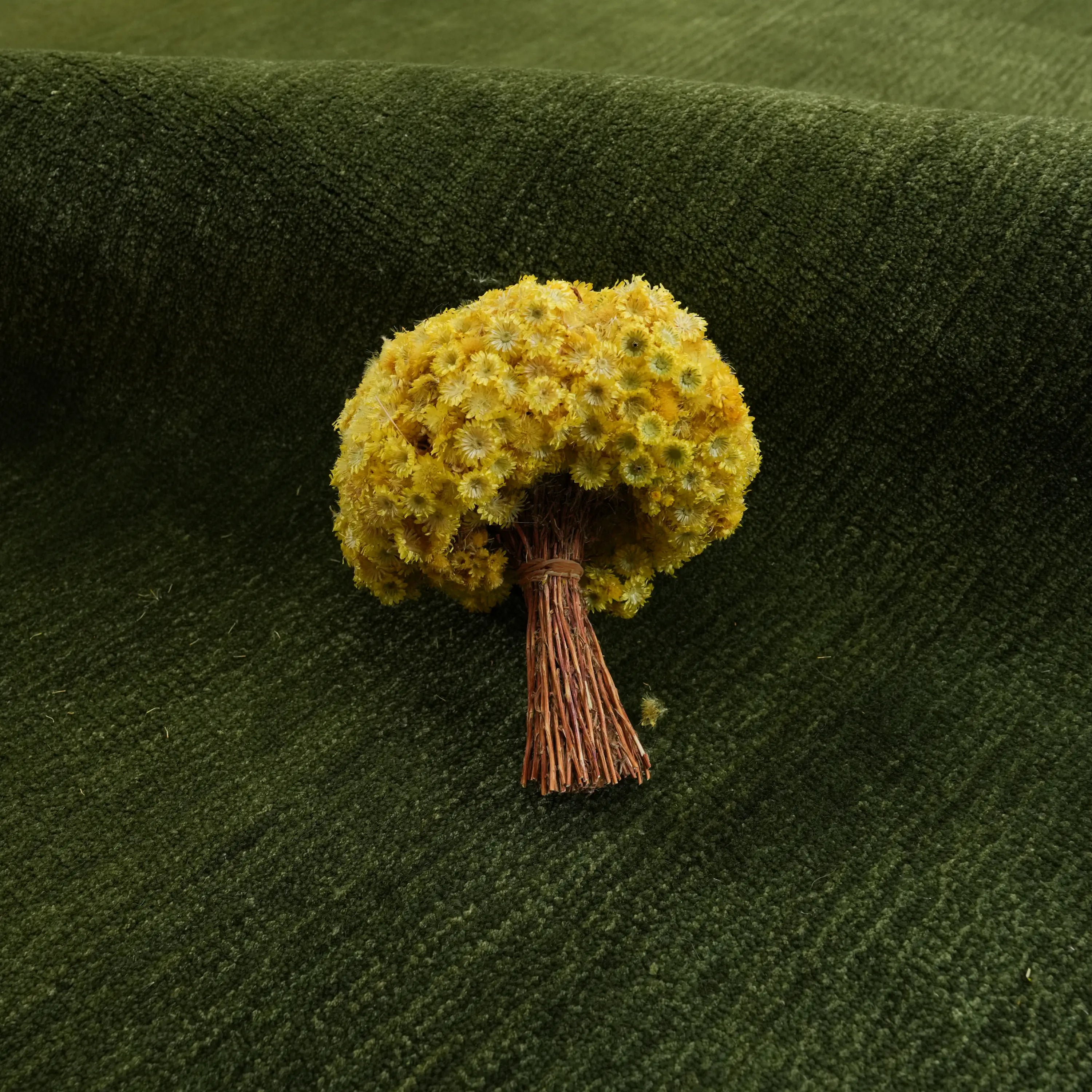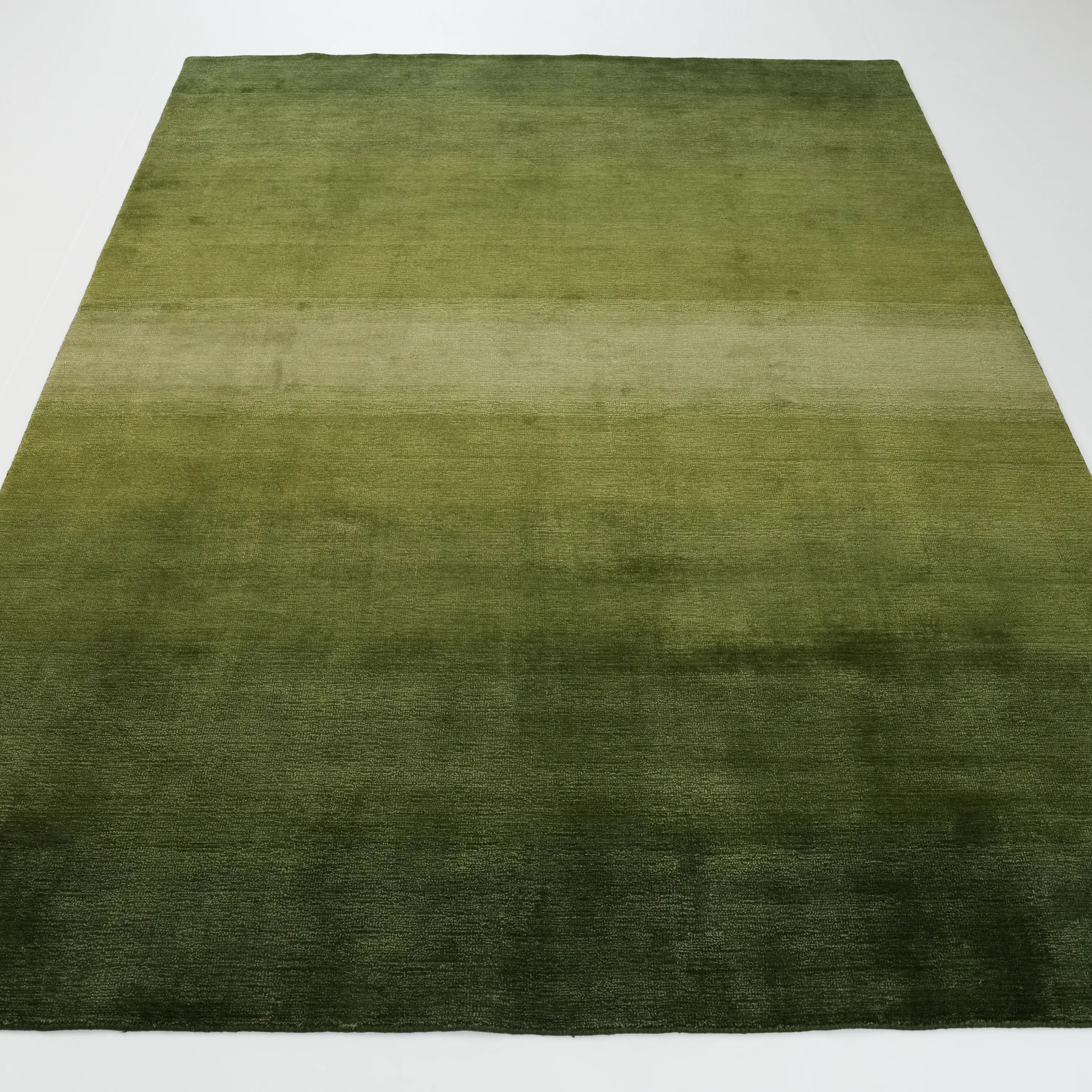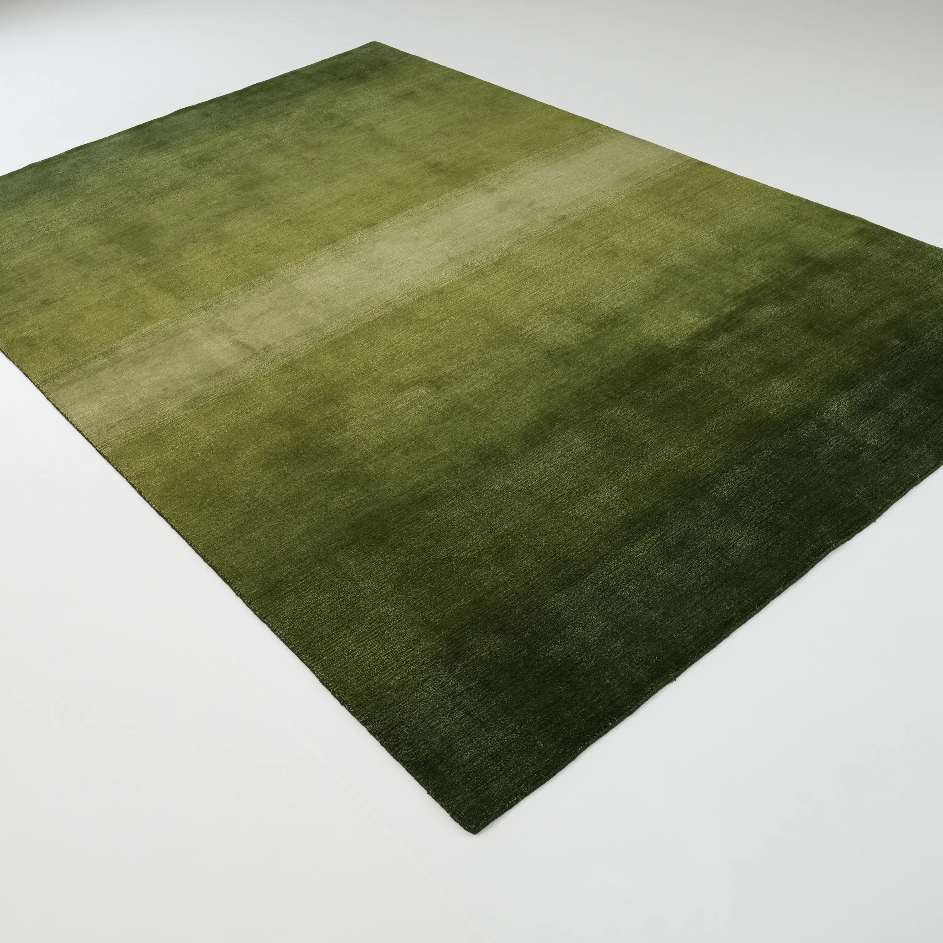 The Focus Series Loom-Woven Plain Patterned Green Rug captivates those who want to escape the chaos of the modern world and bring the peace of nature into their home. Produced on traditional looms in India, this rug shows how simplicity meets elegance. The shades of green flowing from dark to light remind one of the natural play of light that the sun filters through tree leaves and leaves on the ground while walking in a forest.