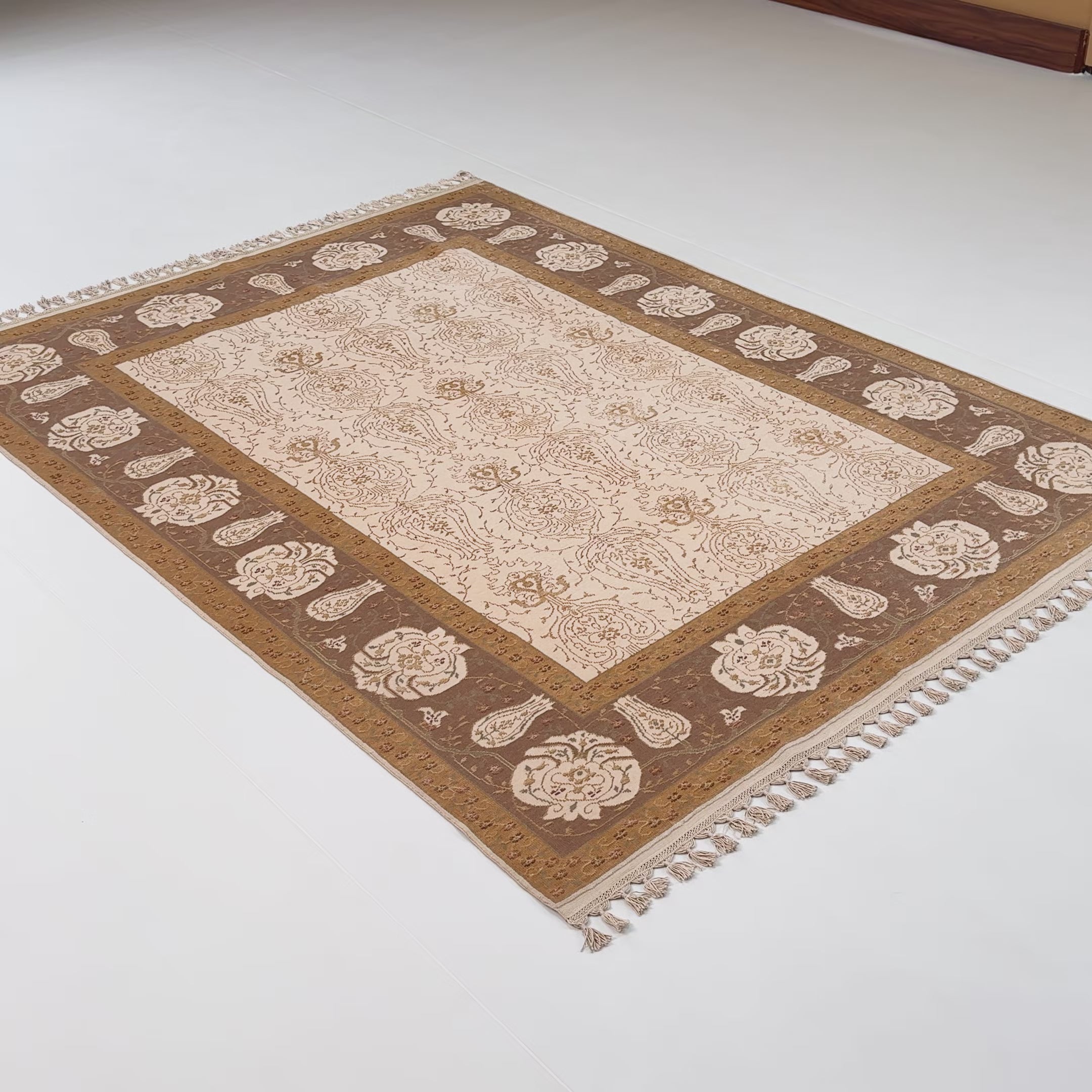 Hanzâde Series Handwoven Frame Patterned Cream Wool Rug