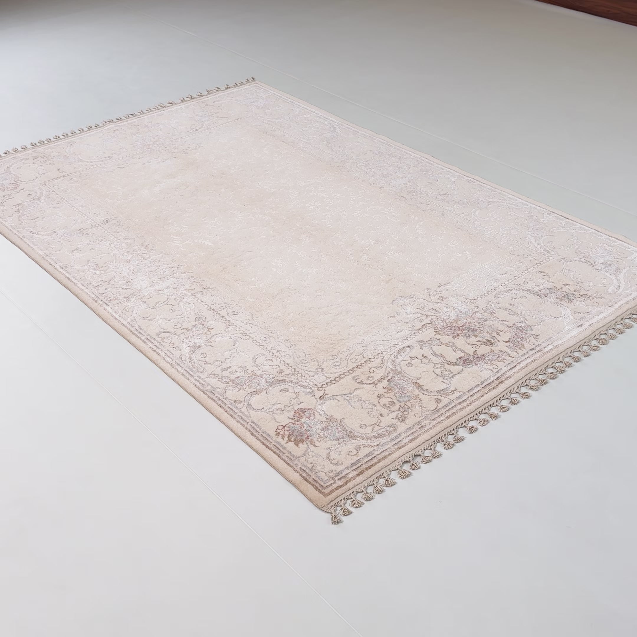 Hanzâde Series Handwoven Flower Pattern Cream Wool Rug