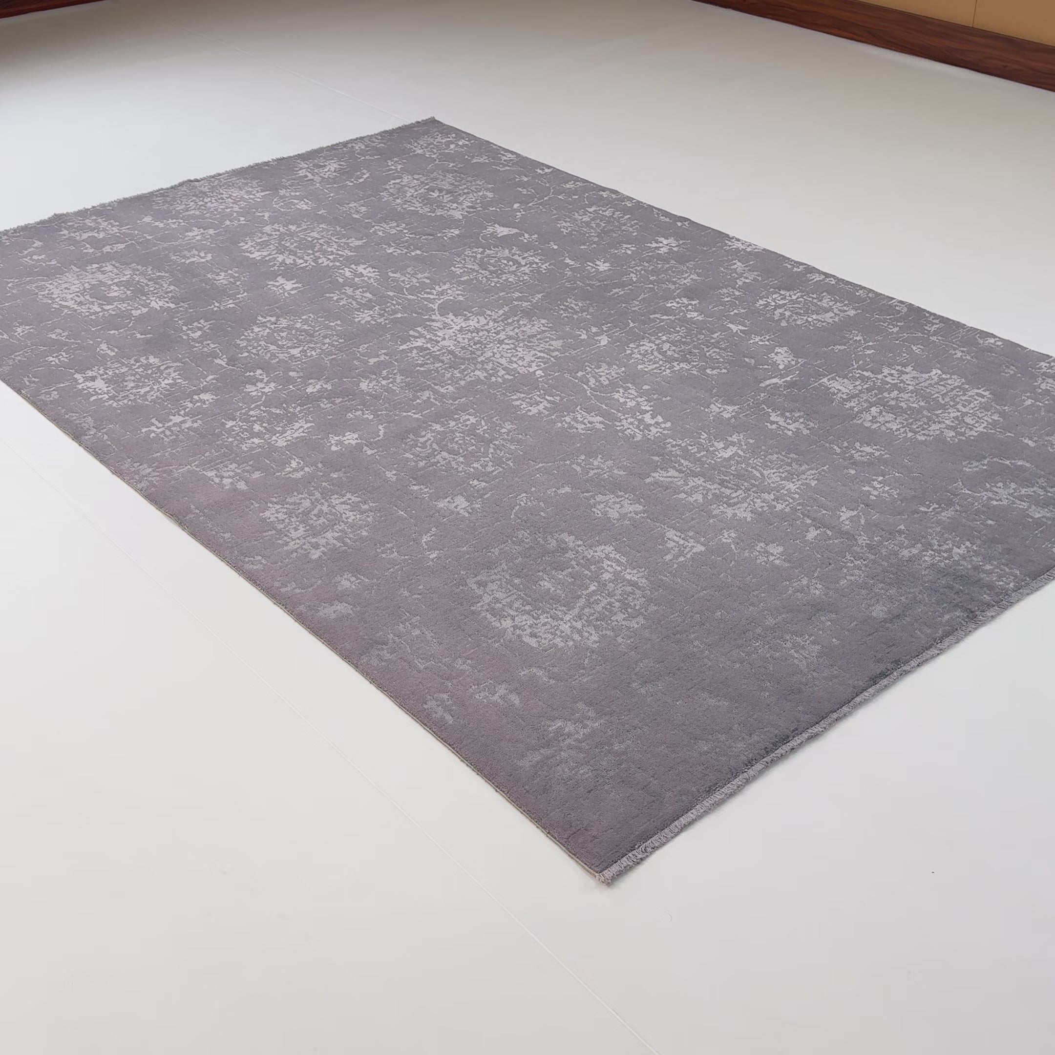 Heritage Series Vintage Patterned Gray Wool Loom Woven Rug