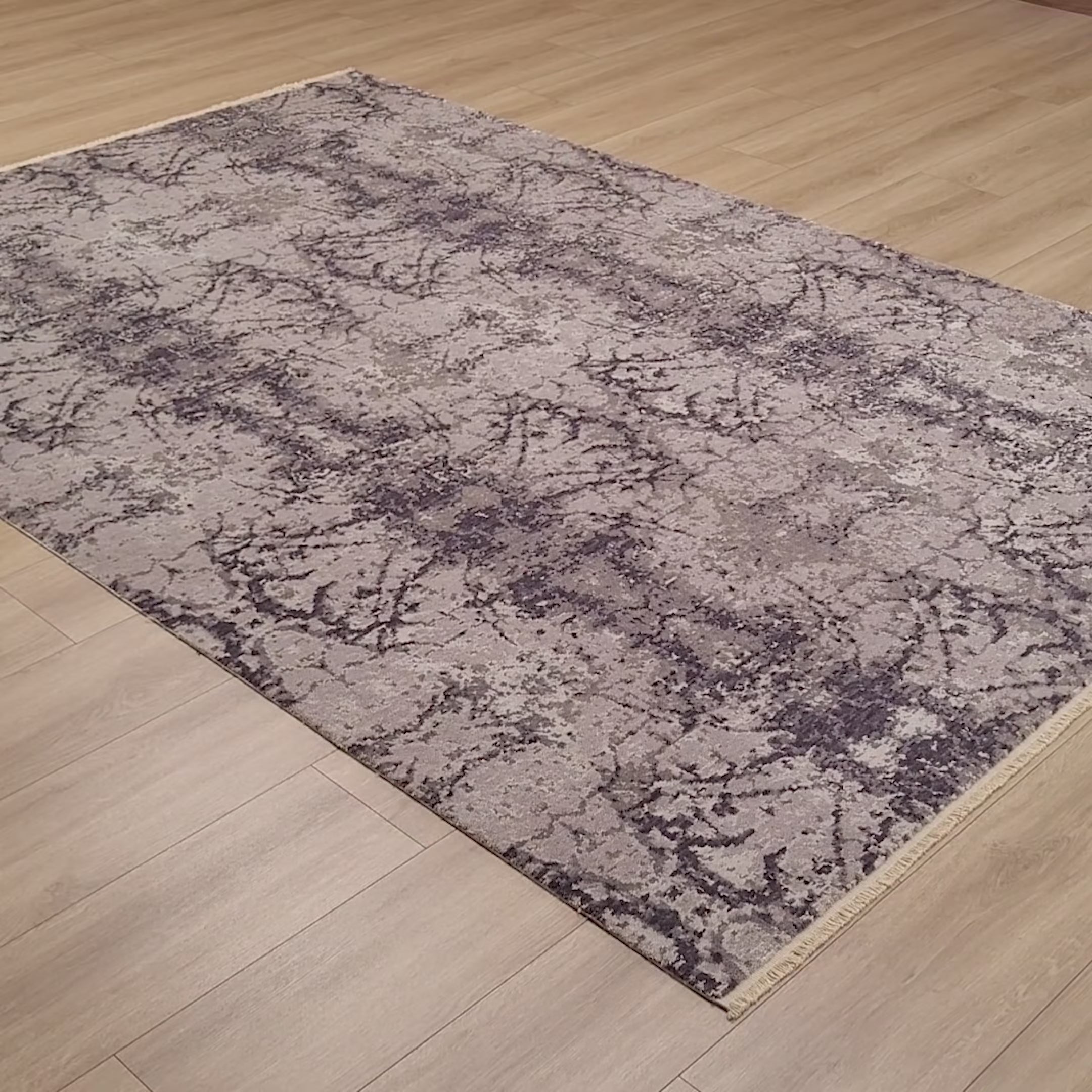 Machine Woven Abstract Patterned Gray Wool Carpet