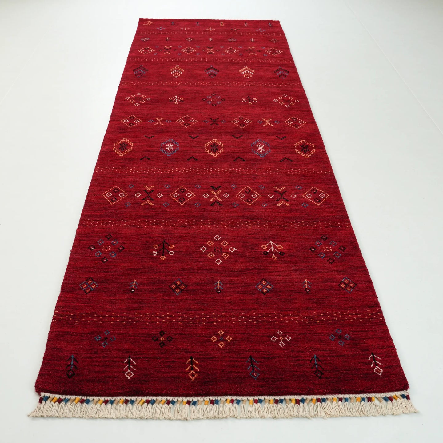 Urkum Series Authentic Patterned Red Wool Loom Woven Rug, belongs to one of the collections where Halıcızade’s sincere relationship with color, material, and motif transforms into a woven surface. Everything starts with the natural dyeing of wool yarn; then skilled hands arrange these yarns row by row, stitch by stitch, reconstructing Anatolia’s cultural memory. Gabbeh motifs are symbols of nomadic life, the rhythm of the earth, and the recurring cycles of nature. Its dense texture obtained by loom weaving technique offers an appearance almost identical to traditional hand rugs. Thanks to its thickness, it gives a familiar warmth when laid on the floor. This rug, specially designed for Halıcızade, appeals to those who want to emphasize simple elegance in their homes.