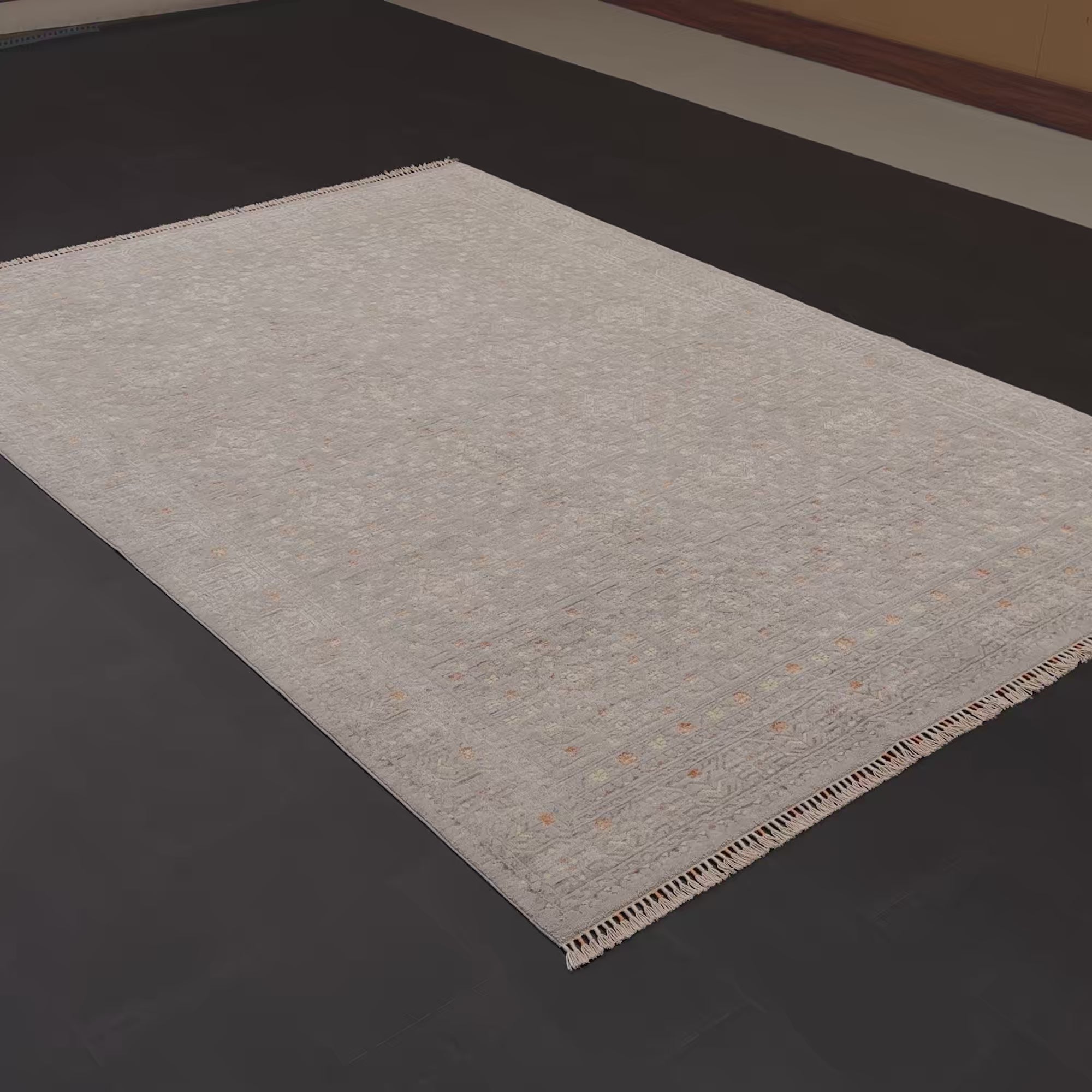Zade Serisi Afgan Desenli Gri Tezgah Dokuma Doğal Halı