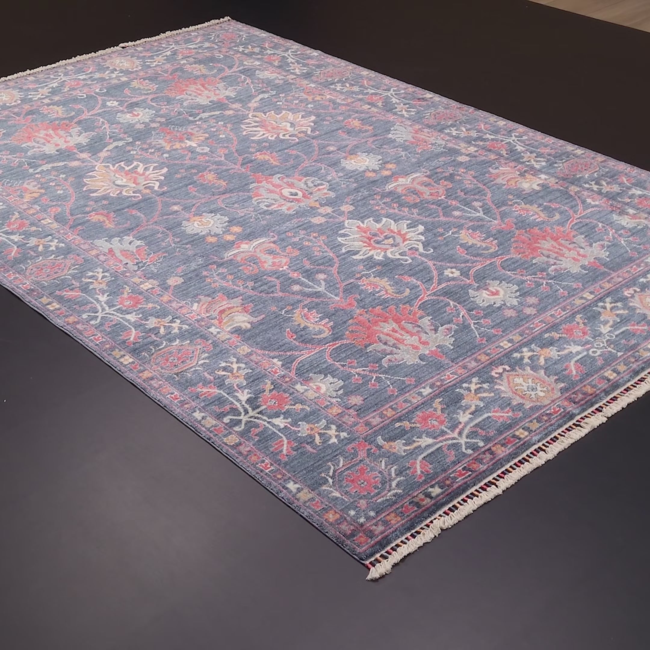 Zade Series Uşak Patterned Navy Blue Special Loom Woven Natural Carpet