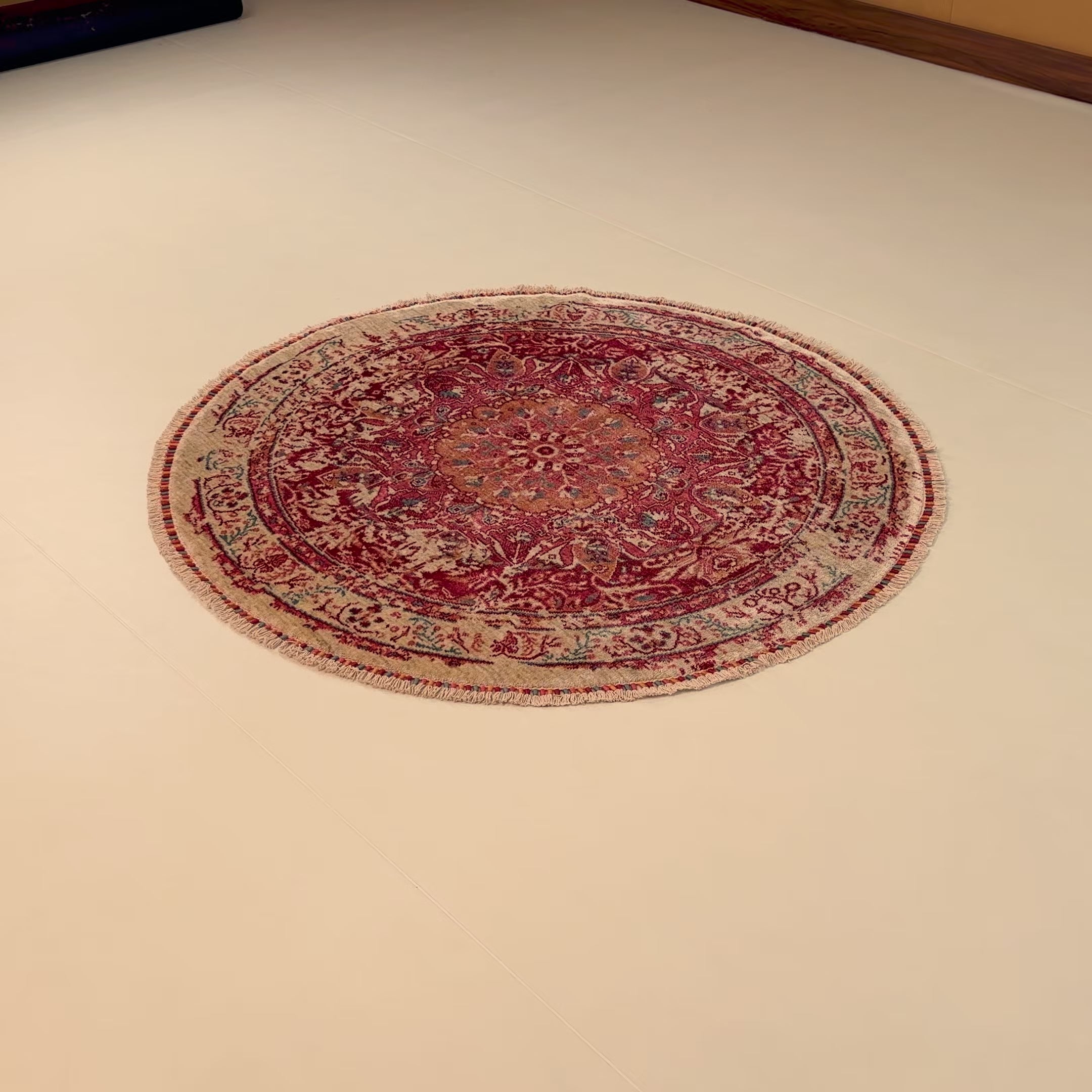 Zade Series Vintage Patterned Round Red Loom Woven Rug