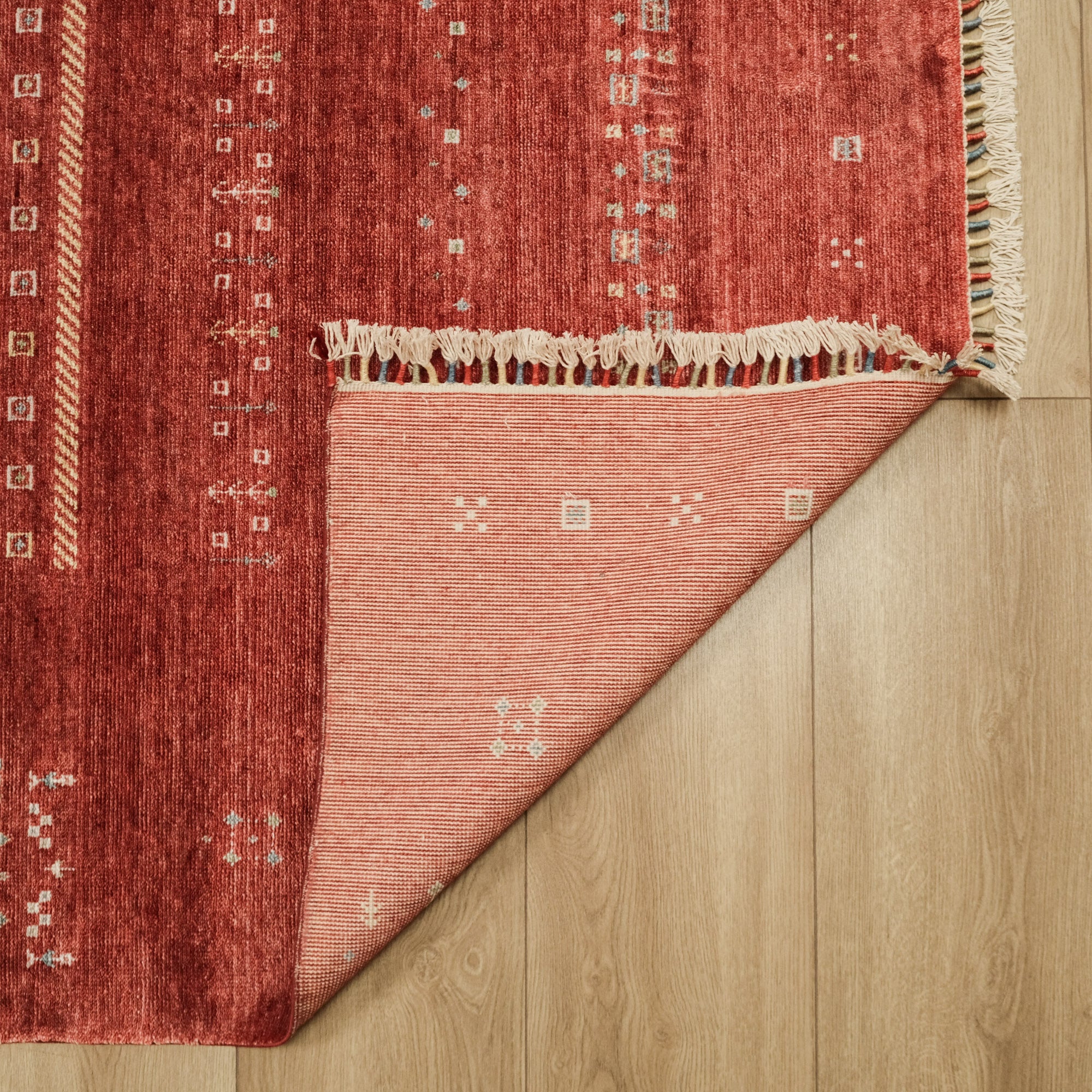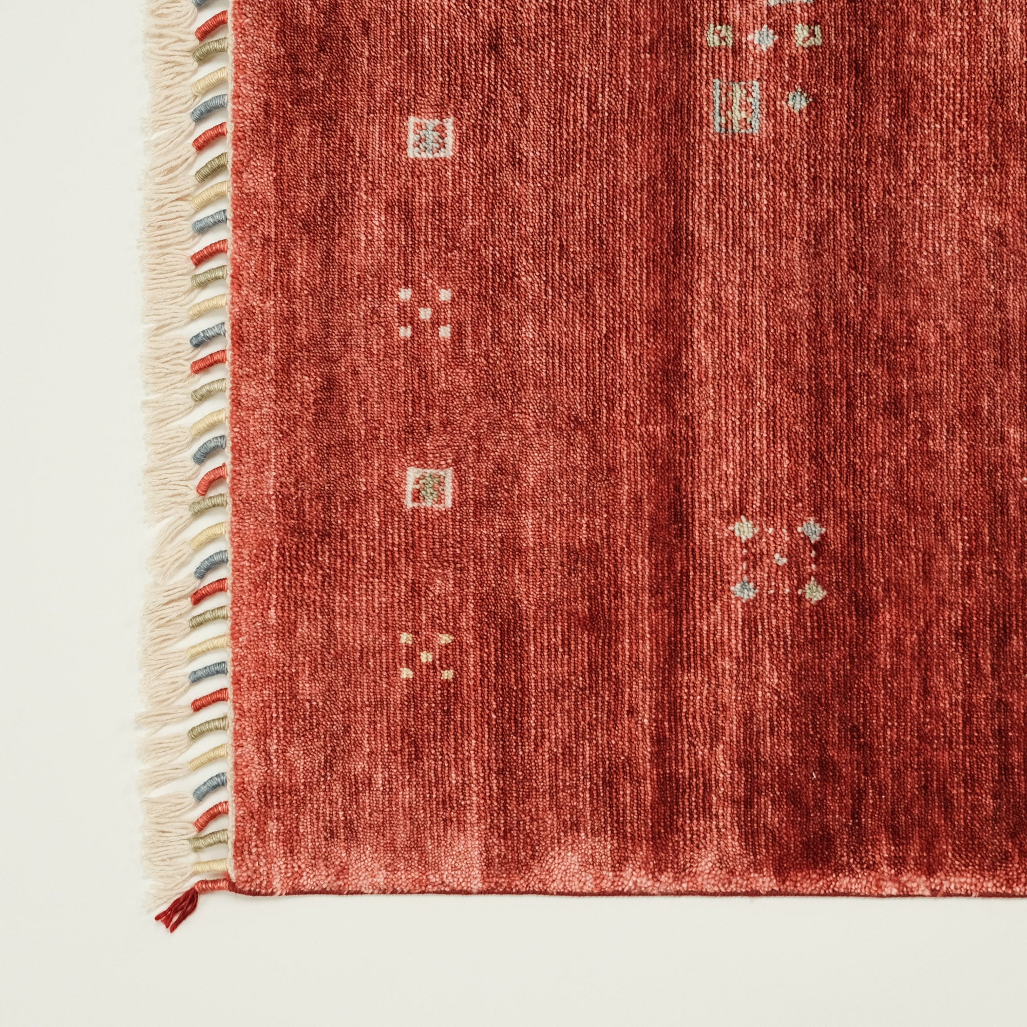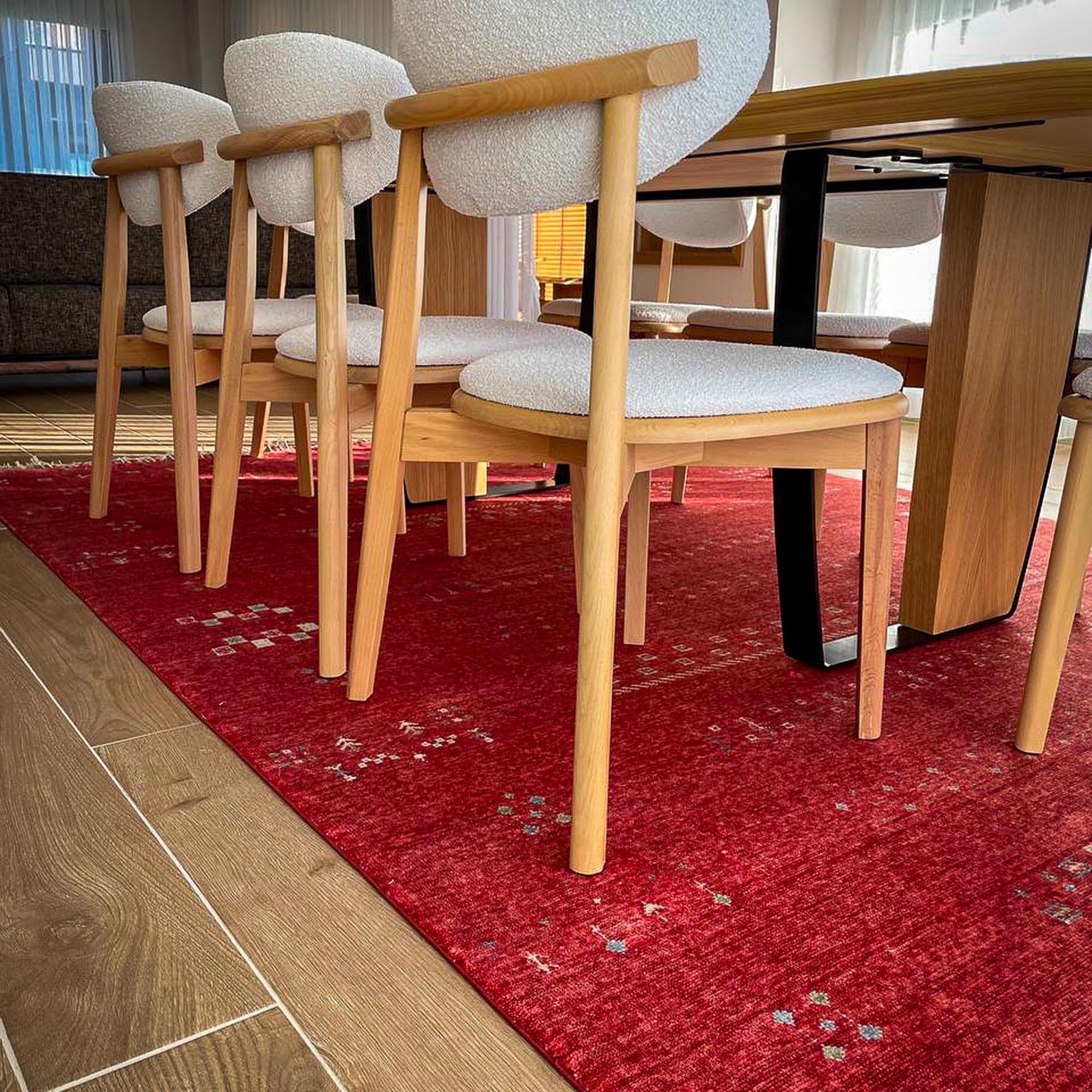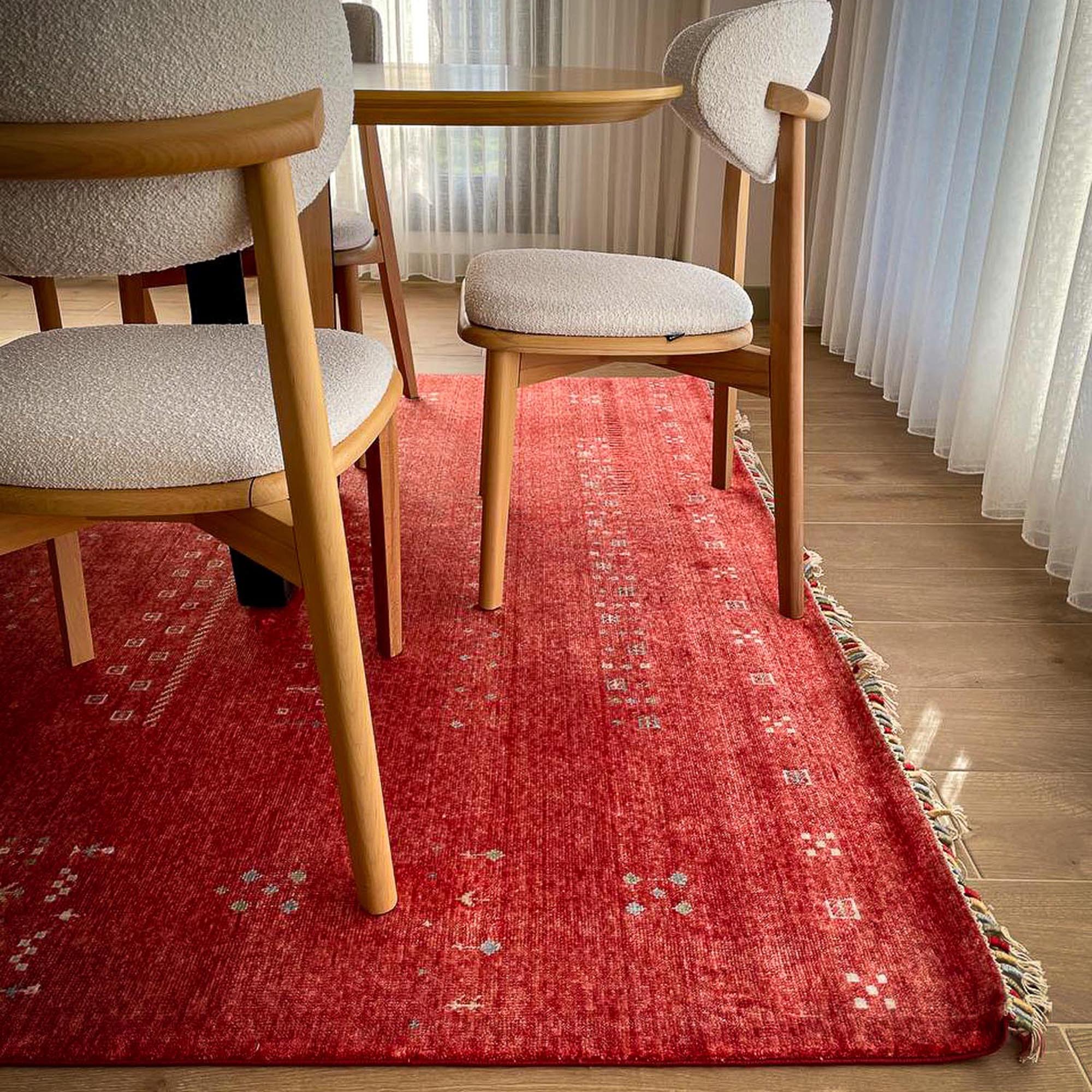 Zara Series Authentic Patterned Loom Woven Rug brings the millennia-old weaving heritage of Anatolia to modern spaces with the warm soft tones of red. The design, brought to life through a masterful weaving process on traditional looms in the Uşak region, offers both an aesthetic and functional choice. Alongside its modern, minimal, and authentic design, the natural texture of cotton and Tencel yarns brings comfort and elegance to living spaces. The rug produced on looms in Uşak, where intensive female labor is carefully applied, stands out with both its eye-catching appearance and soft texture. The combination of elegant motifs and a simple background creates a balanced and timeless atmosphere.
