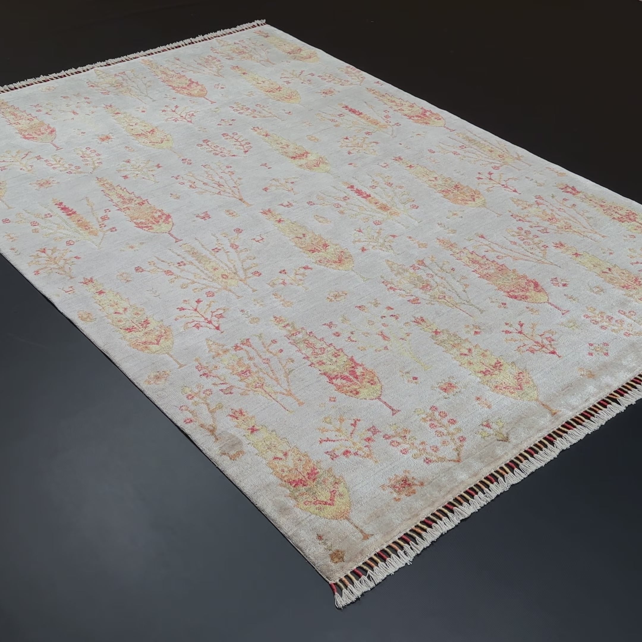 Zara Series Authentic Patterned Cream Bamboo Carpet