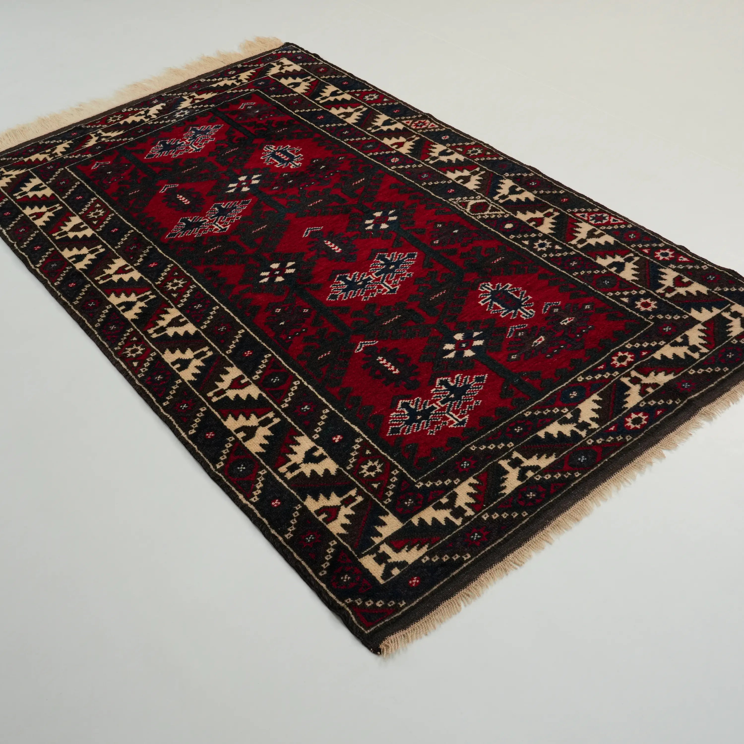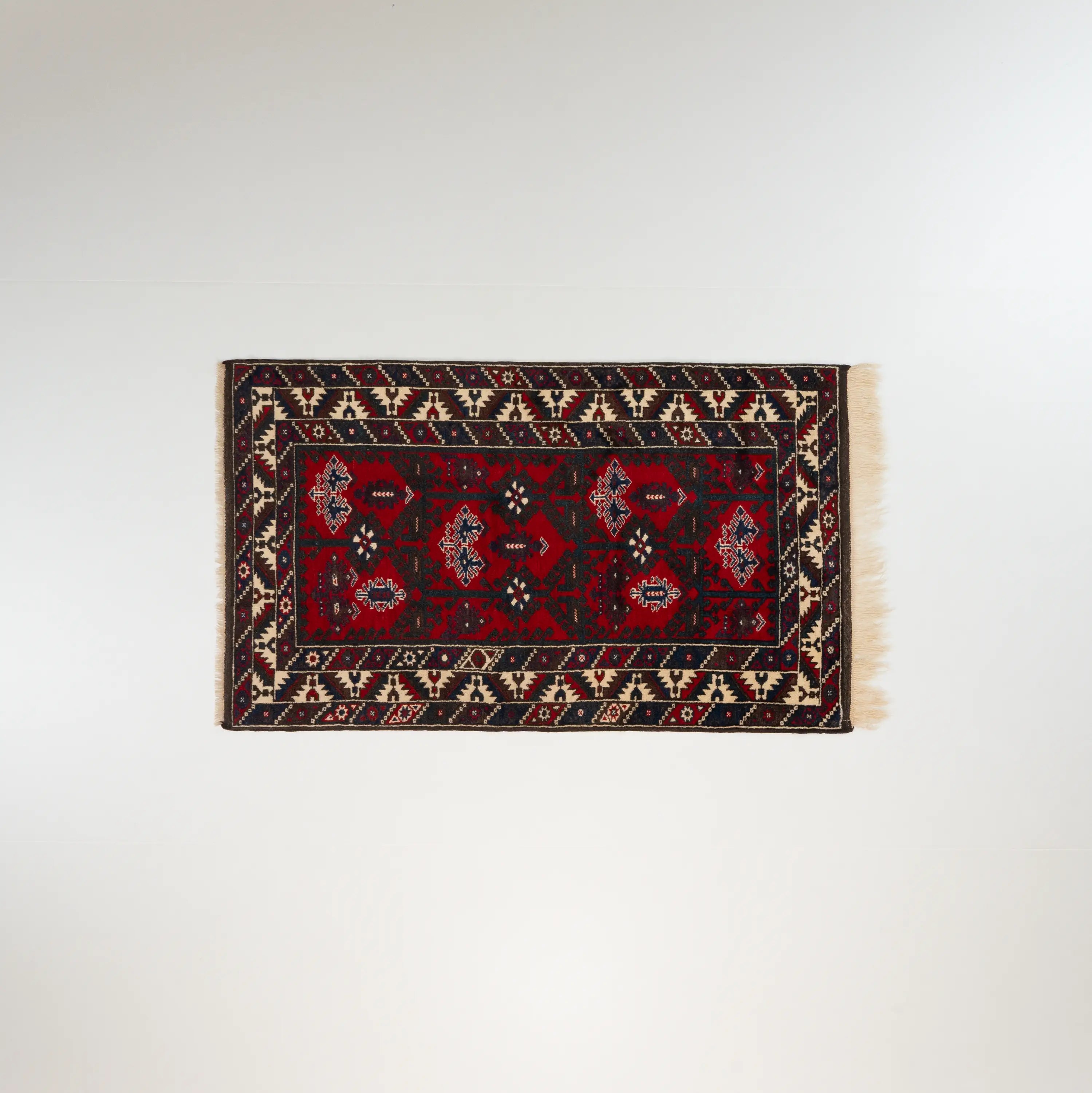 Anadolu Desenli Kırmızı Döşemealtı Köy Dokuma Sandık Eskisi Kirmen Halı