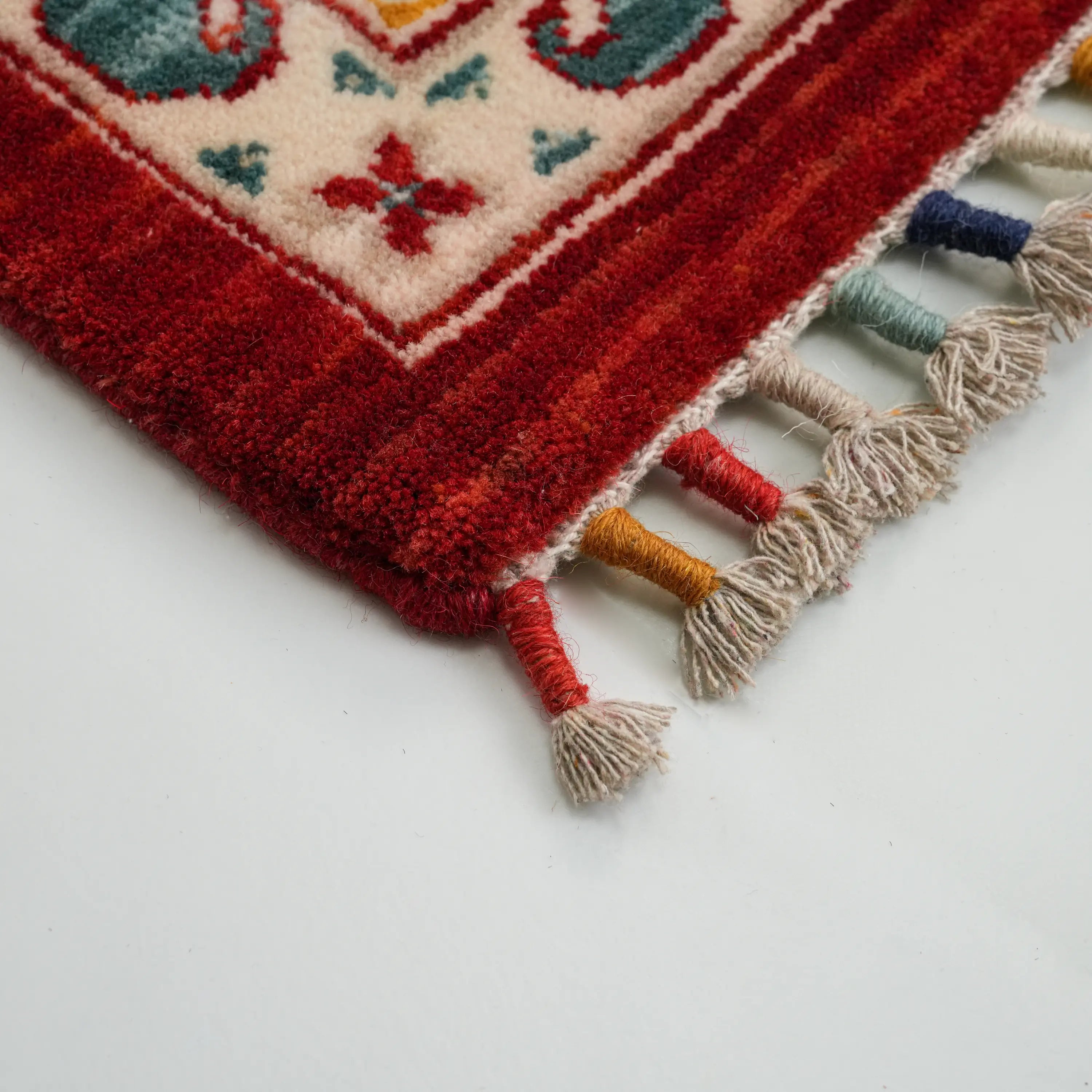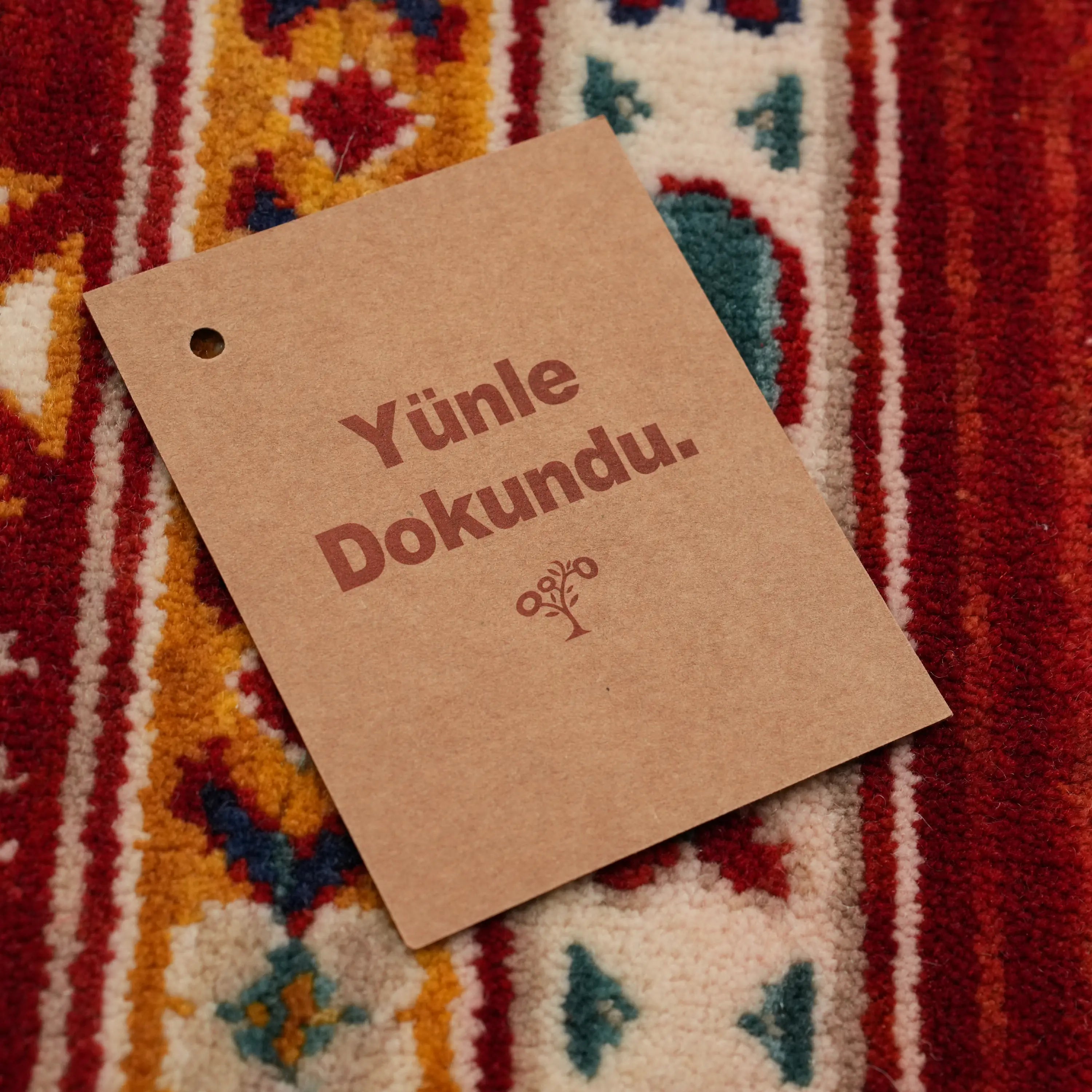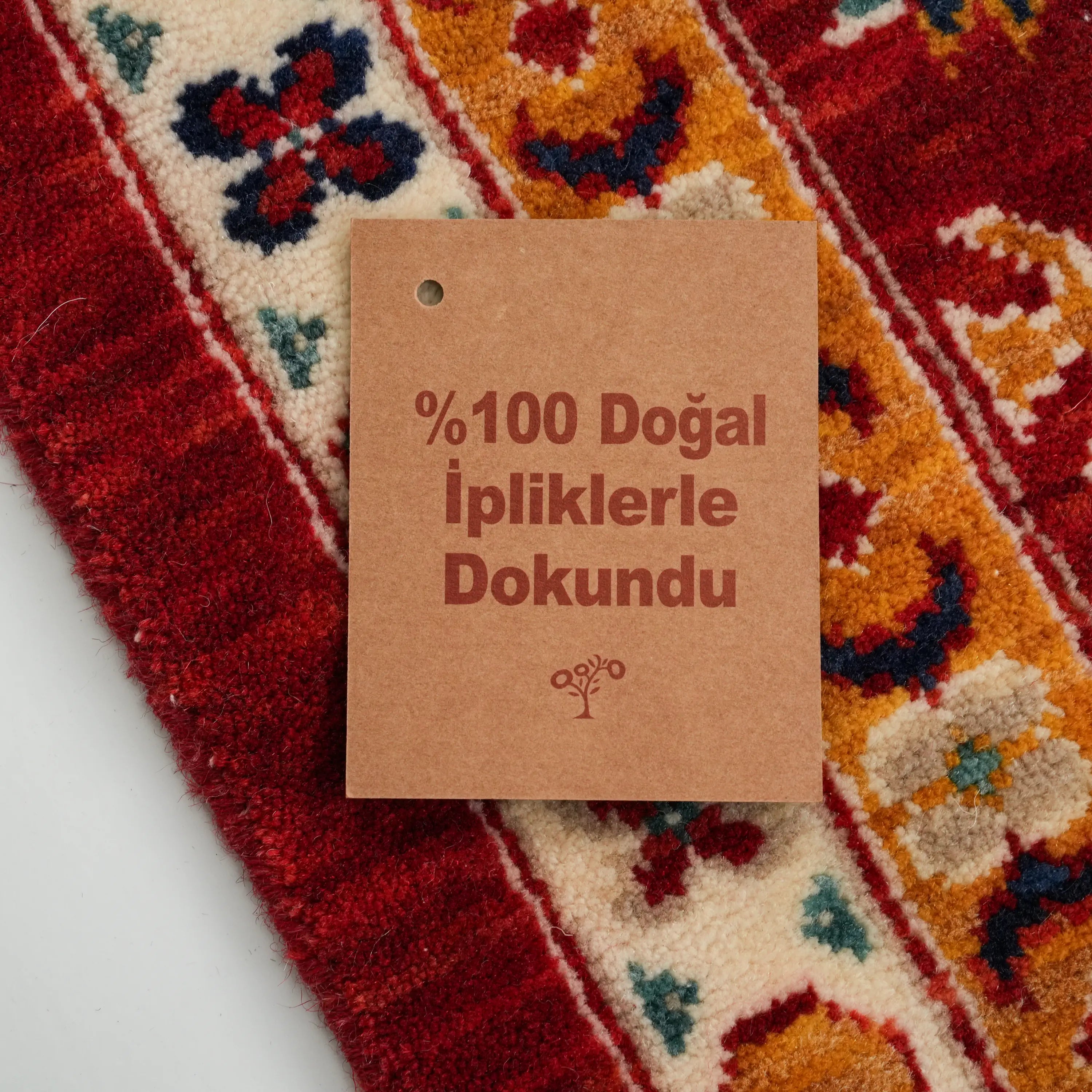 Anadolu Desenli Kırmızı Yün Tezgah Dokuma Halı