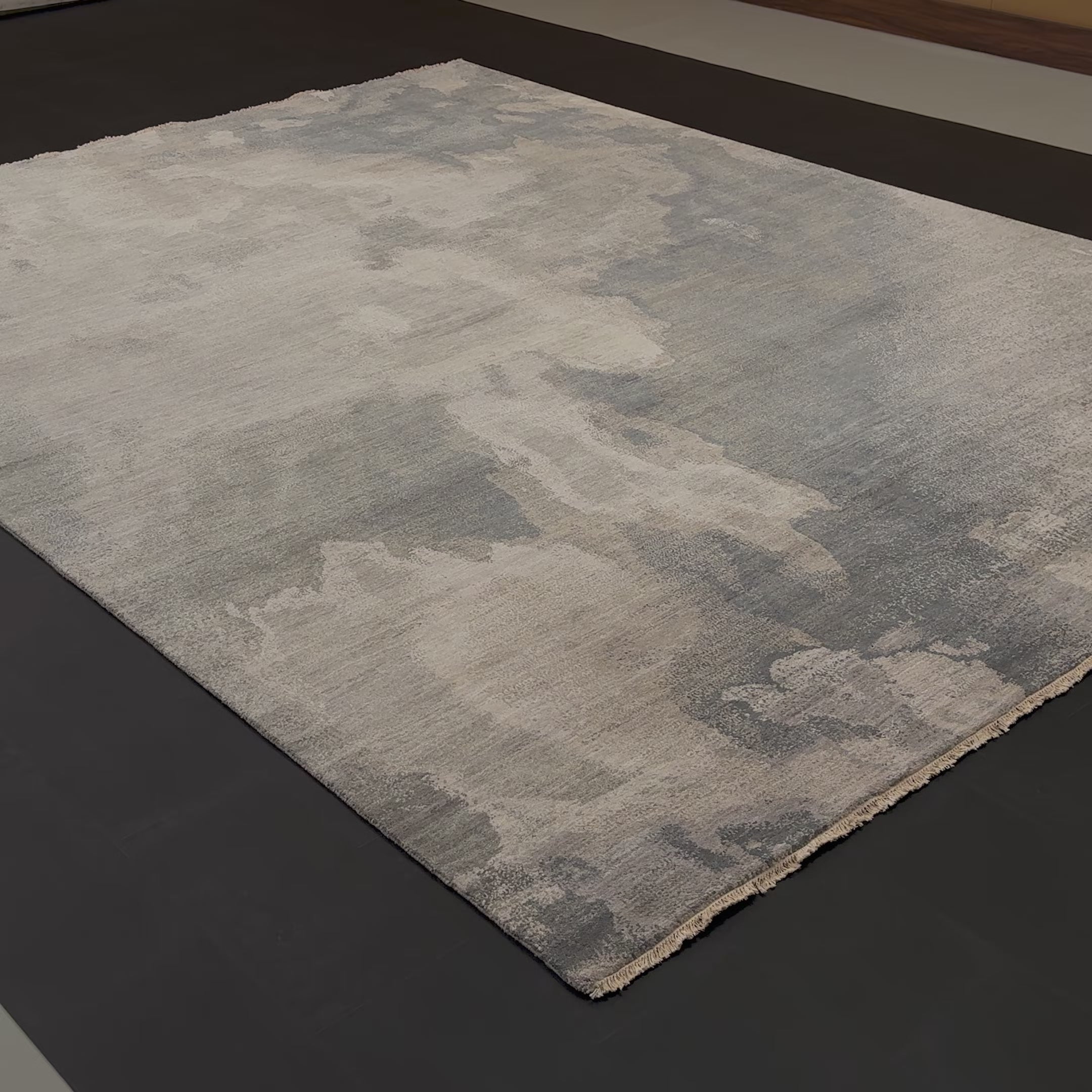 Aren Serisi El Dokuma Soyut Desenli Yün Gri Halı