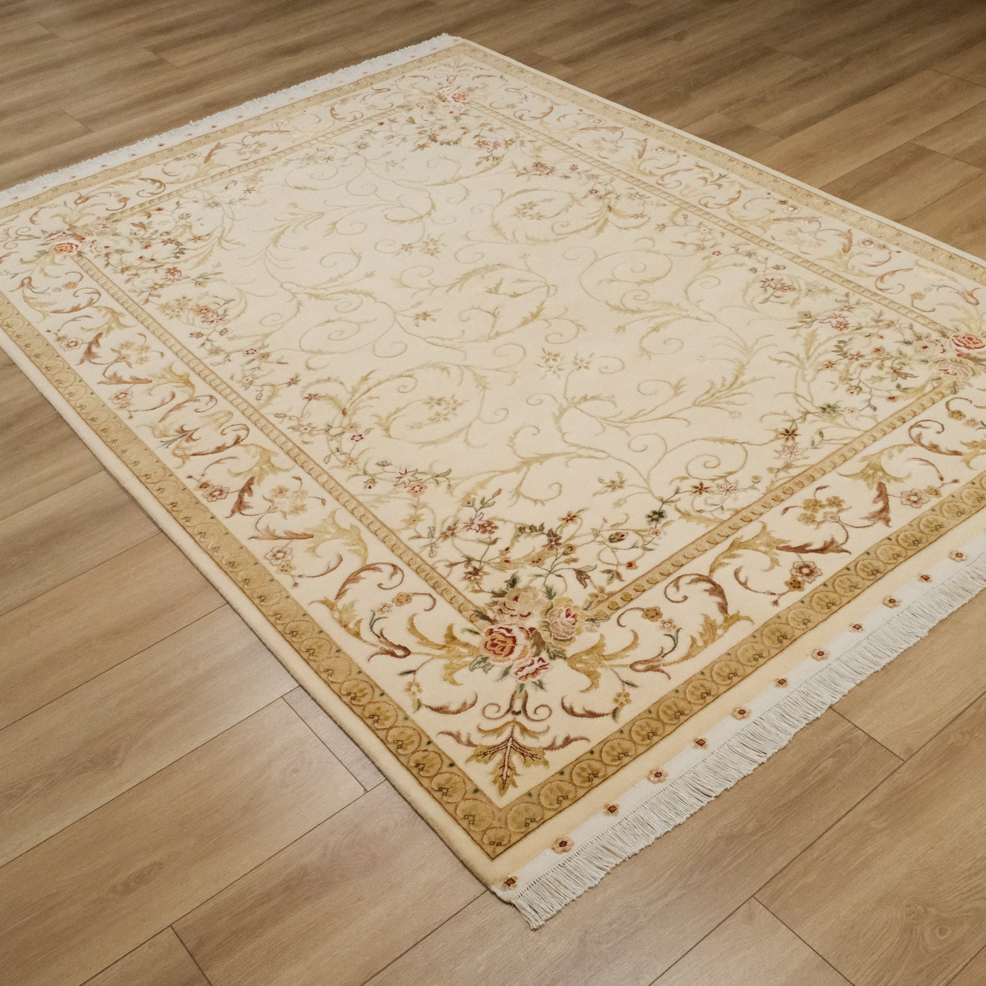Sultanahmet Serisi El Dokuma Çiçek Desenli Krem Halı