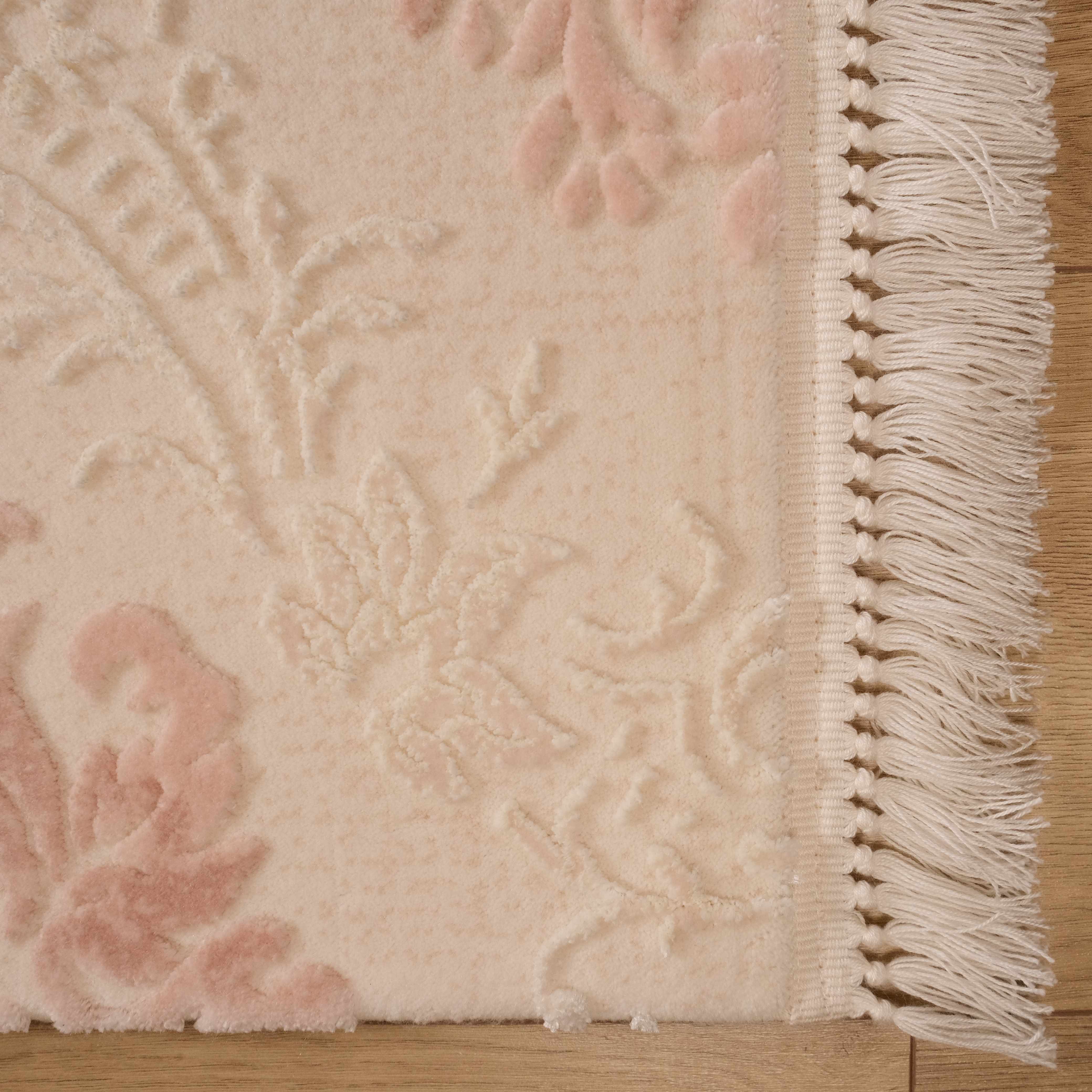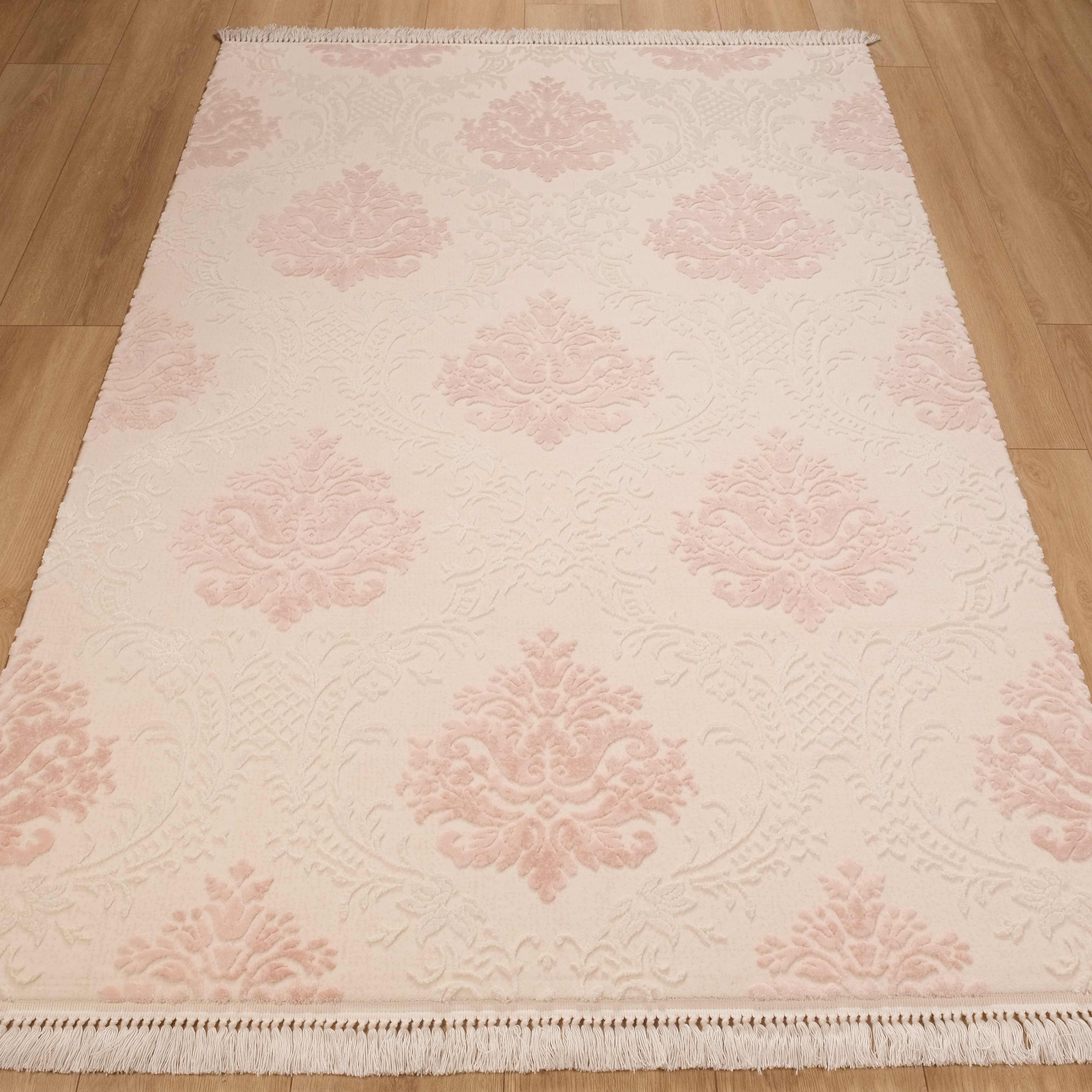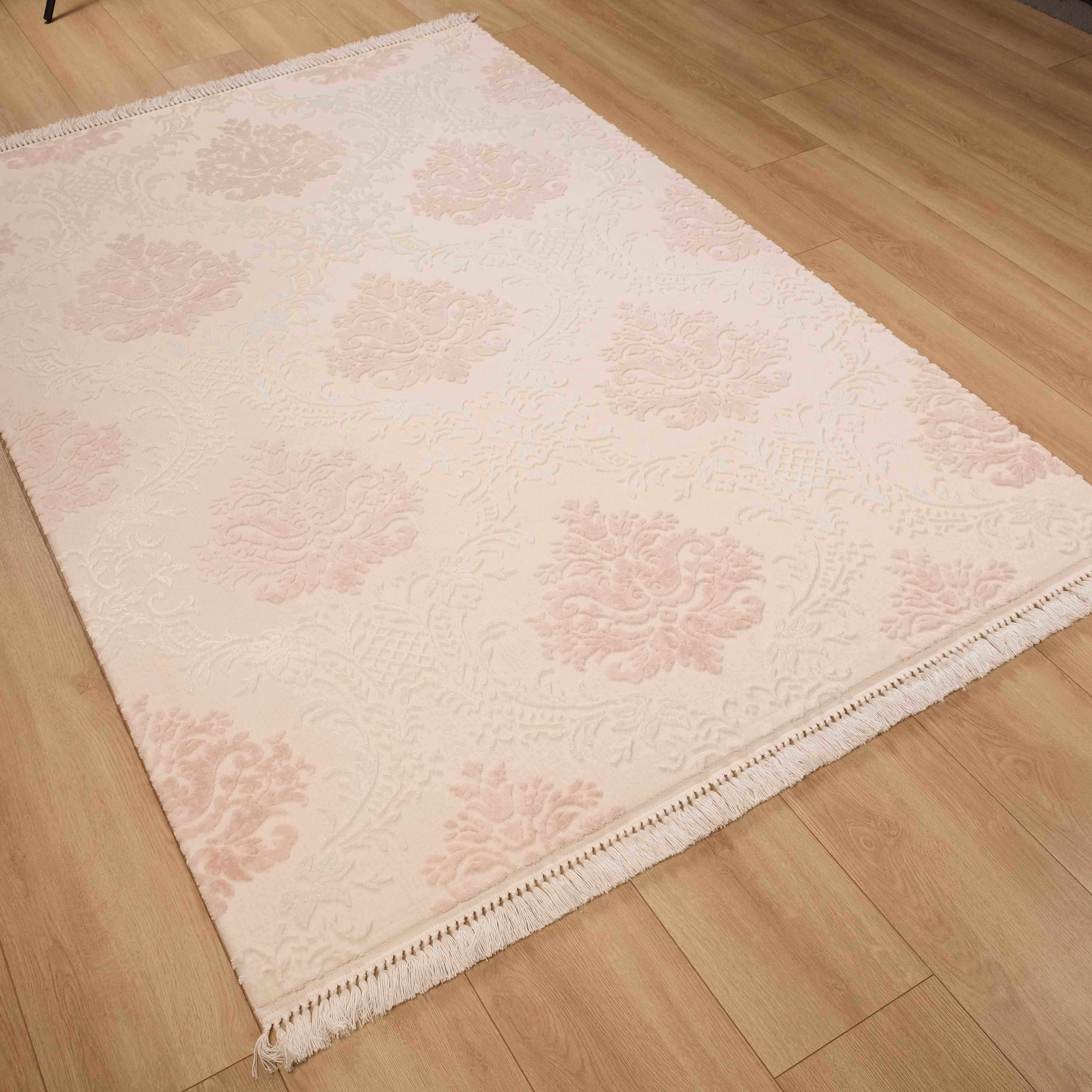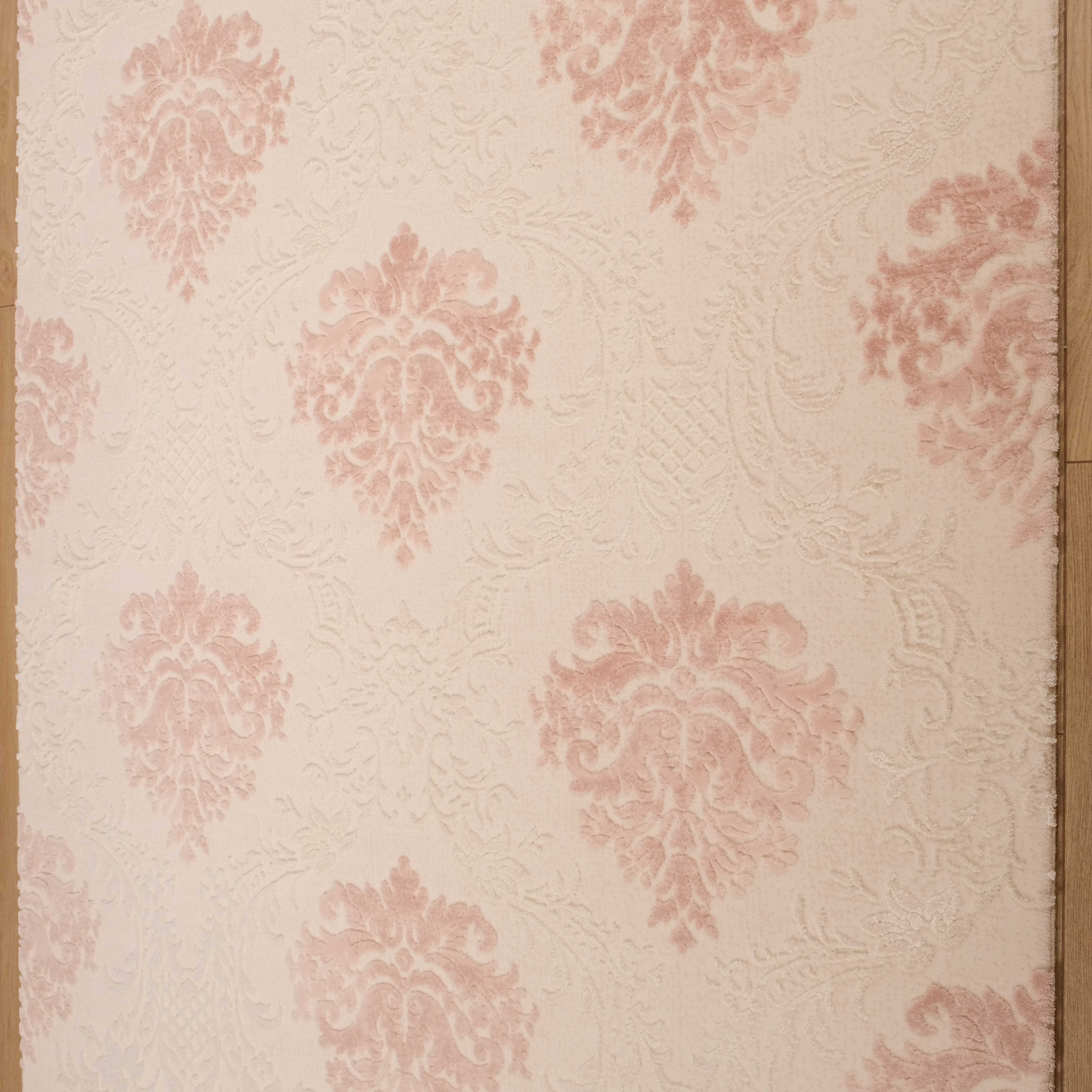 Krem Pembe Damask Tasarım Akrilik Makine Dokuma Halı