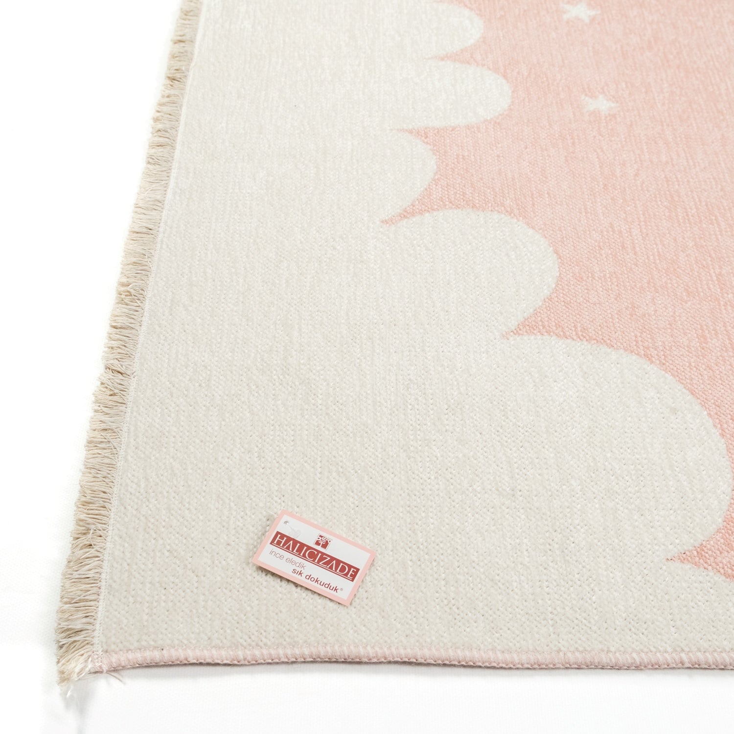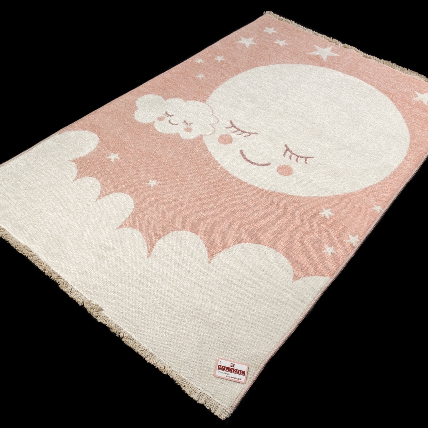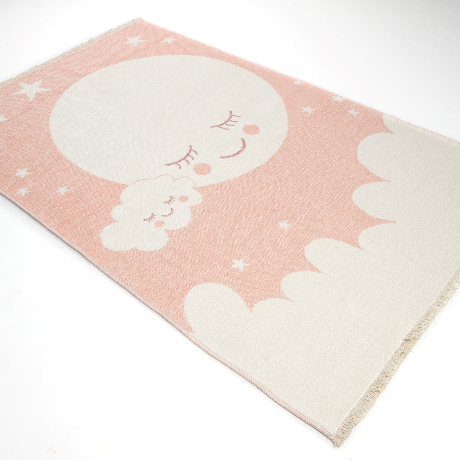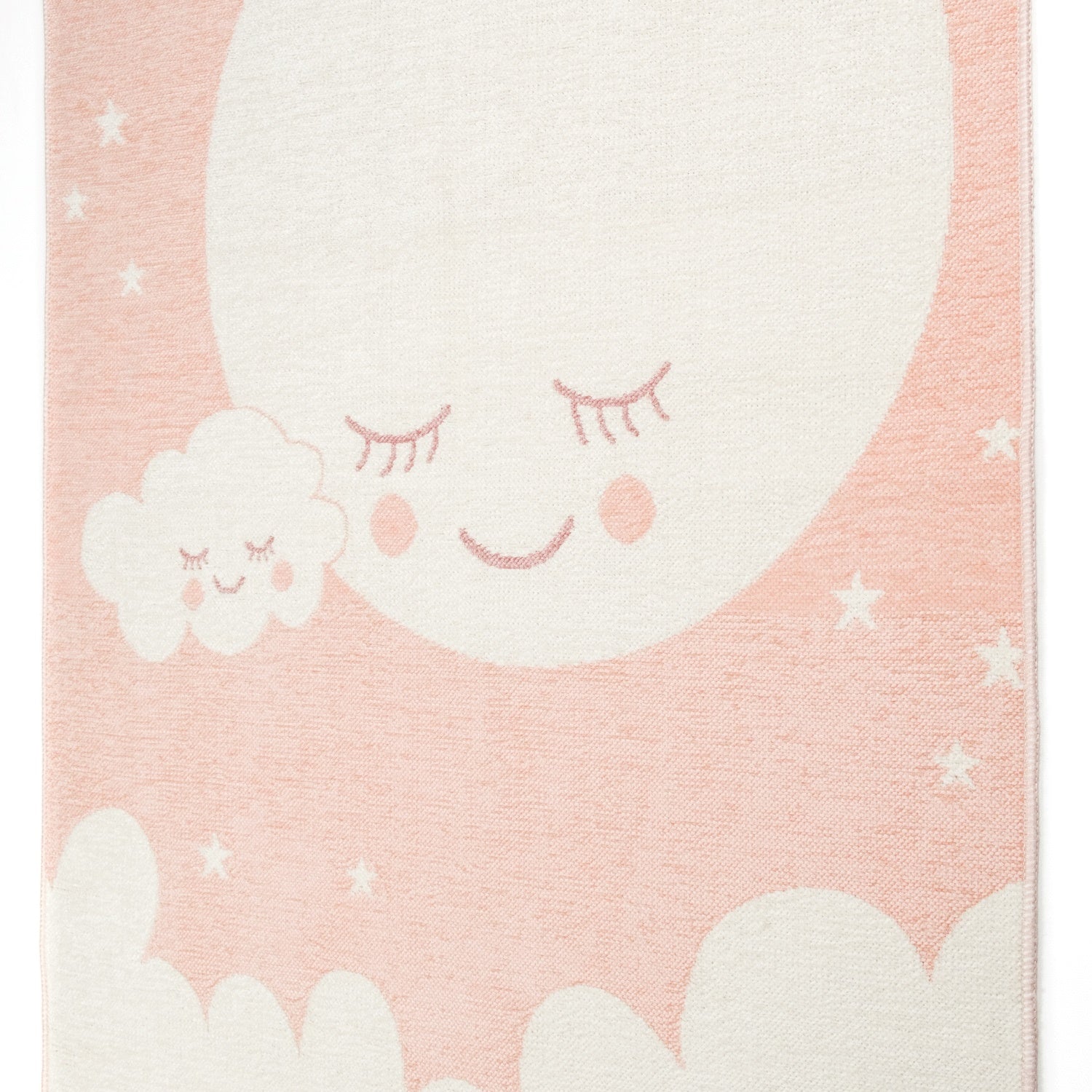 Noa Baby Serisi Dolunay Desenli Pembe Beyaz Bebek ve Çocuk Odası Halısı