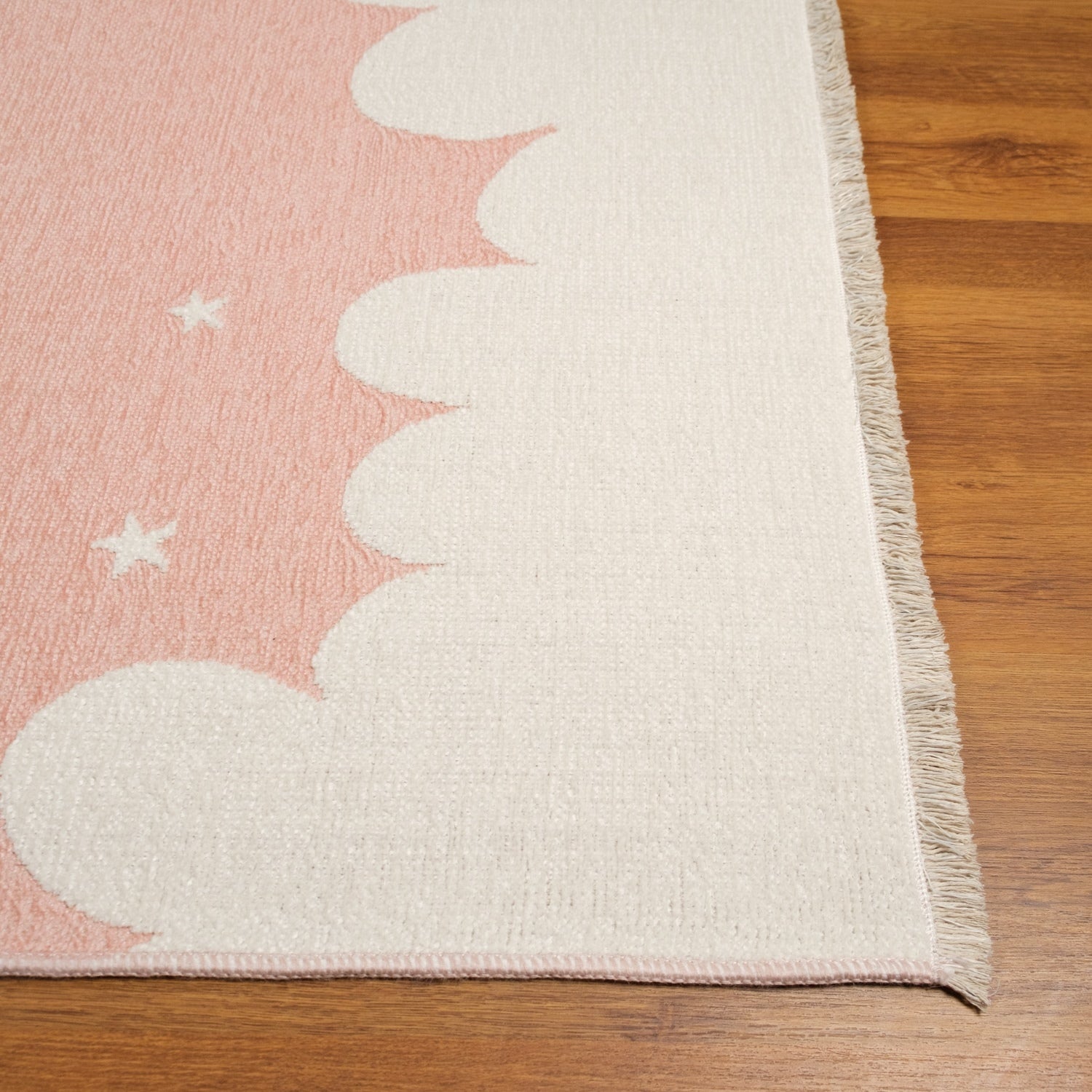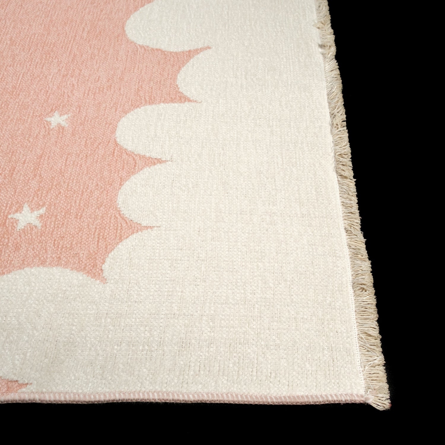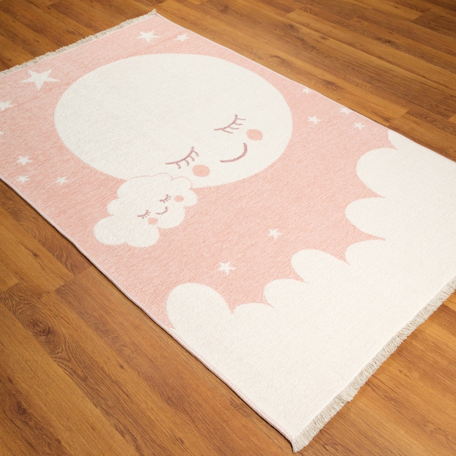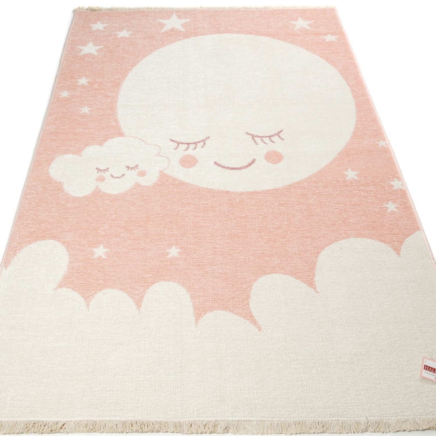 Noa Baby Serisi Dolunay Desenli Pembe Beyaz Bebek ve Çocuk Odası Halısı