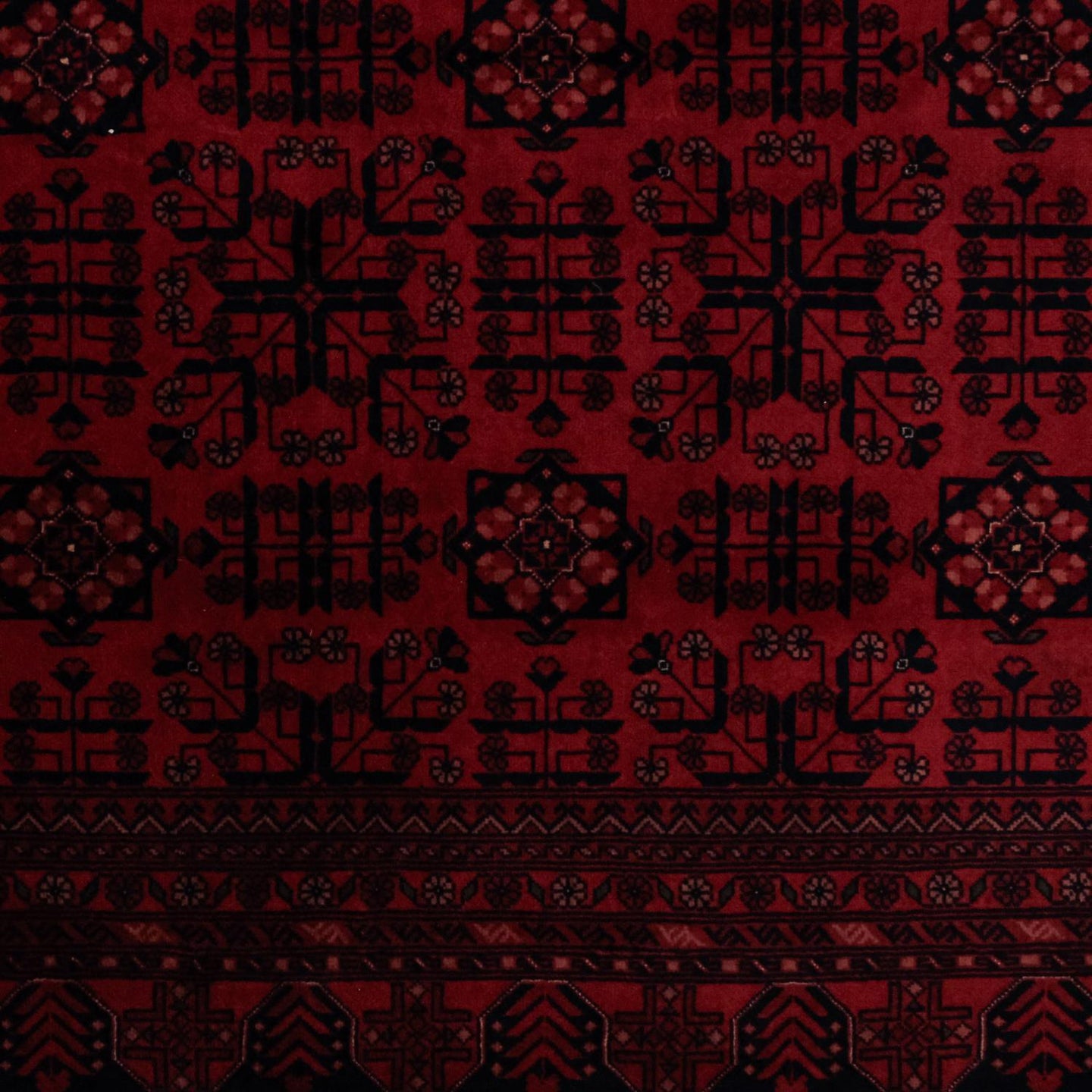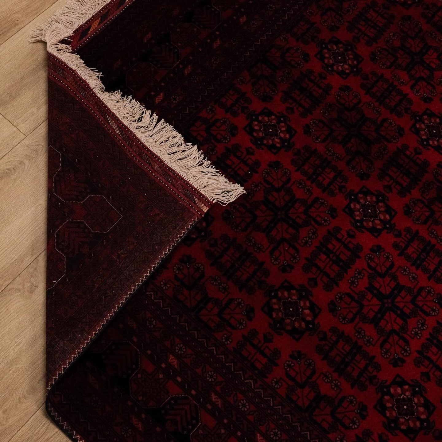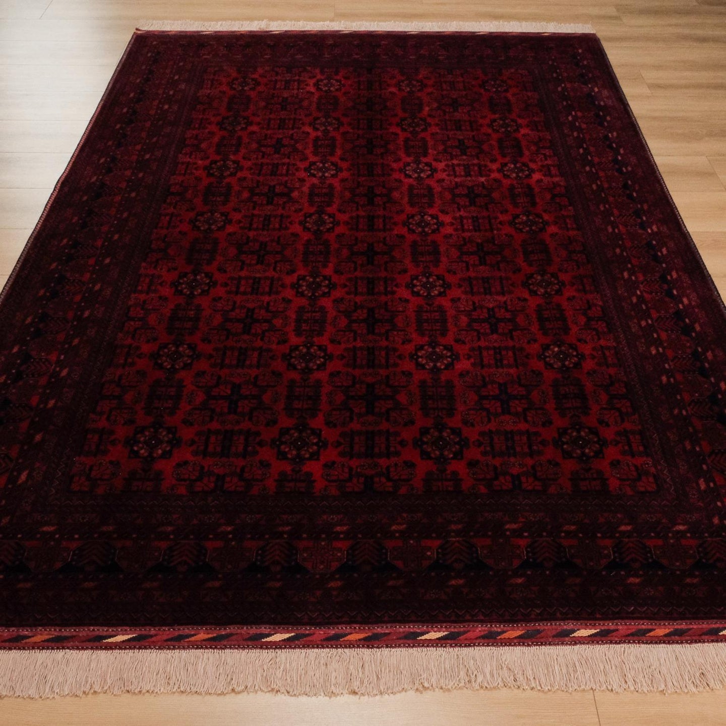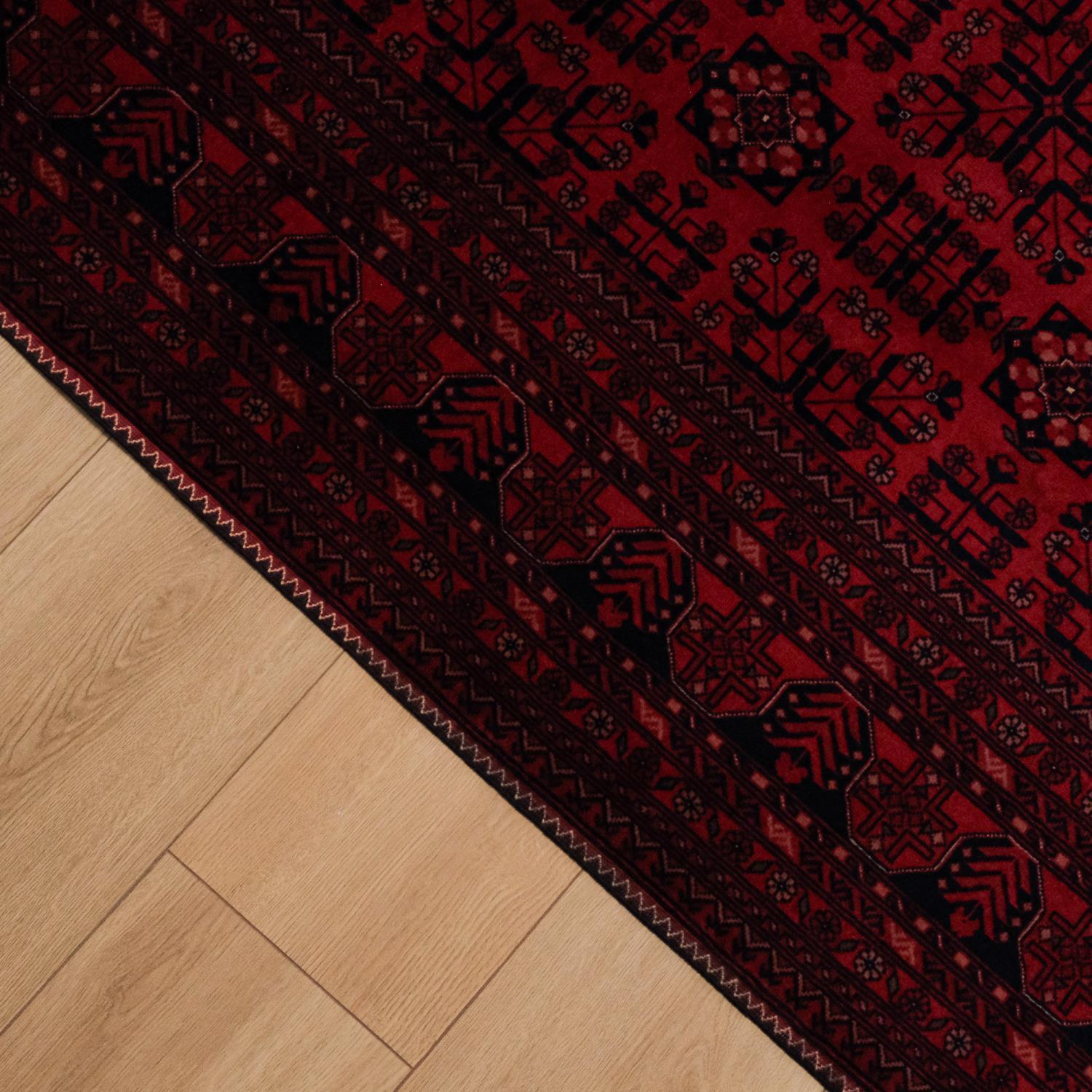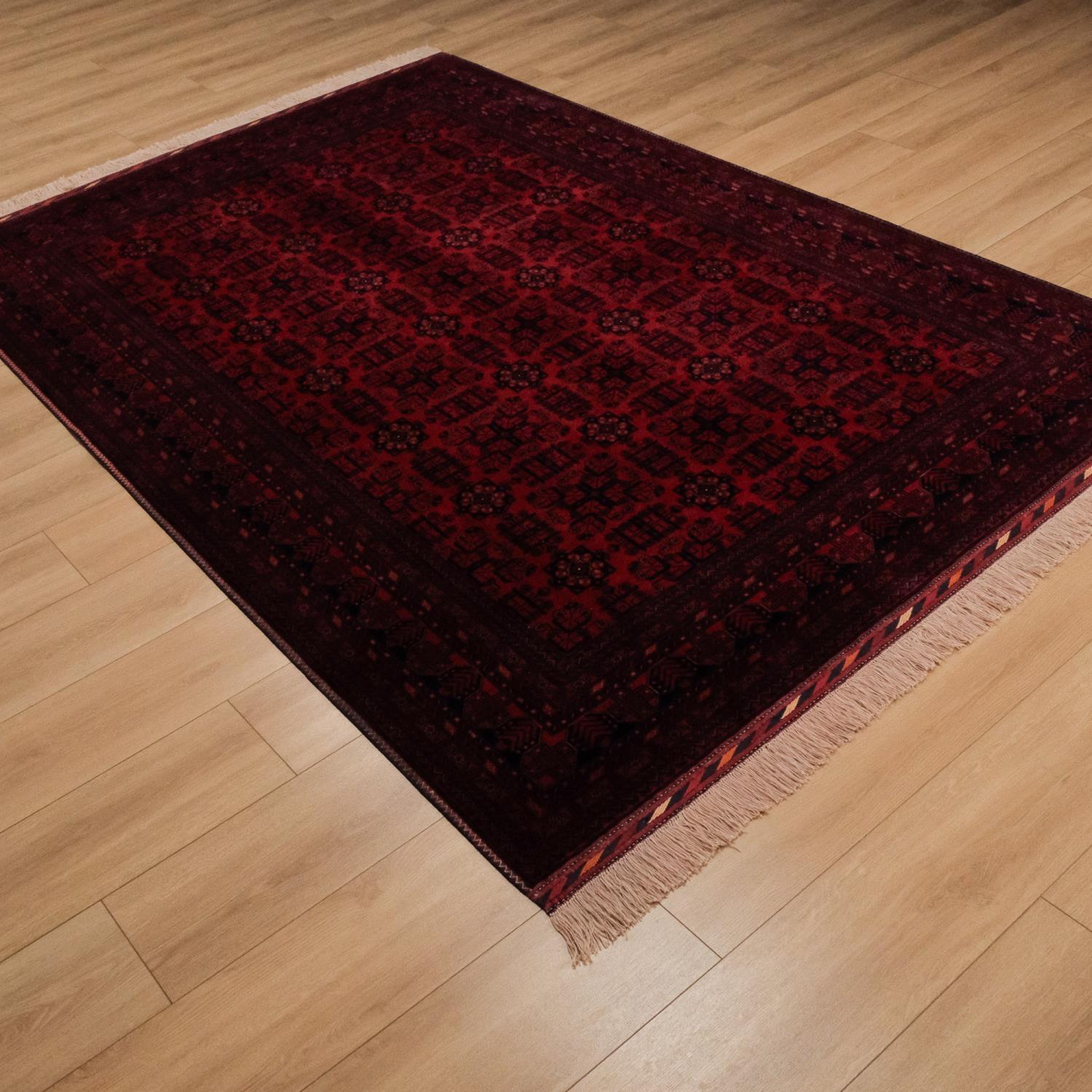 El Dokuma Afgan Desenli Yün Bordo Bilicik Halı