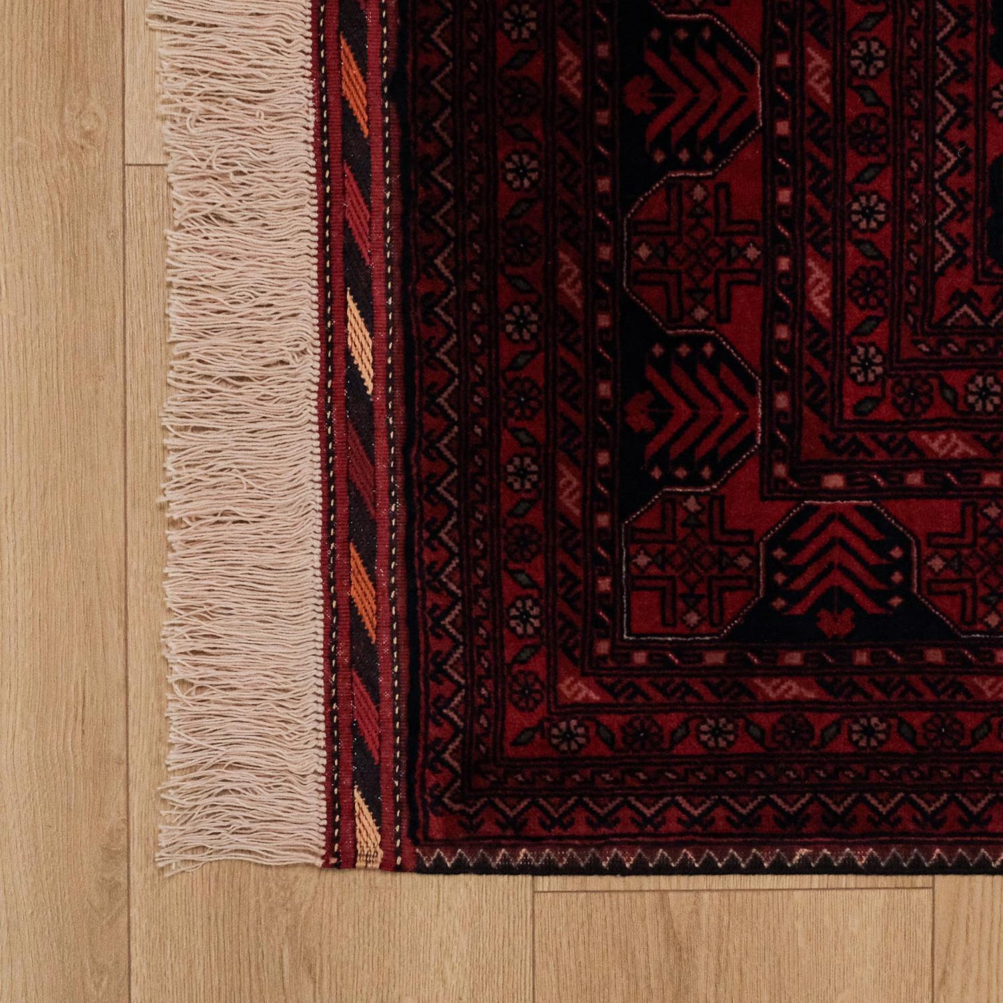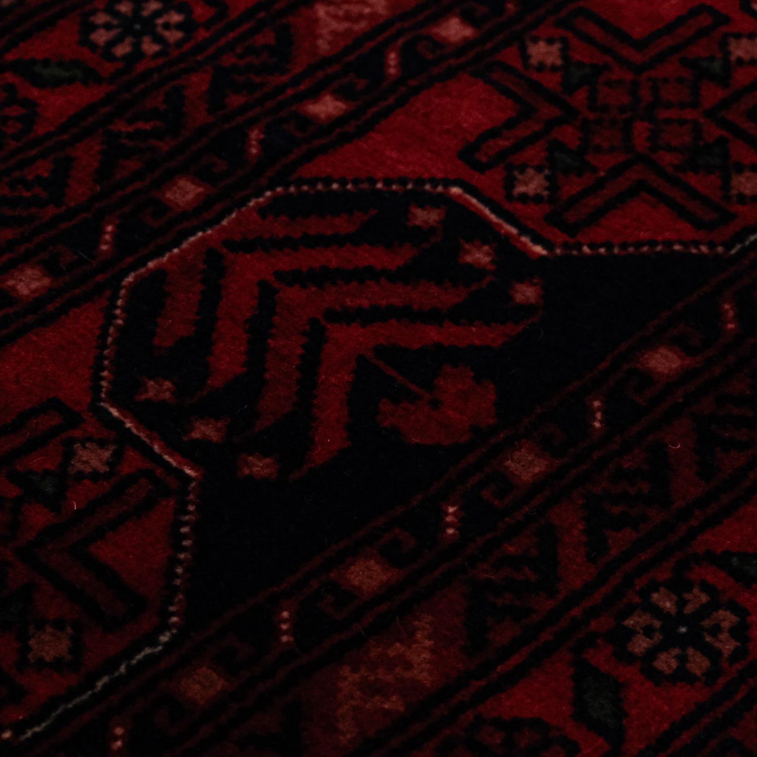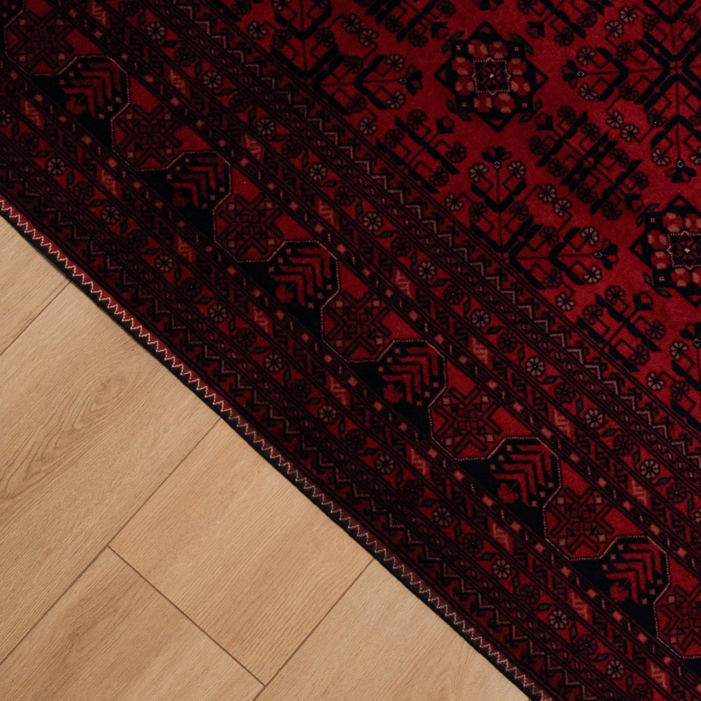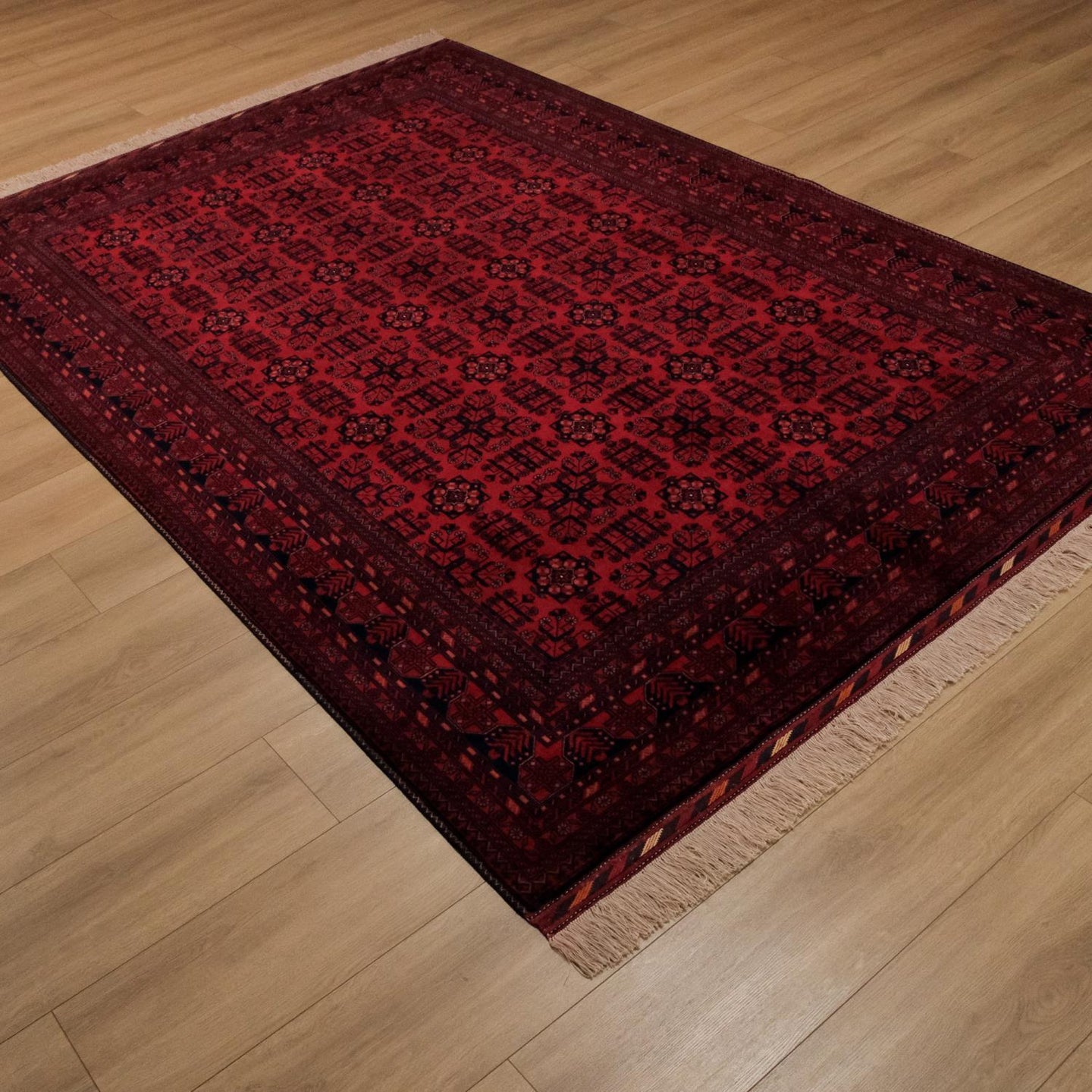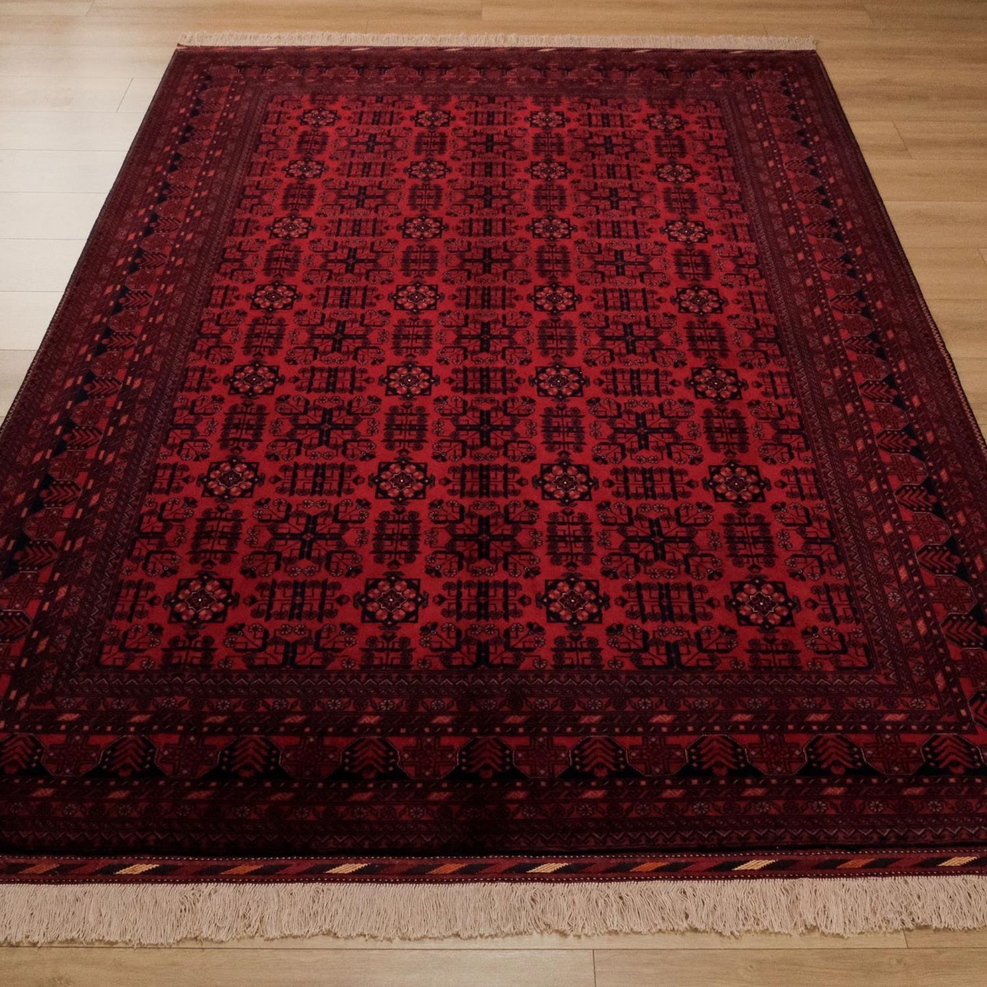El Dokuma Afgan Desenli Yün Bordo Bilicik Halı