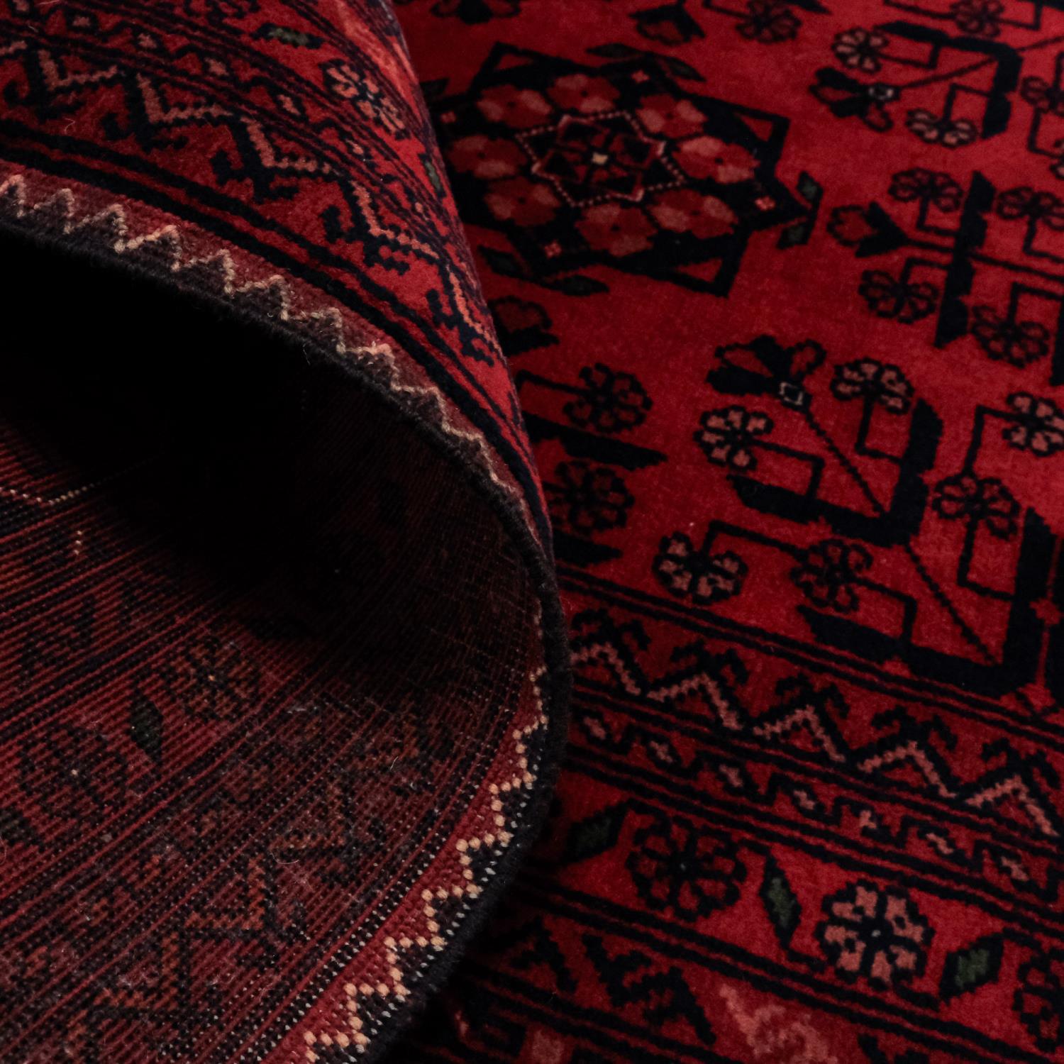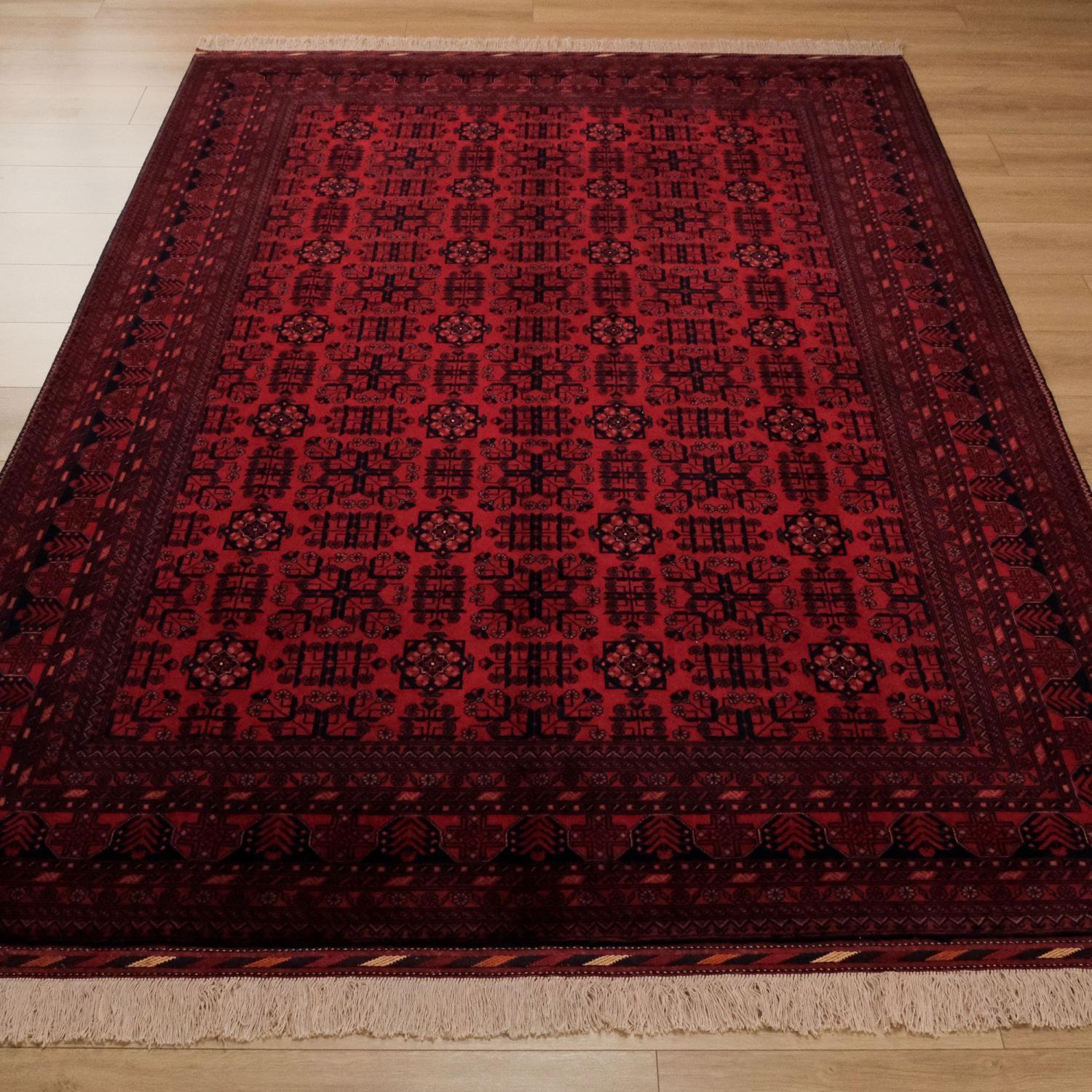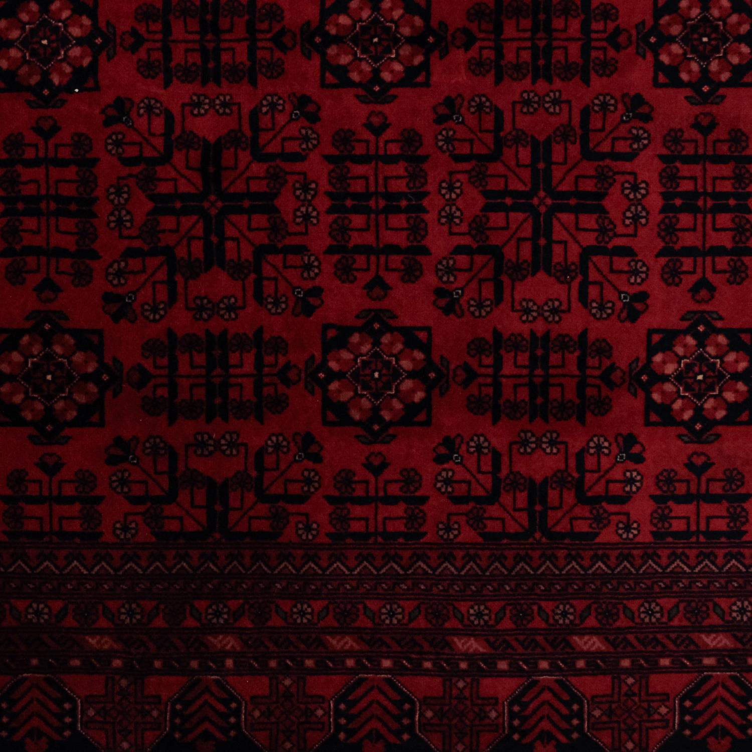 - Afganistan'ın Türkmen ve Afgan ustaları tarafından elde dokunmuştur ve yüksek düğüm sıklığına sahiptir.