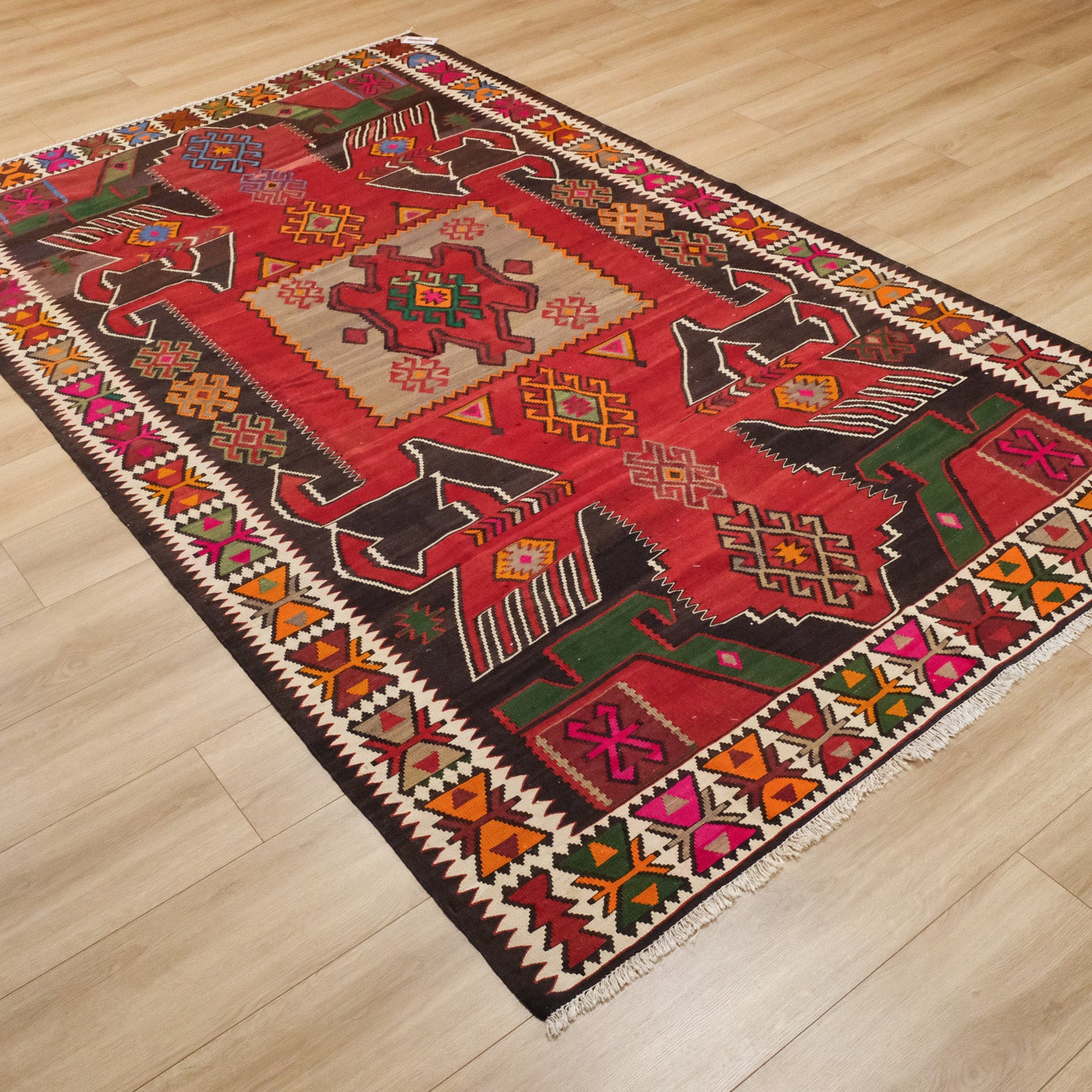 El Dokuma Anadolu Desenli Rengarenk Yün Kars Sevan Kilimi