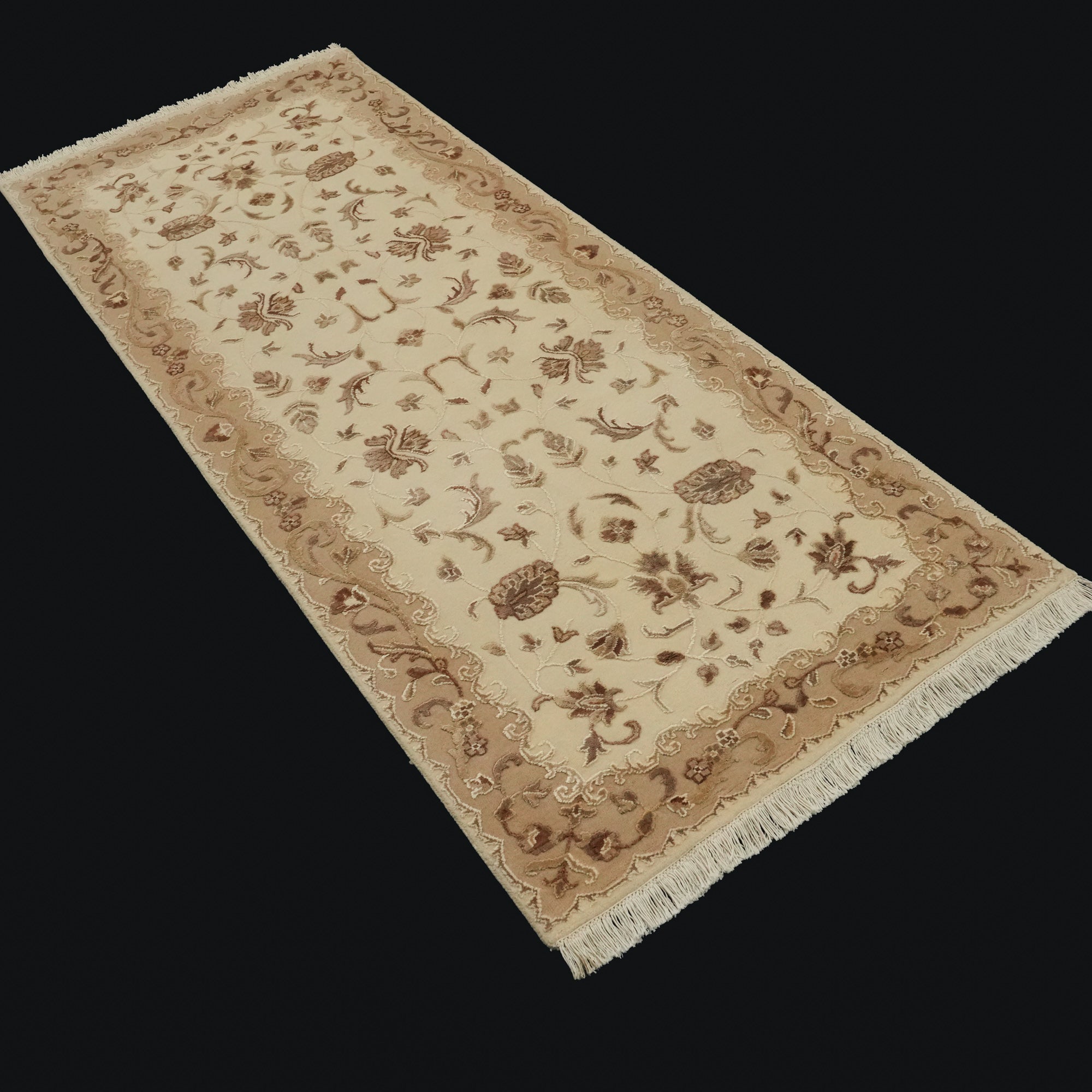 El Dokuma Çerçeve Desenli Krem Yün Halı, sade ve şık tasarımıyla zarif bir dekorasyon ürünü arayanlara hitap eder. Hindistan’da usta zanaatkârlar tarafından büyük bir titizlikle üretilen bu el dokuması tasarım, yoğun düğüm sıklığı sayesinde dayanıklılığı ve estetik görünümü bir araya getirir. Geleneksel el işçiliği ile aylarca süren bir emeğin ürünü olan tasarım, kusursuz detayları ve üst kalite malzemeleriyle öne çıkar. Tamamen doğal ipliklerden üretilen tasarımın yüzeyi %100 yünden oluşur ve yumuşak dokusuyla dikkat çeker. Desenlerde kullanılan viskon iplikler, ipeksi bir parlaklık katarak ürüne lüks bir dokunuş sağlar. Dayanıklı pamuk iskeleti ise uzun ömürlü bir kullanım sunar.