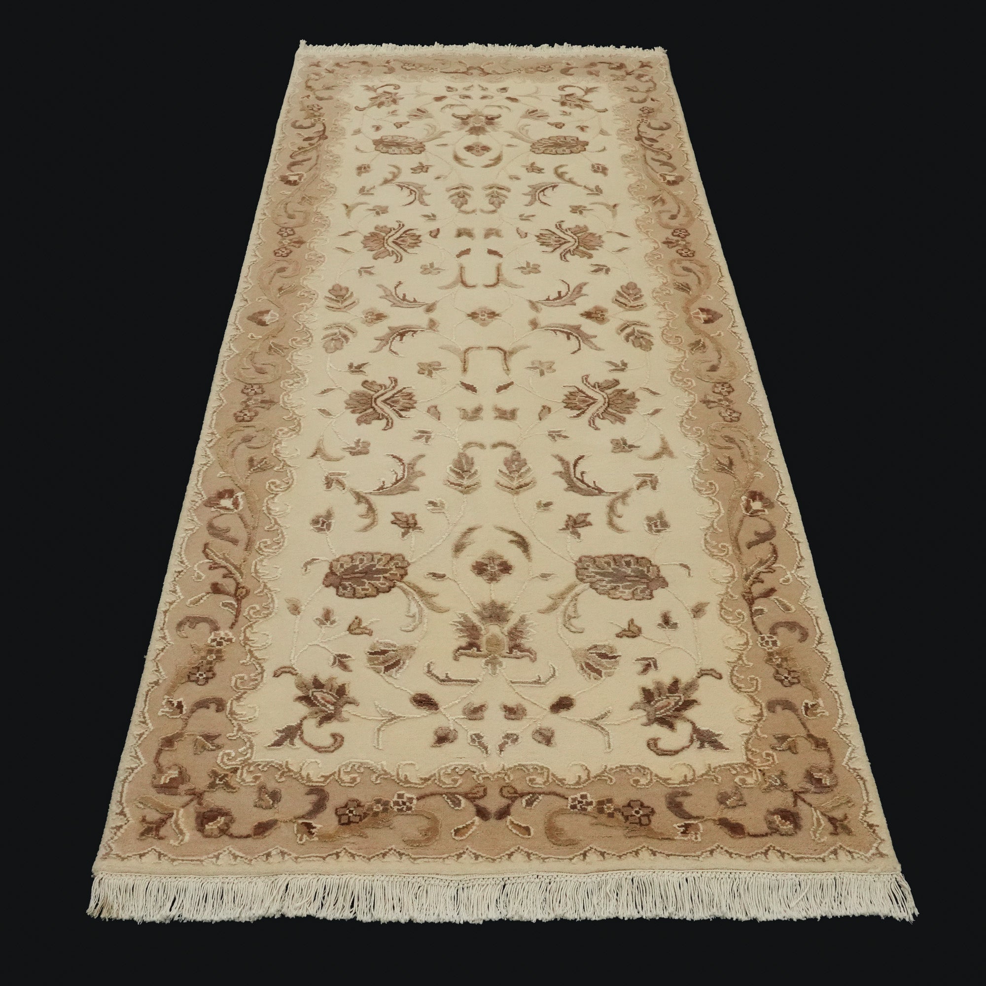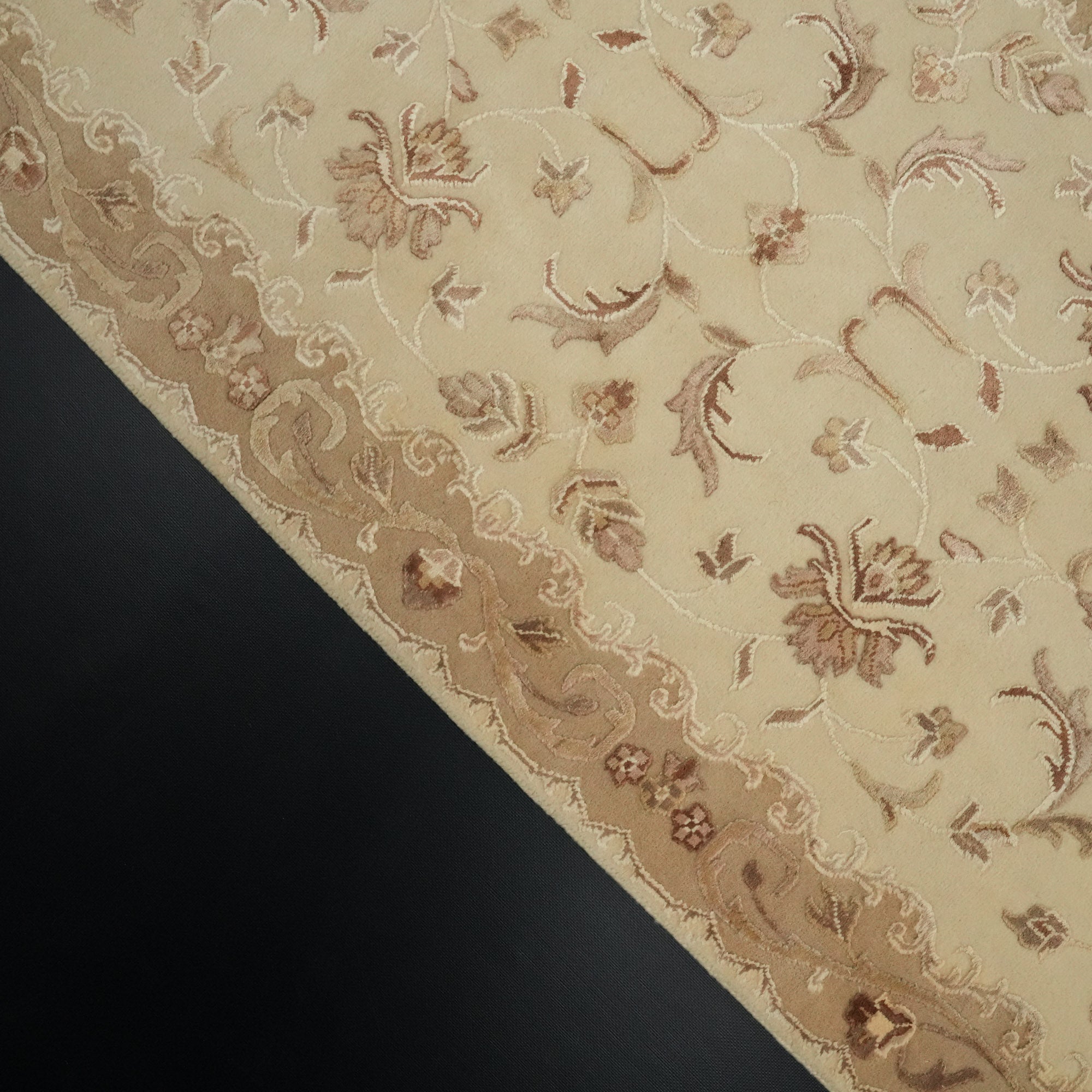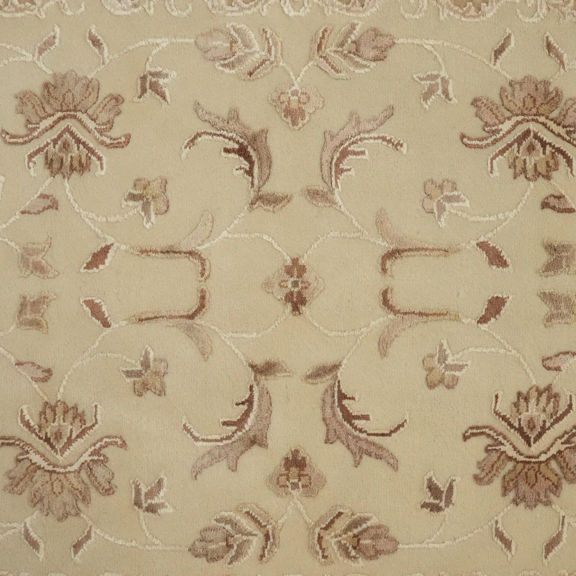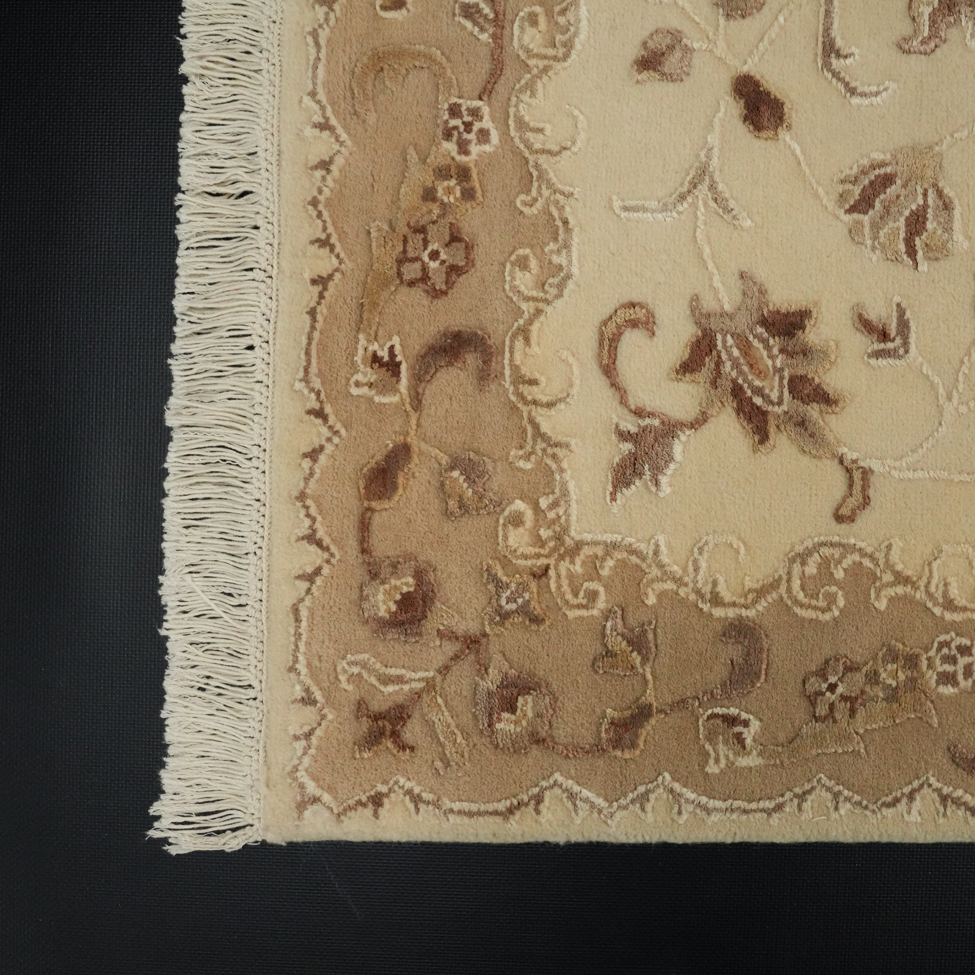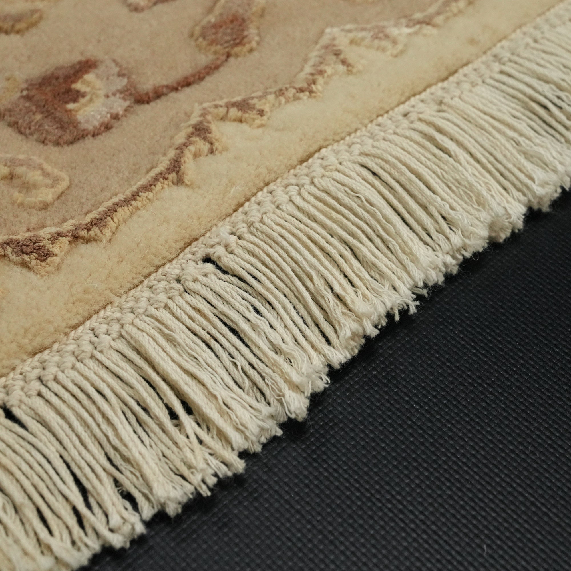 El Dokuma Çerçeve Desenli Krem Yün Halı