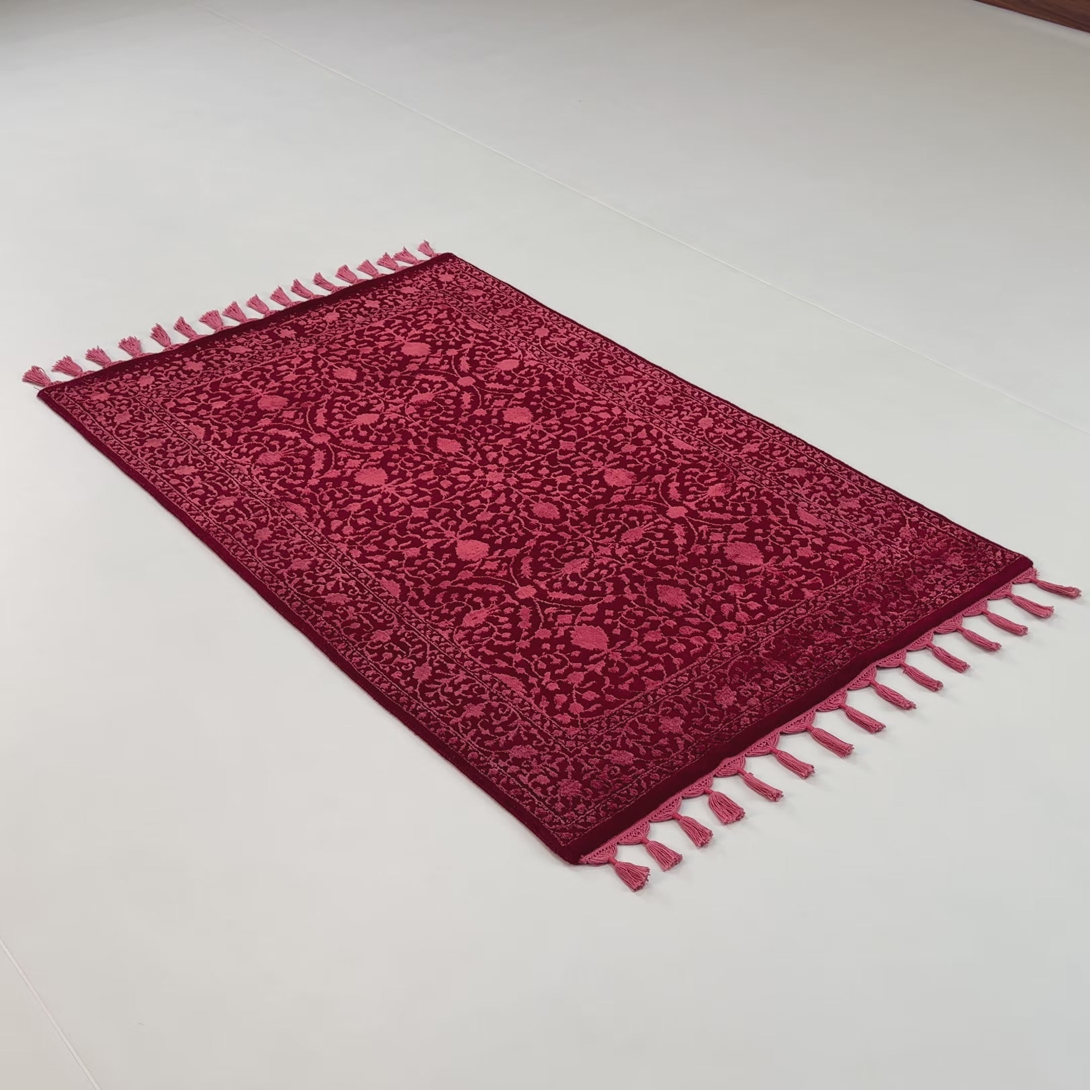 El Dokuma Çiçek Desenli Kırmızı Yün Halı