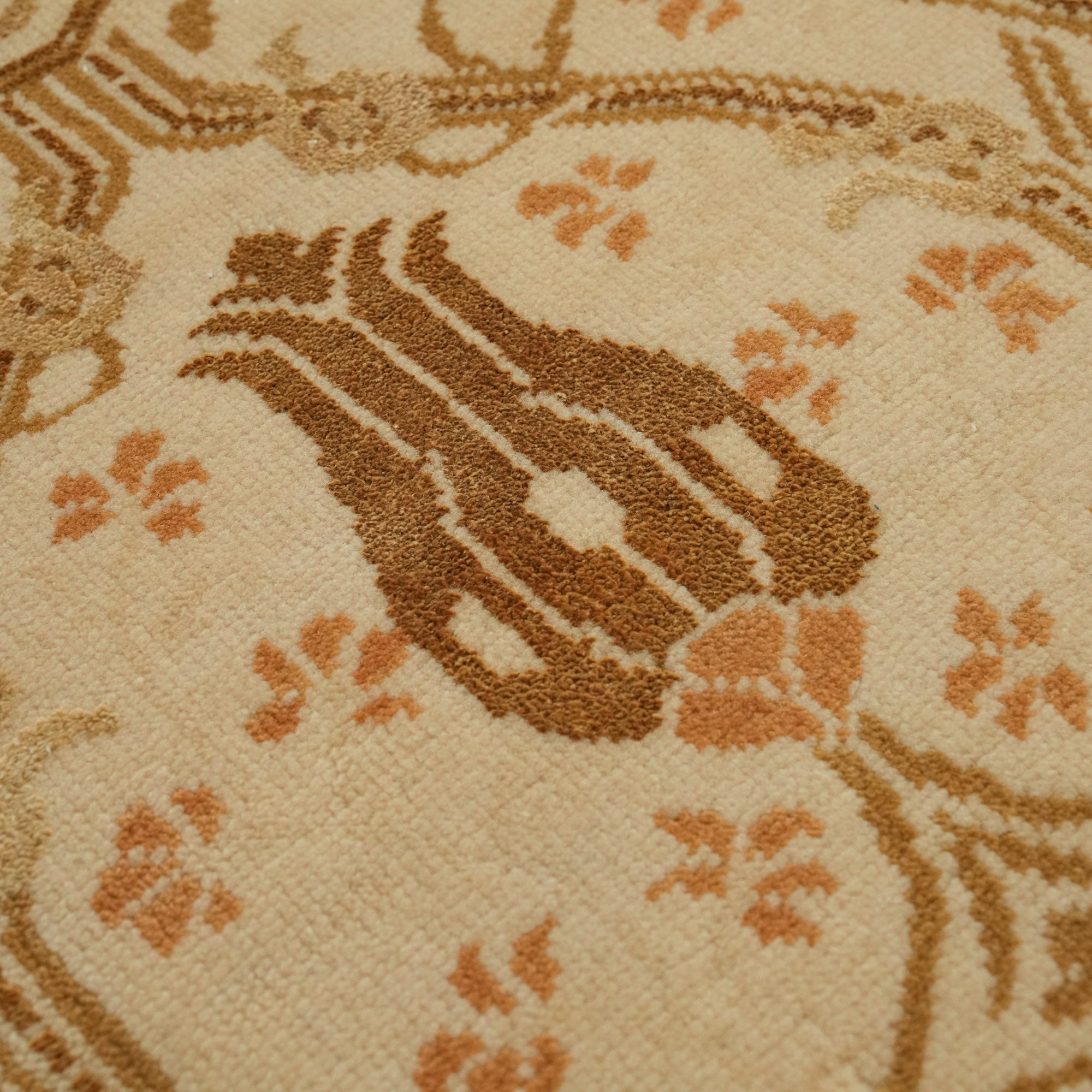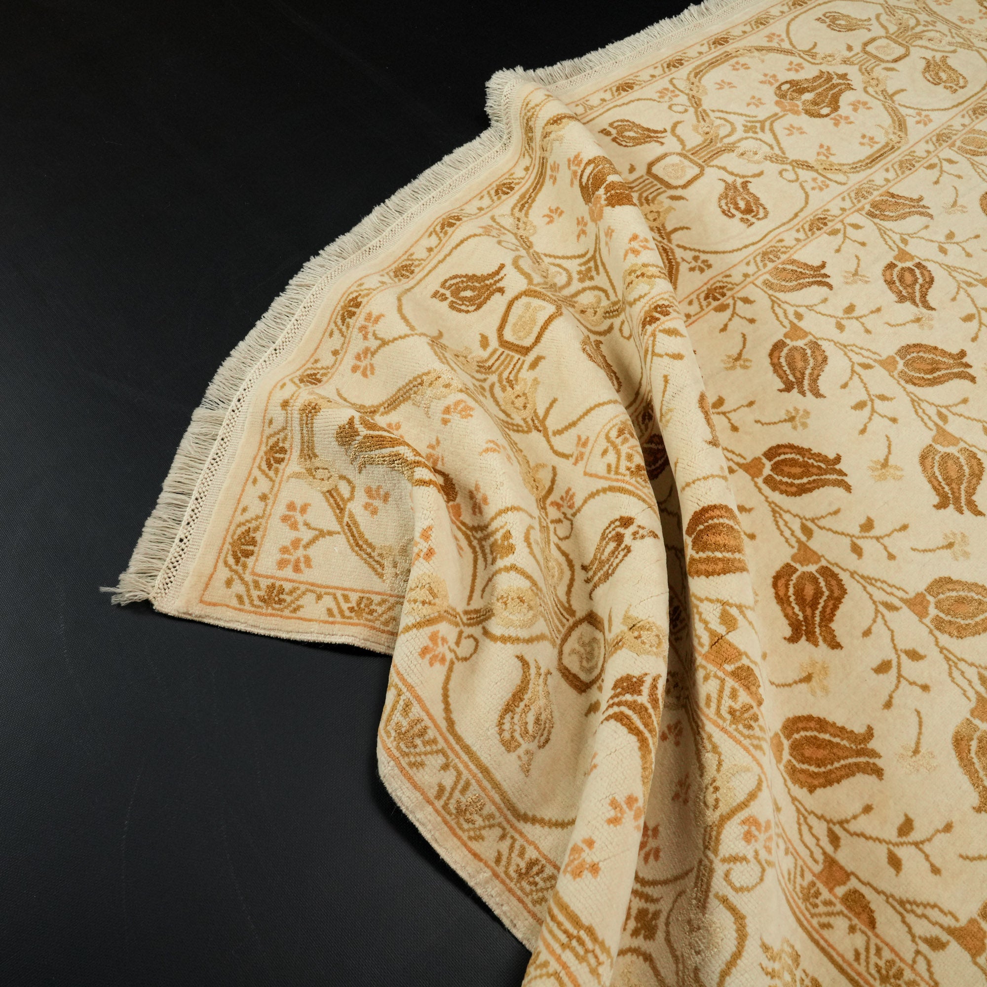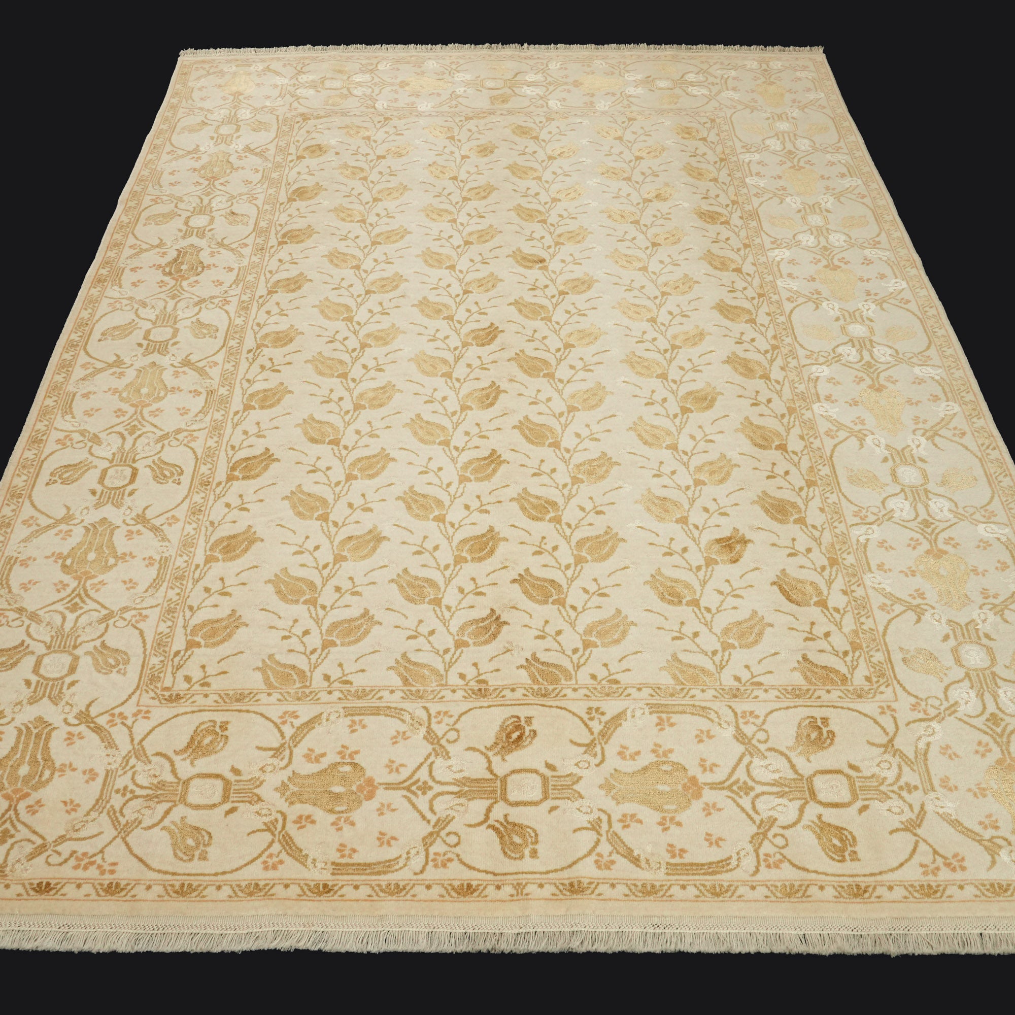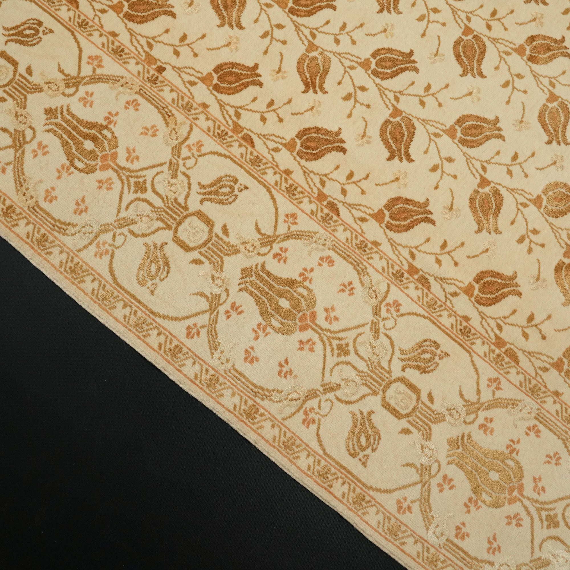 El Dokuma Çiçek Desenli Yün Krem Halı