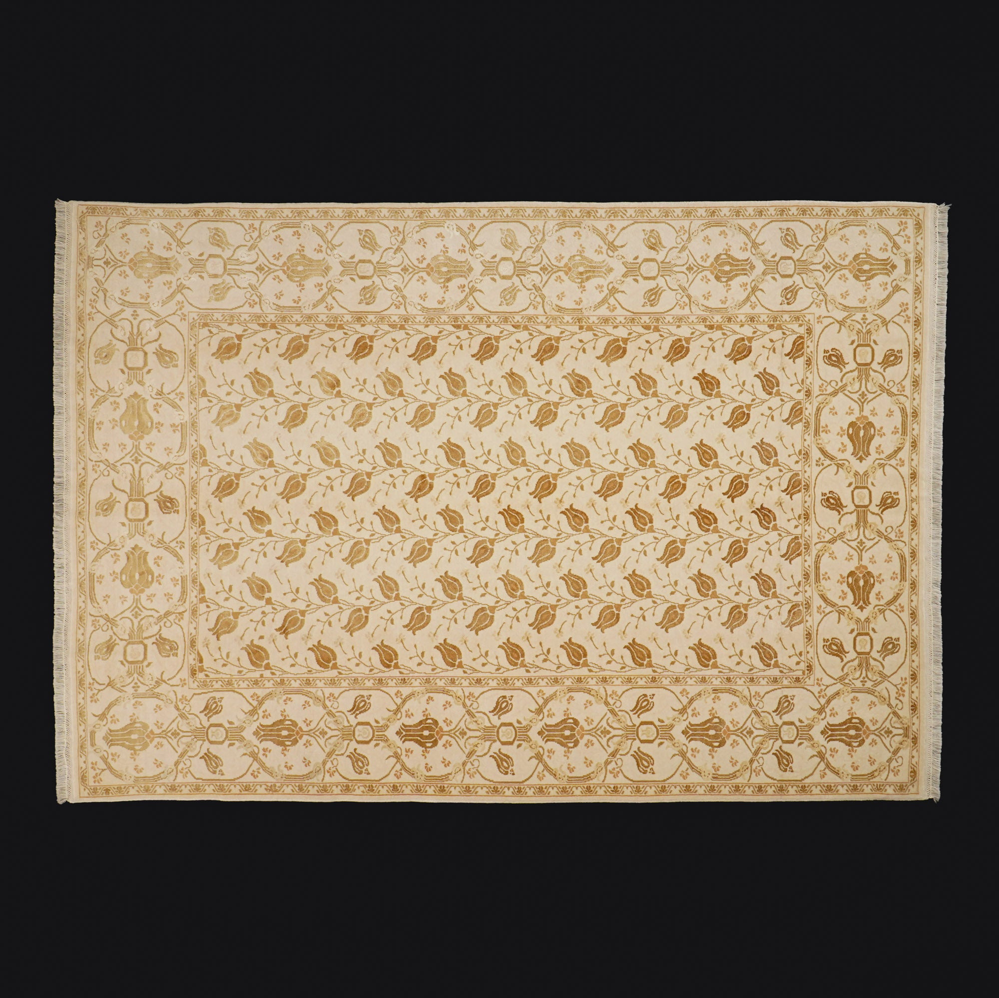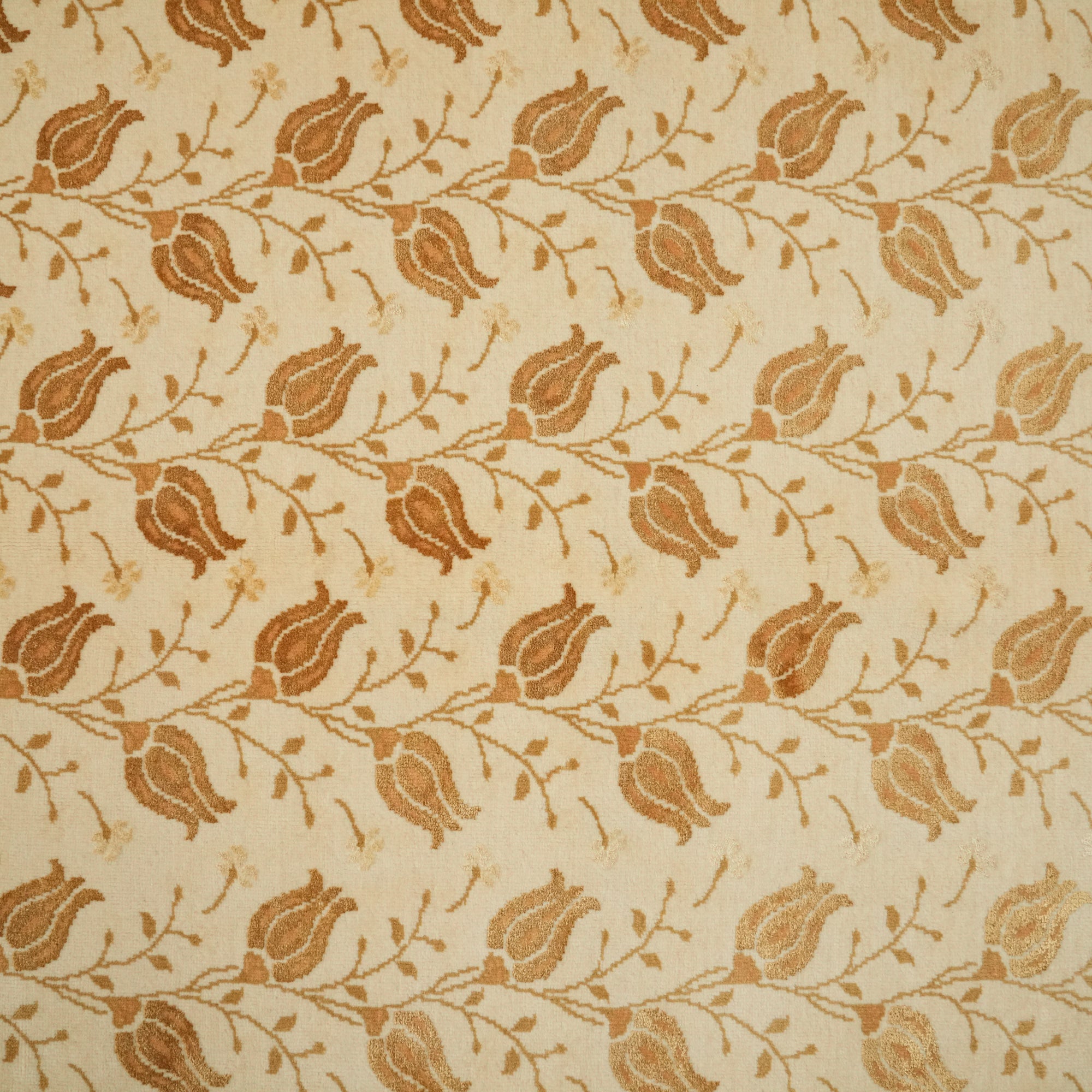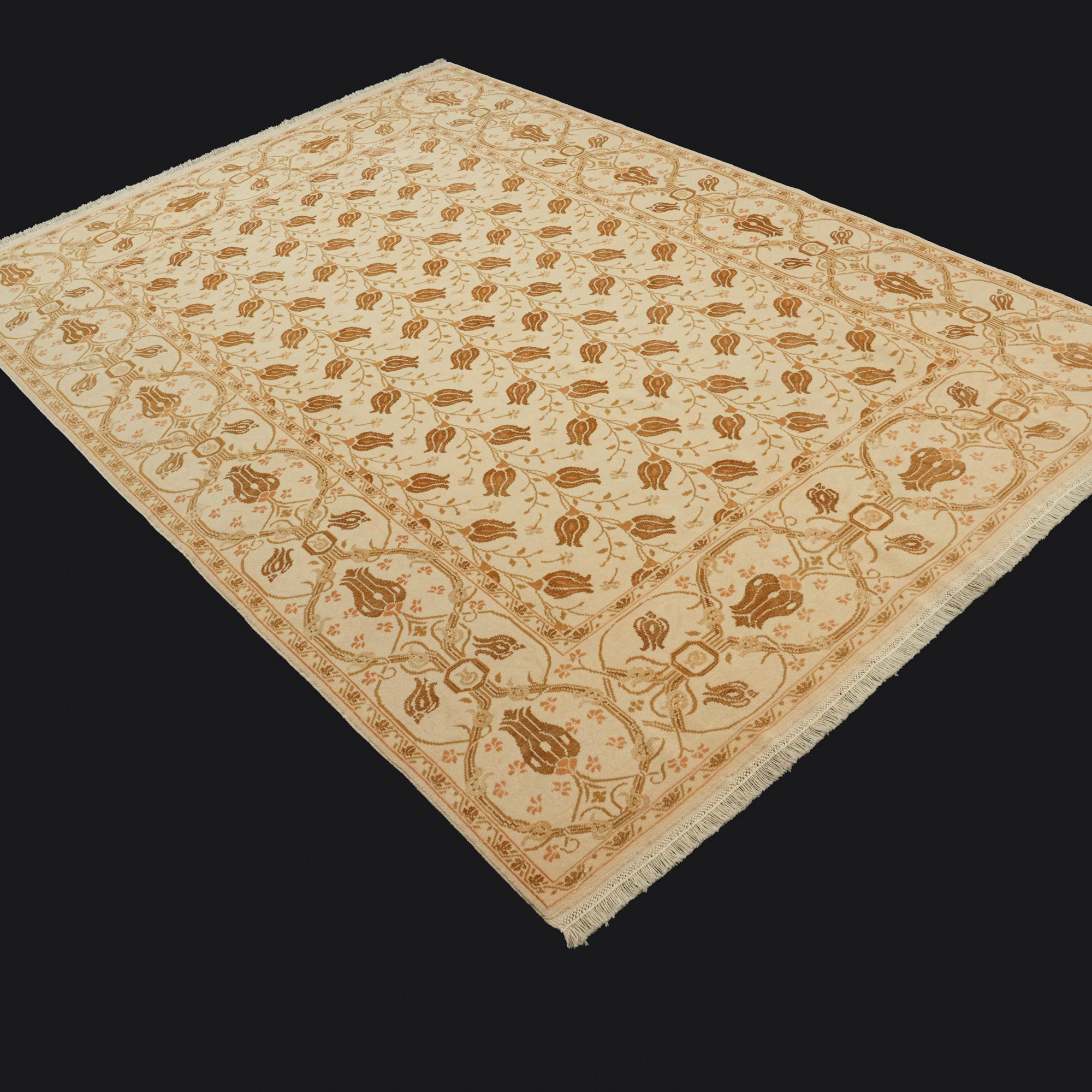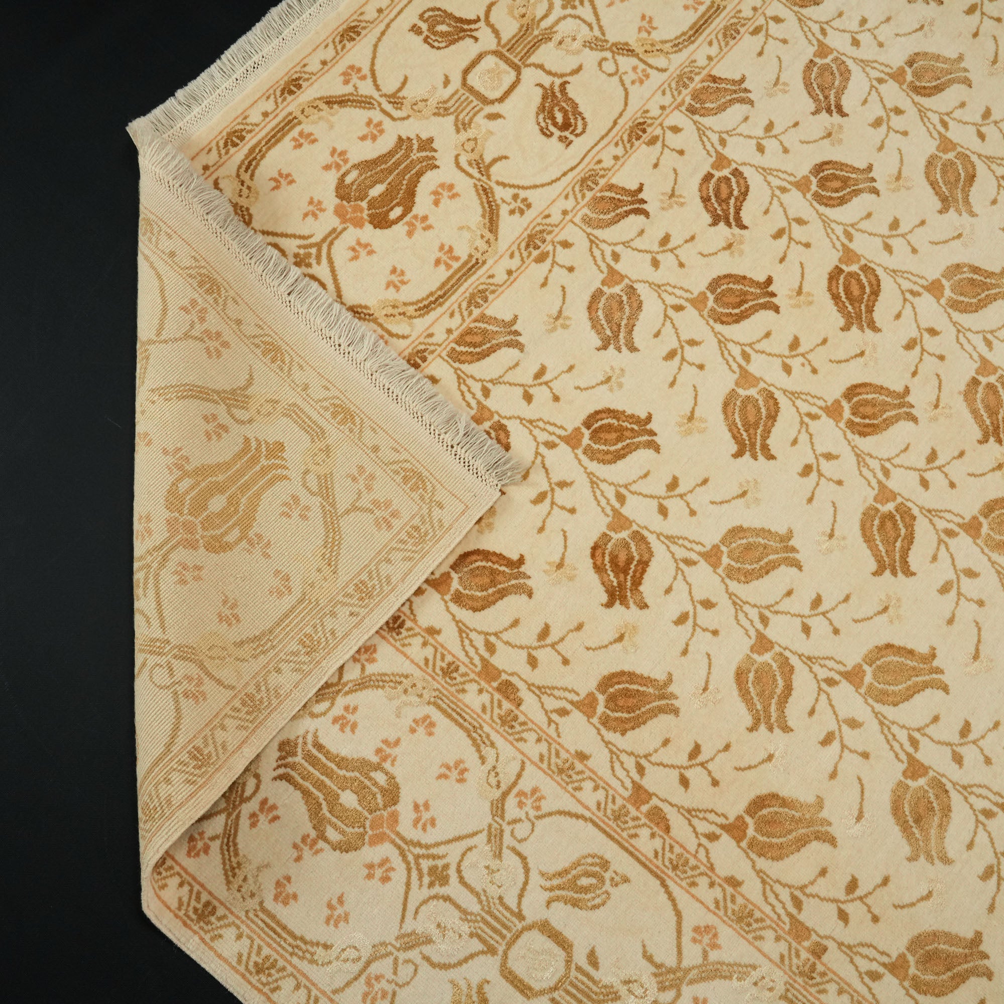 El Dokuma Çiçek Desenli Yün Krem Halı