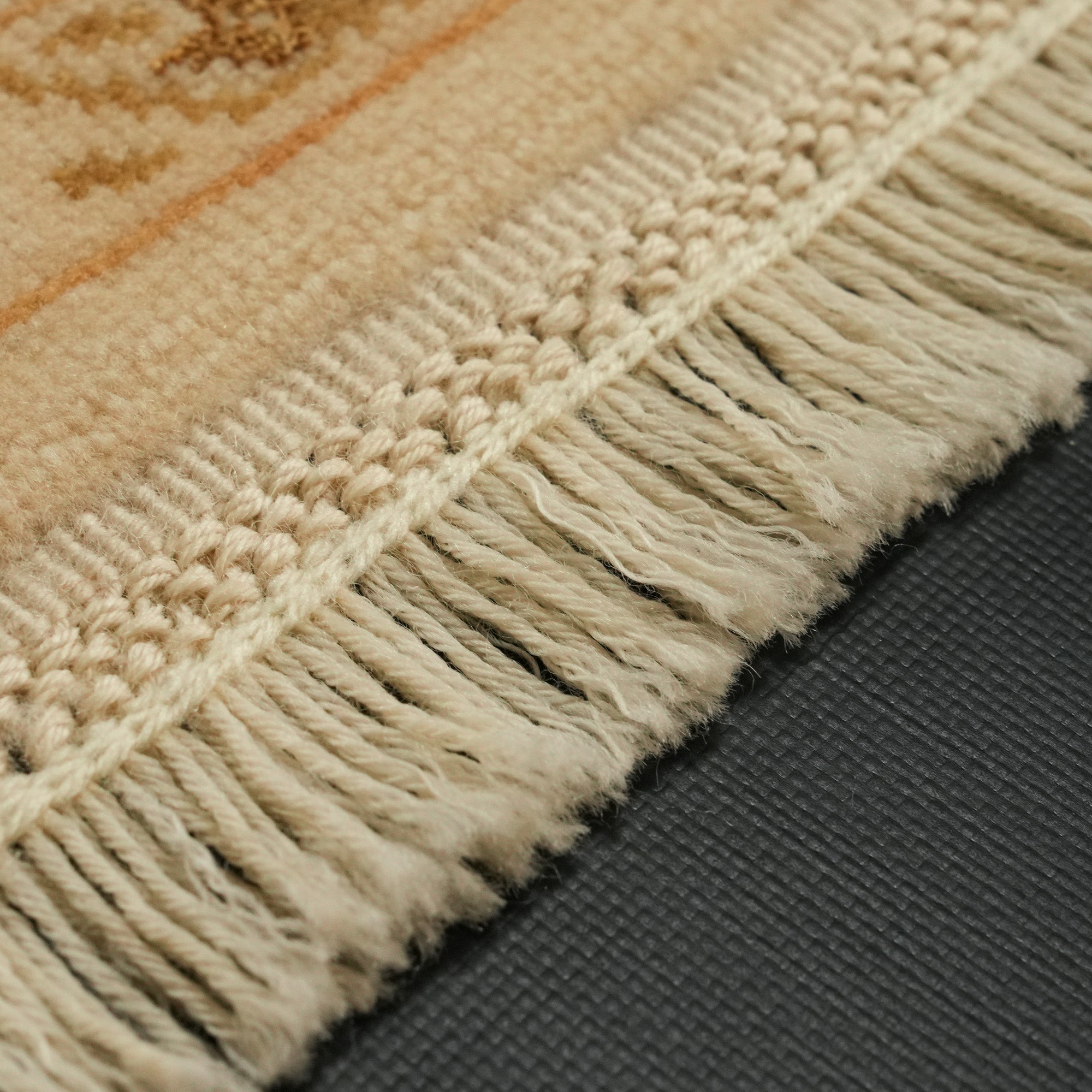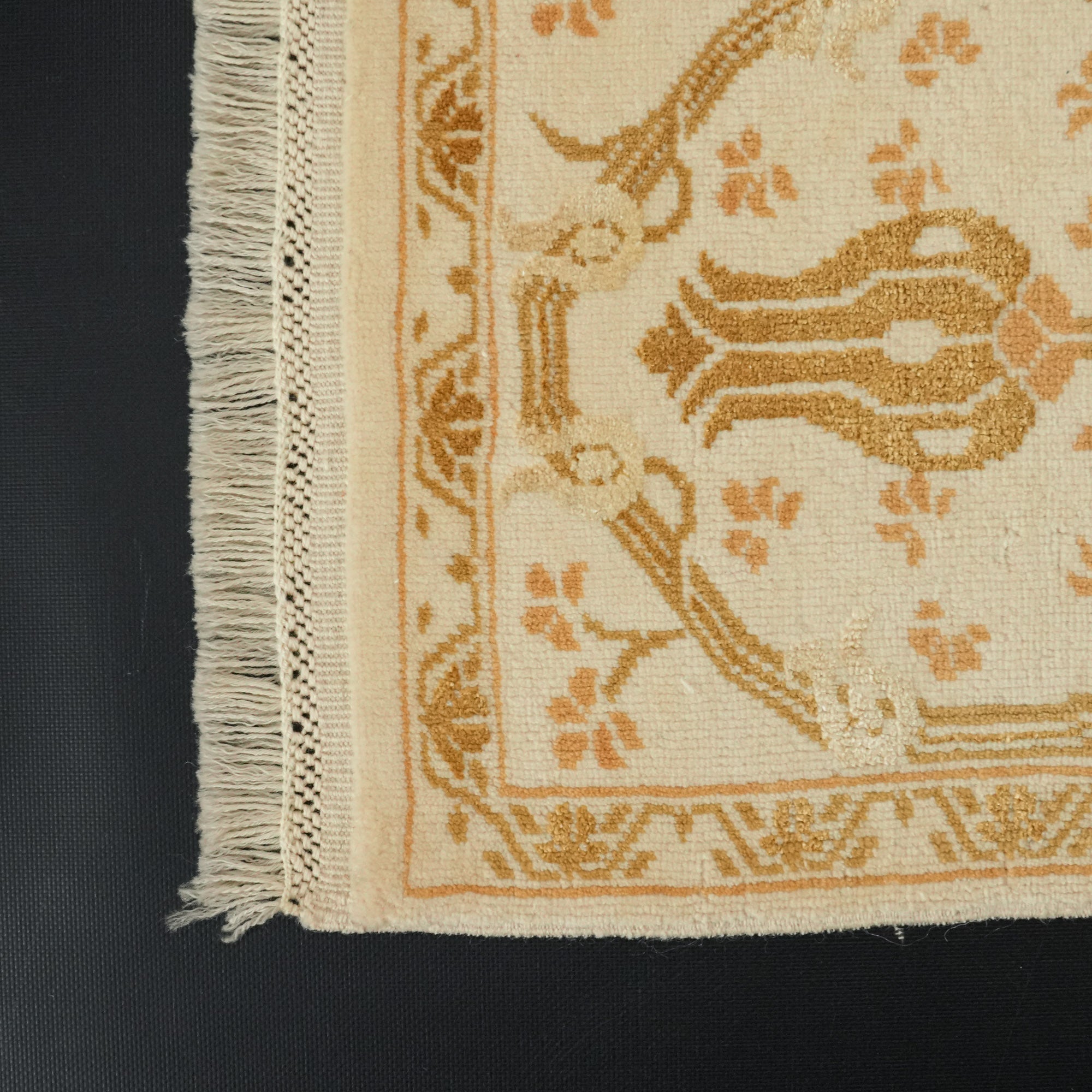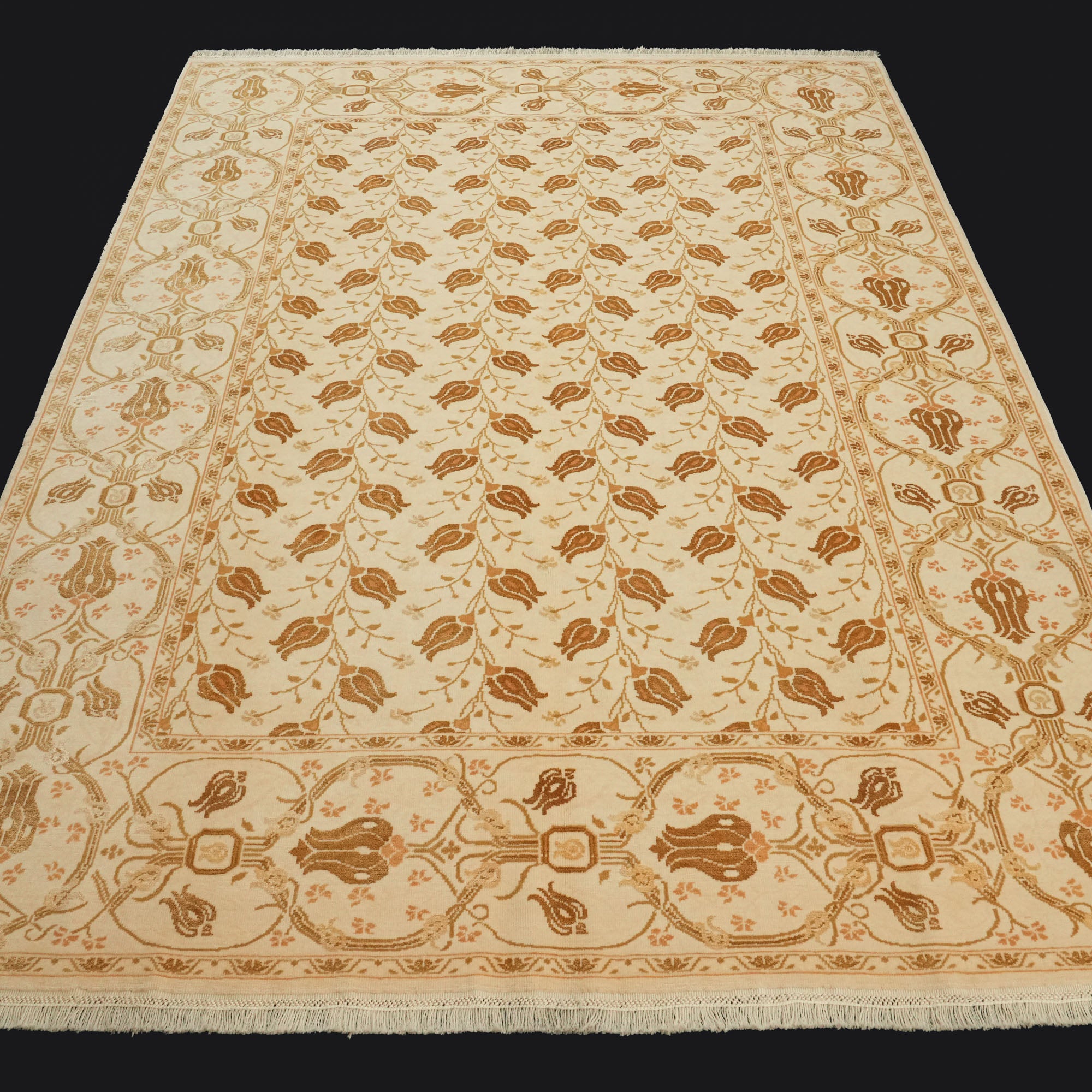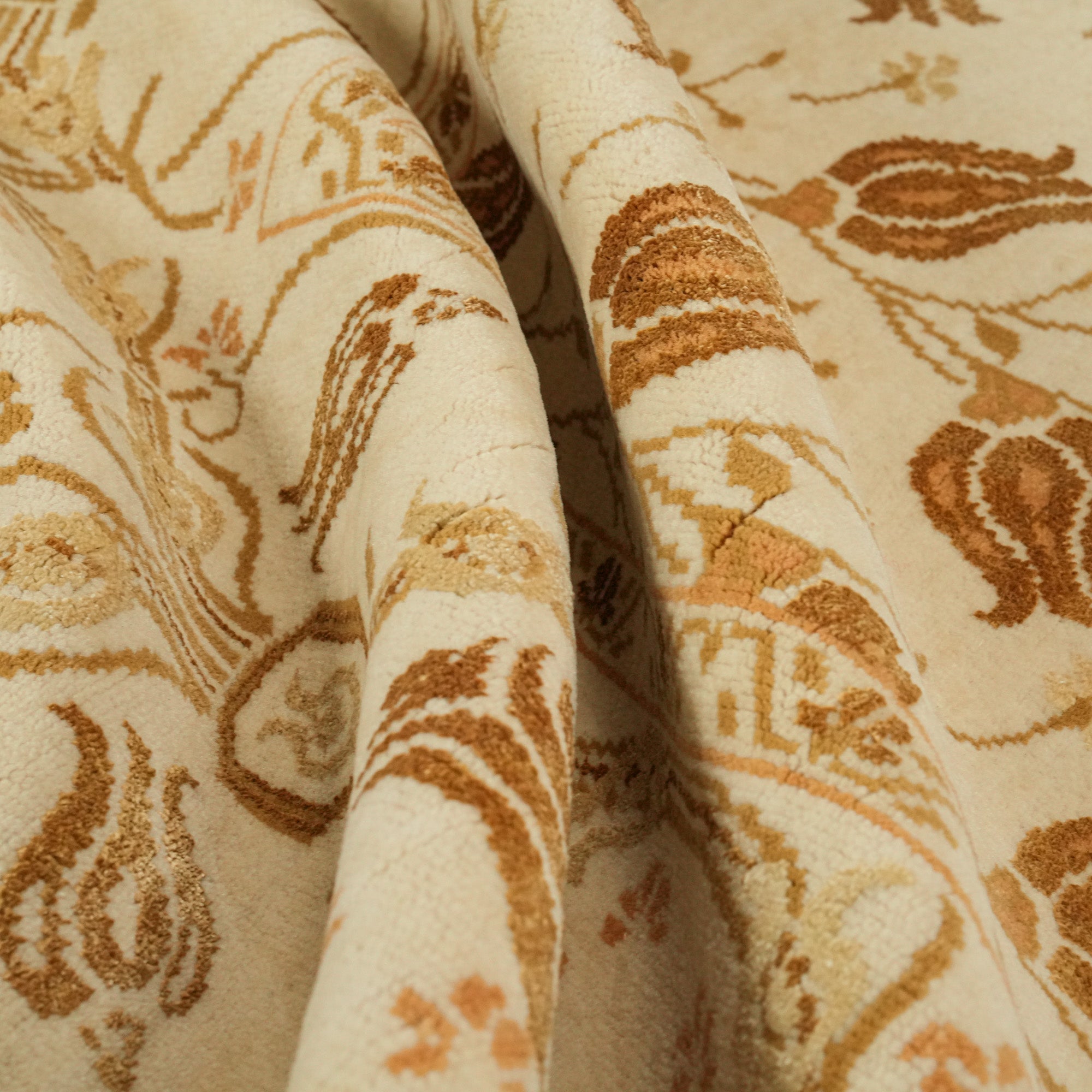 El Dokuma Çiçek Desenli Yün Krem Halı