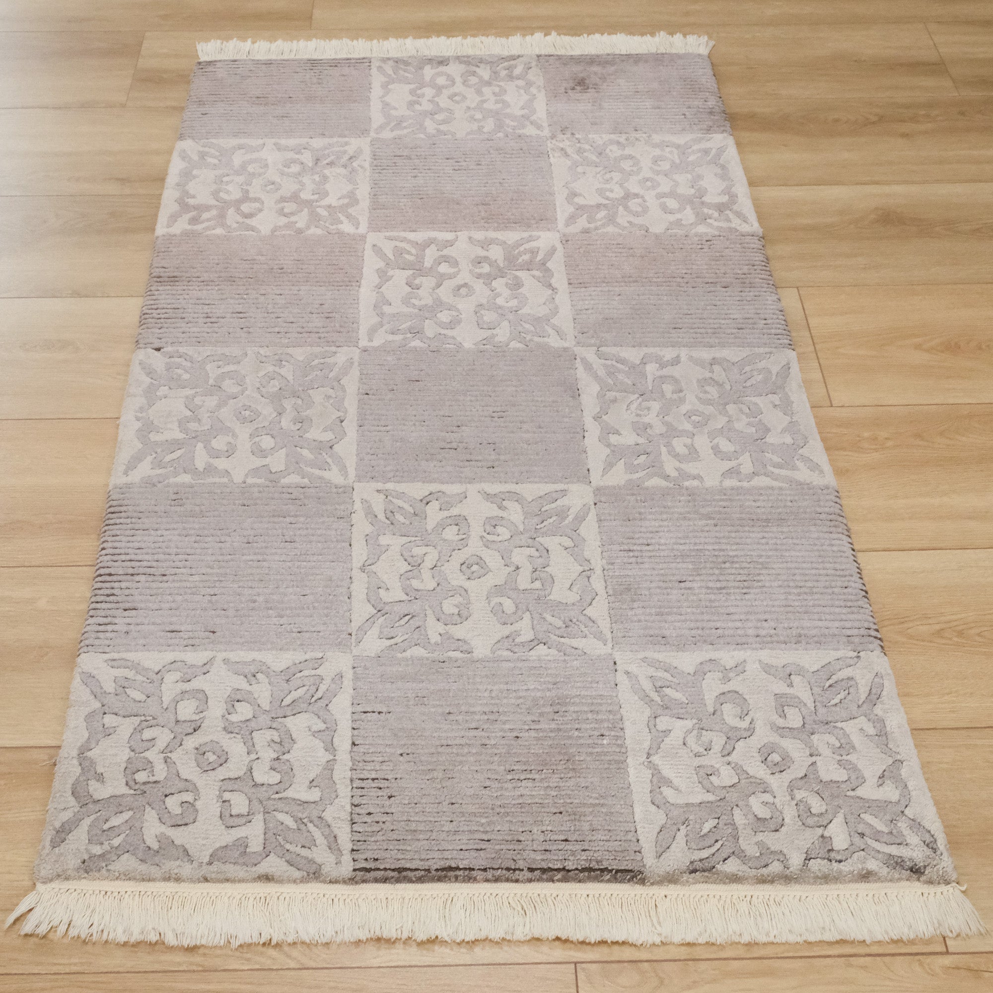 El Dokuma Damask Desenli Gümüş Bambu Halı