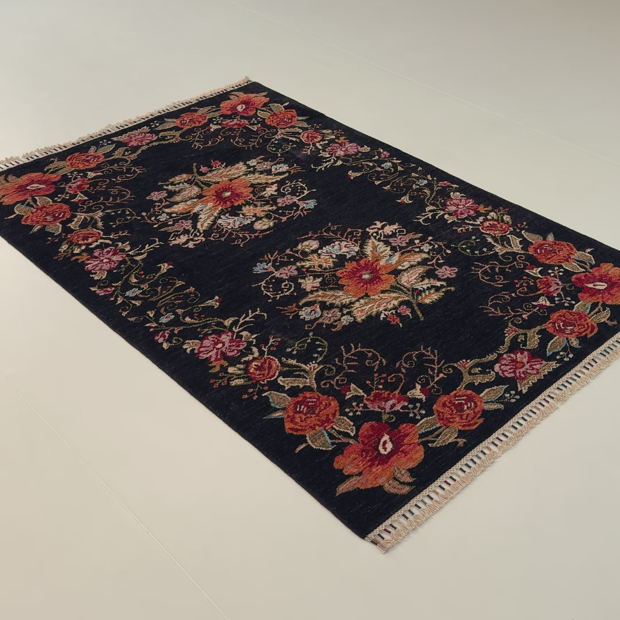 El Dokuma Karabağ Desenli Siyah Yün Halı