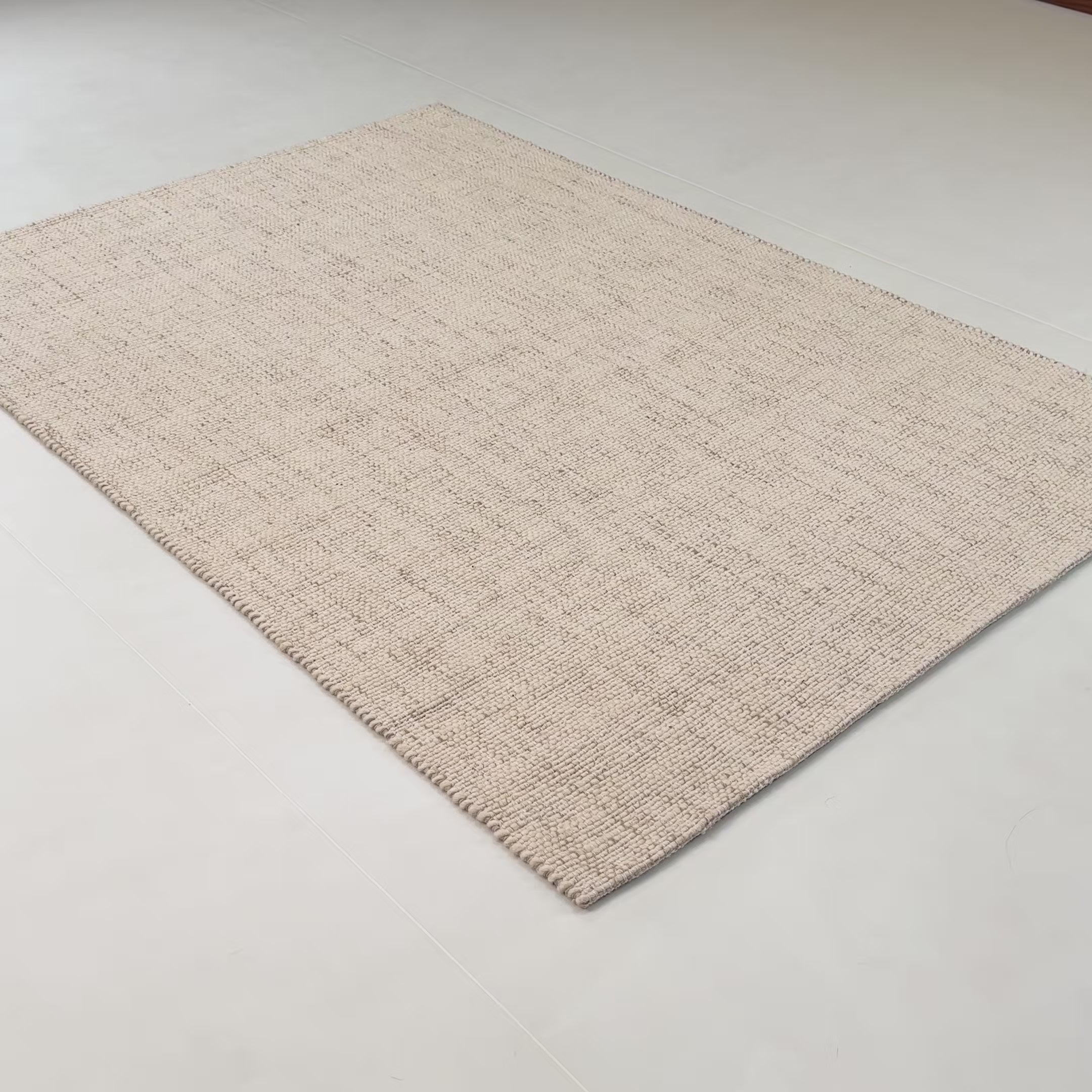 El Dokuma Sade Desenli Krem Yün Halı, krem rengin dinginliğini yün dokunun tok yapısıyla buluşturur. Açık tonların hâkim olduğu yüzeyde bej, gri ve fildişi tonları hafifçe birbirine karışır ve bu geçişler halıya doğal bir sıcaklık kazandırır. Düğüm düğüm ilerleyen yapısı sayesinde yüzeyde homojen bir hareket oluşur; ışıkla birlikte bu yüzey derinlik kazanır. Büyük ve belirgin düğümler, kalın bir yün kazağı anımsatır; sade olmasına rağmen güçlü bir karakter taşır. İskandinav sadeliğini yansıtan iç mekânlarda açık ahşap detaylarla birlikte kullanıldığında sakinleştirici bir atmosfer oluşturur. Antrasit ya da koyu kahve tonlarındaki mobilyalarla beraber kullanıldığında ise mekâna ferahlık ve denge getirir. Hem modern hem doğal bir görünüm isteyenlerin yaşam alanlarına uyum sağlar.