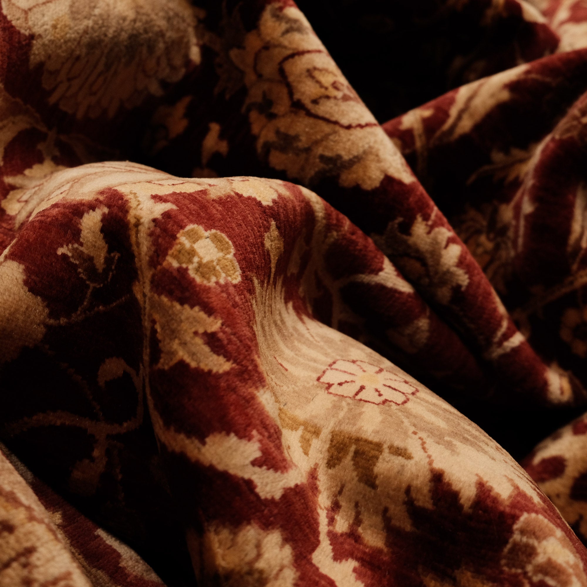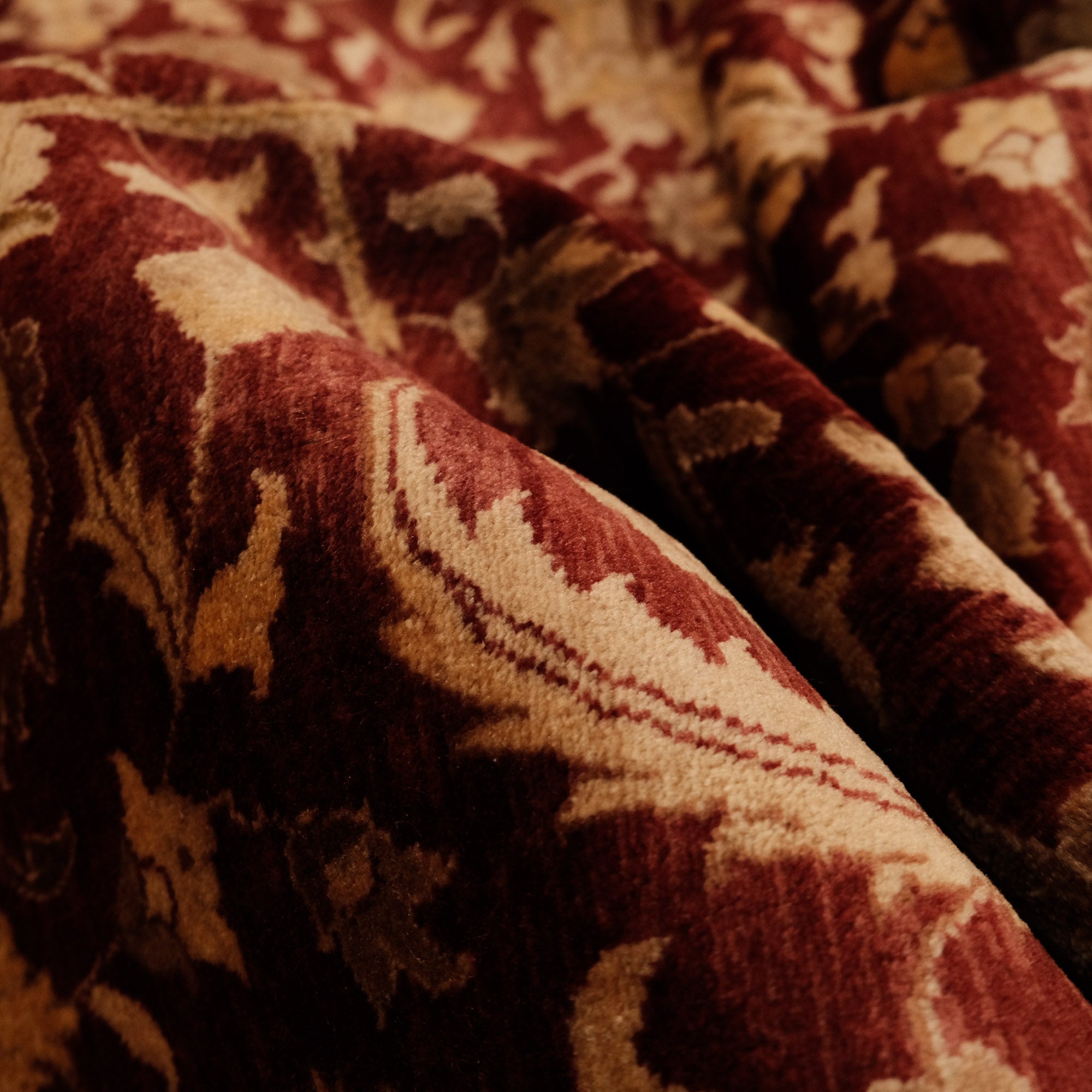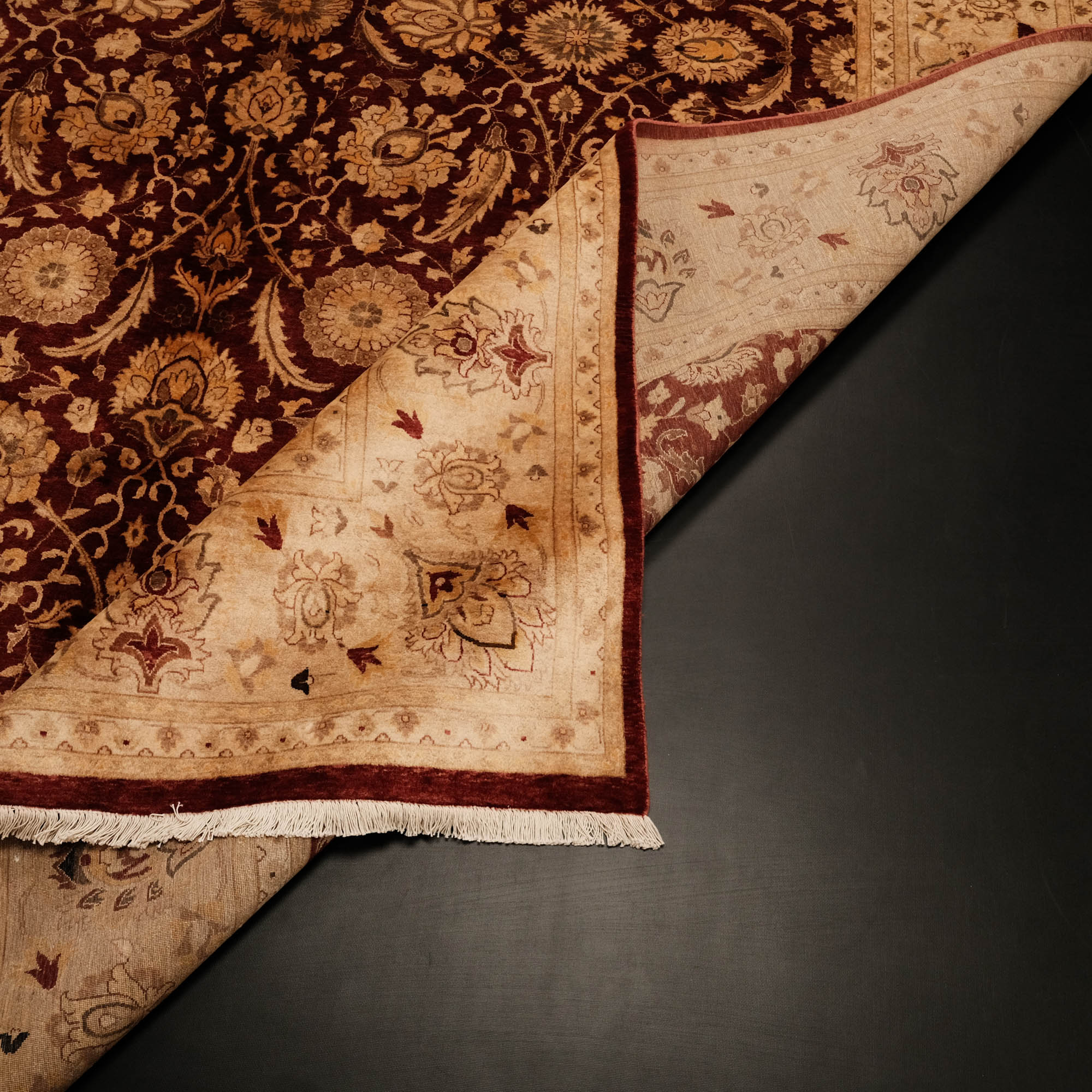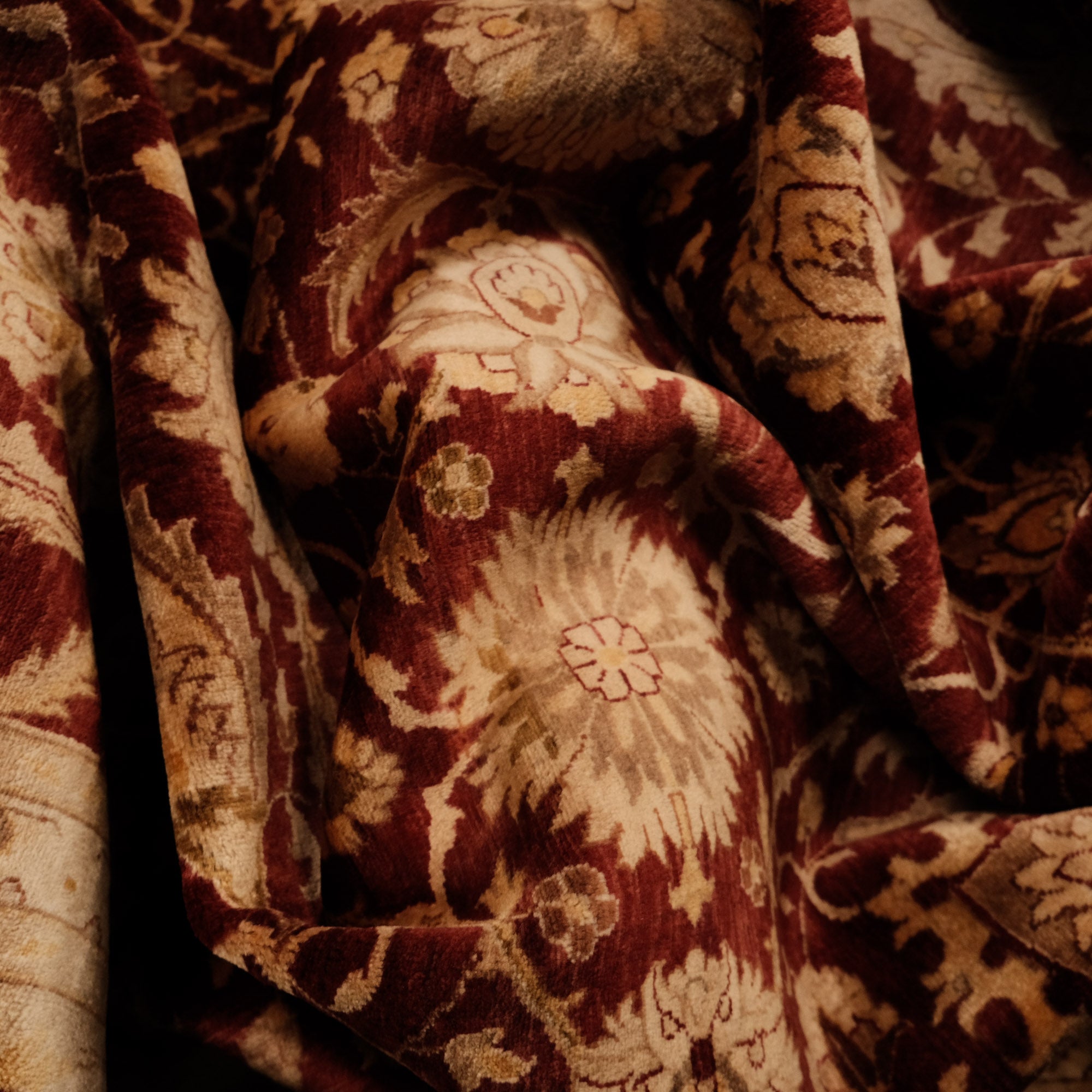 Bu zarif halı, Hindistan ustalarının ellerinde hayat bulur. Önceden Türkiye'de üretilen eserler, el dokuma halıların Türkiye'de azalmasıyla birlikte Hindistan'a geçmiştir. Dünya çapında bilinen yüksek kaliteli yün ve pamuk halılarının üretiminde şimdi lider üreticilerden biri haline gelmiştir. Eşsiz dokunuşlarıyla, Hindistan'ın dokuma ustaları, halının her düğümüne tarihinin ve kültürünün ruhunu işler.
