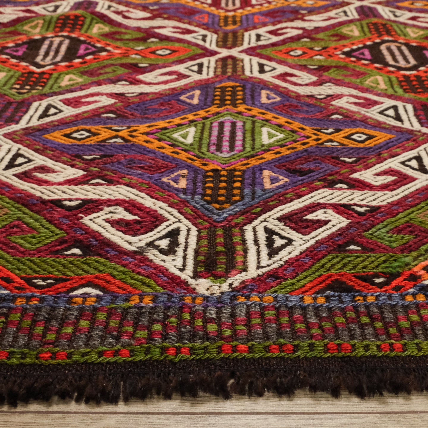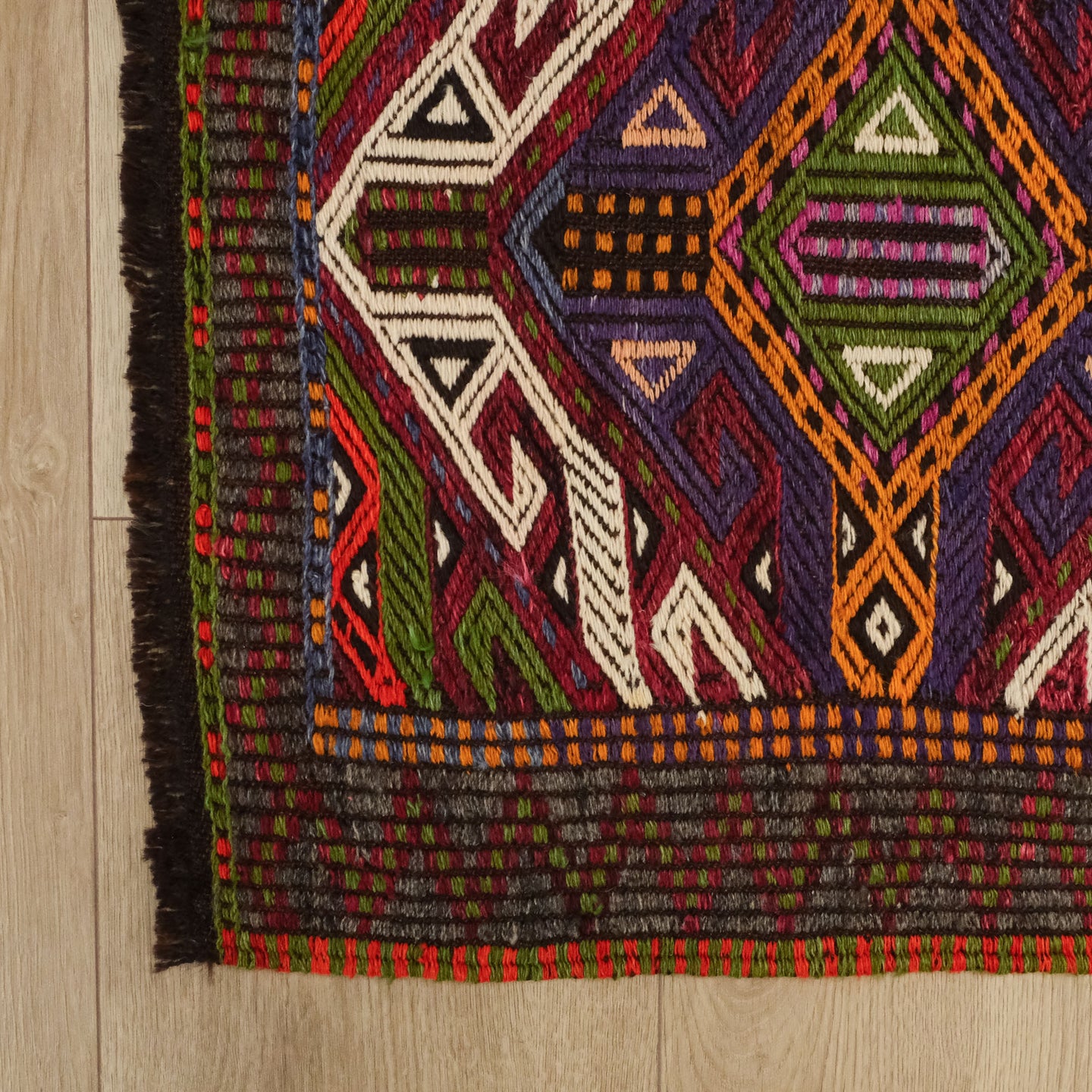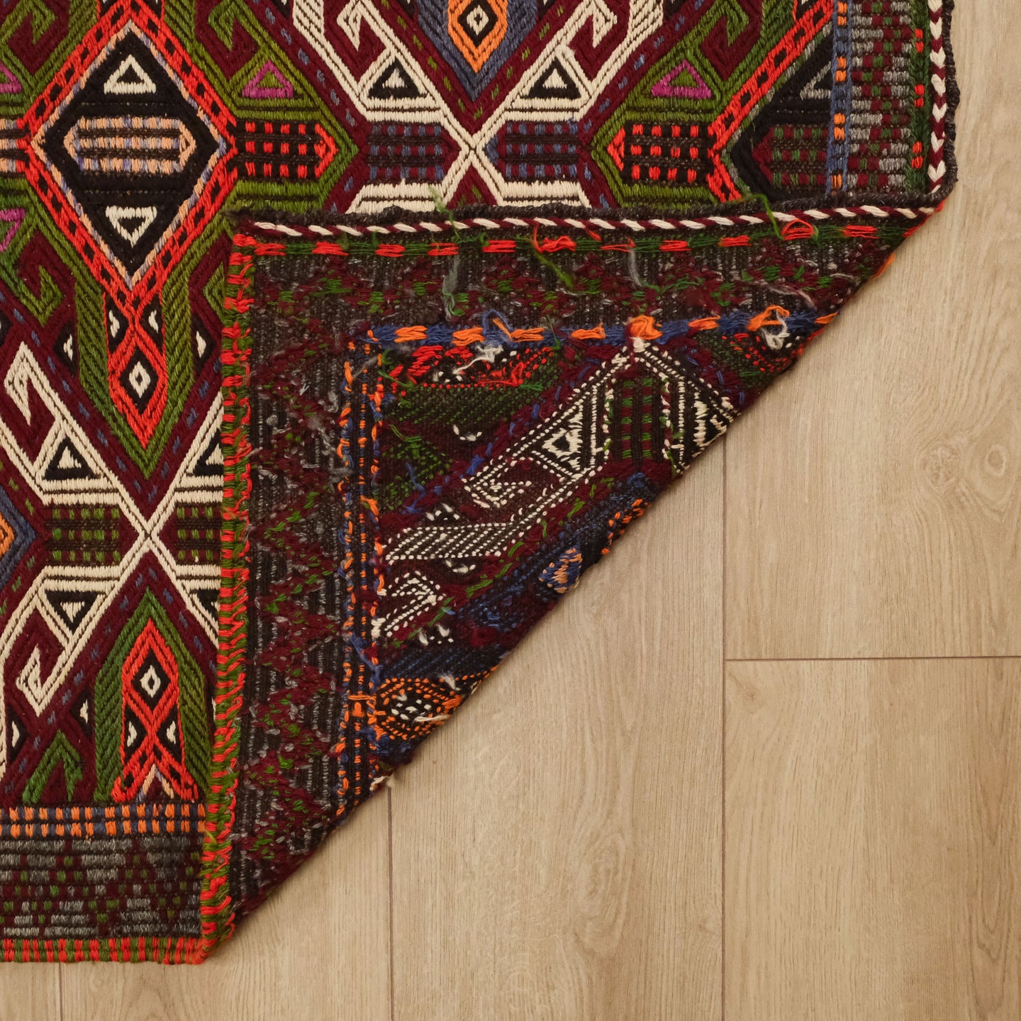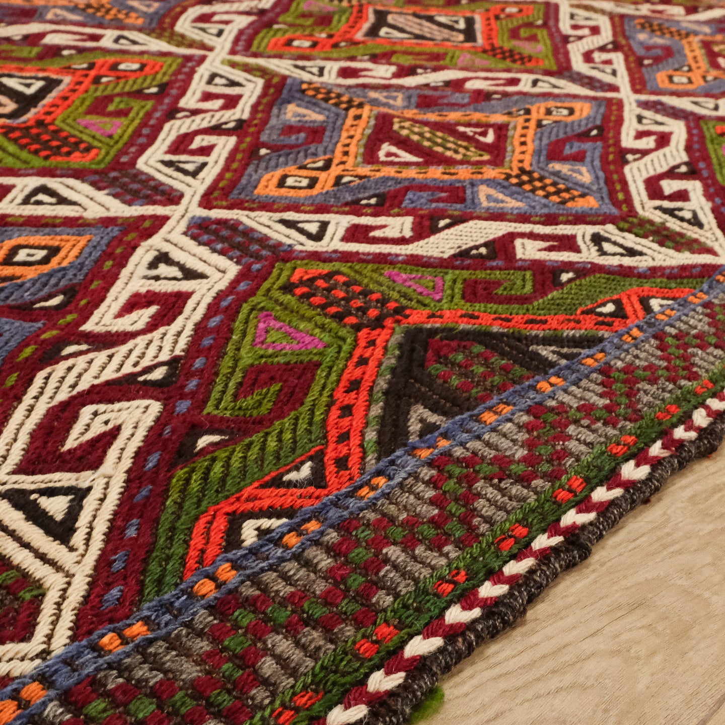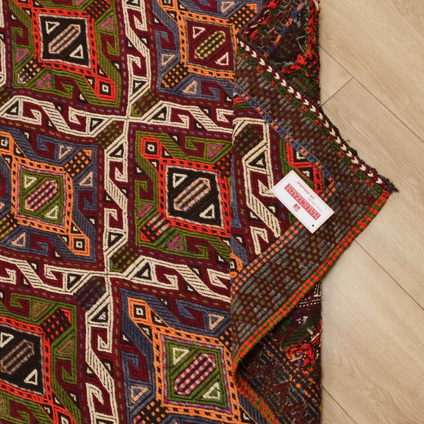 El Dokuma Yün Anadolu Desenli Rengarenk Antalya Cicim Kilim