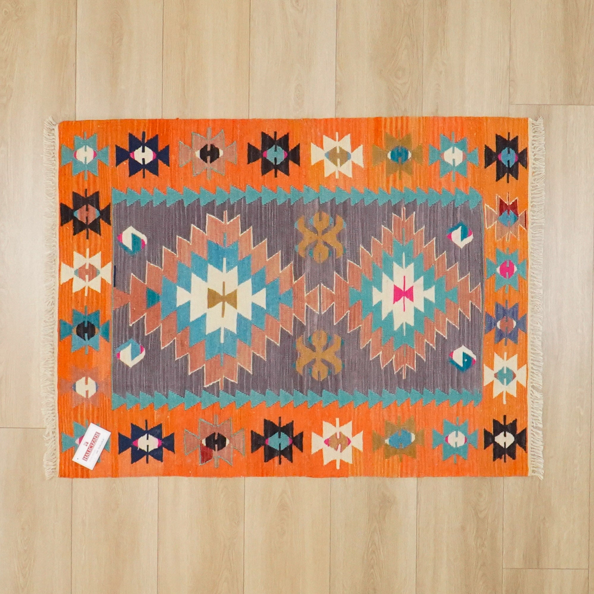 El Dokuma Yün Rengarenk Anadolu Desenli Kilim