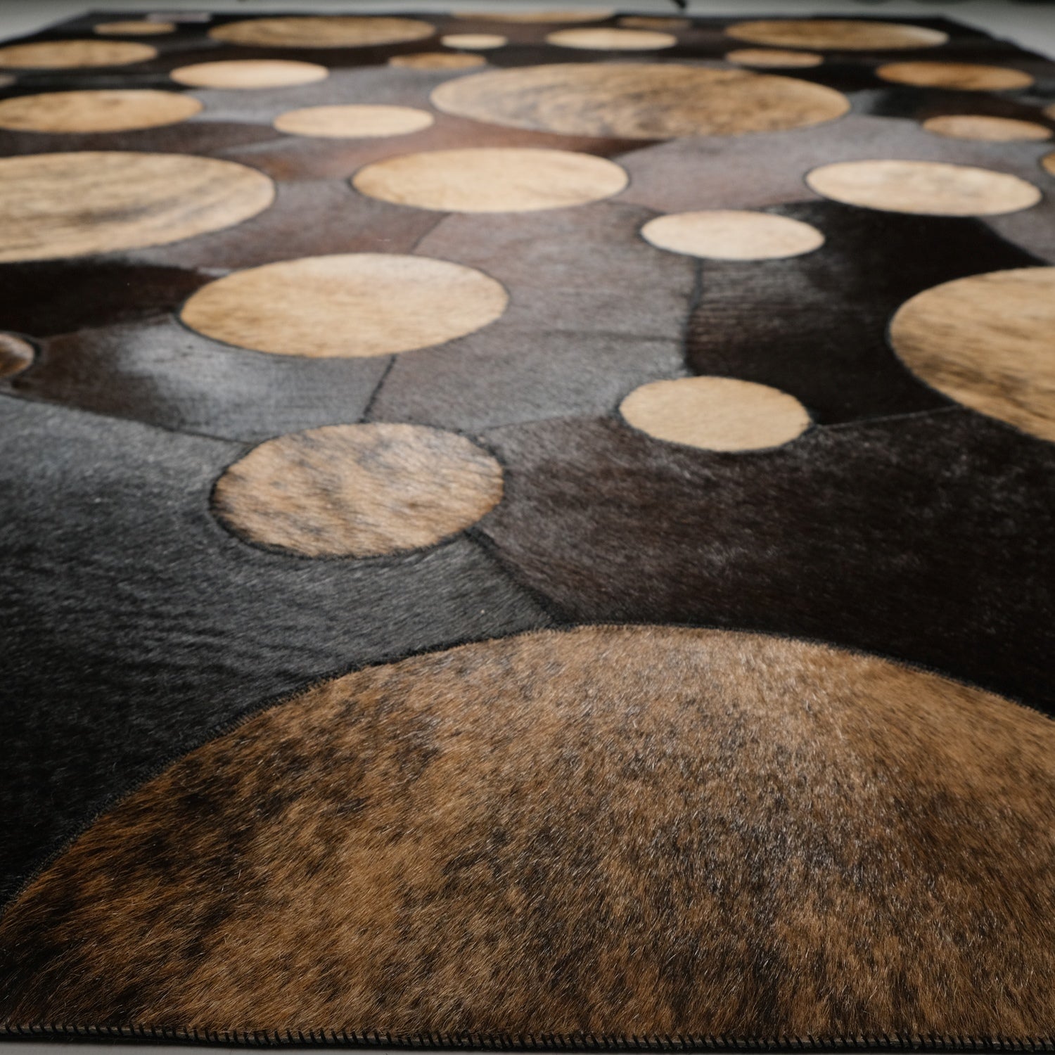 Krem Kahverengi Modern Tasarım Geometrik Desenli Deri - Post Ofis Halısı
